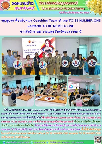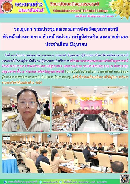 วันที่ ๑๙ มิถุนายน ๒๕๖๗ เวลา ๐๗.๓๐ น. นายธาตรี พิบูลมณฑา ผู้อำนวยการวิทยาลัยเทคนิคอุบลราชธานี (เพิ่มเติม…)