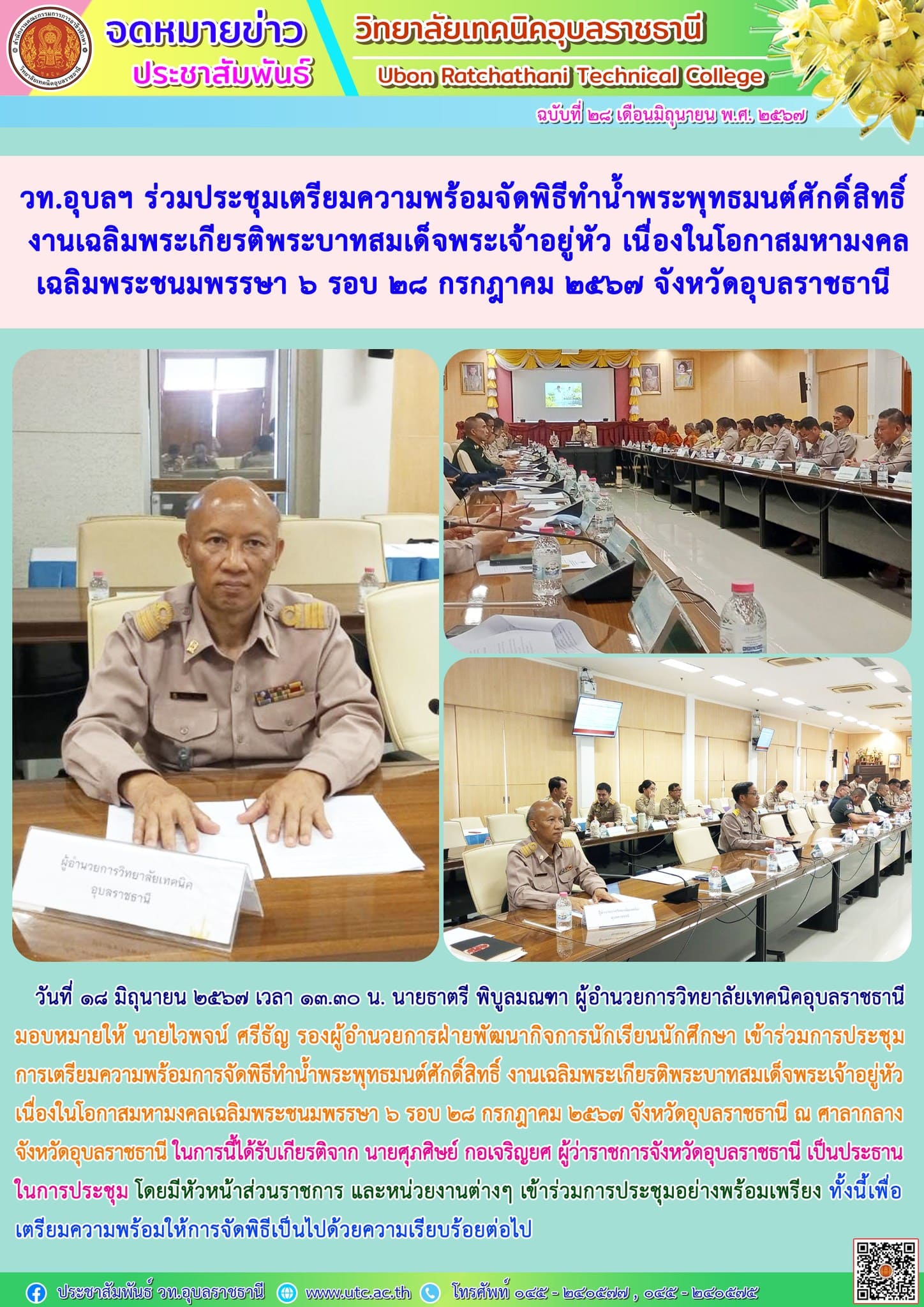 วันที่ ๑๙ มิถุนายน ๒๕๖๗ เวลา ๑๕.๐๐ น. นายธาตรี พิบูลมณฑา ผู้อำนวยการวิทยาลัยเทคนิคอุบลราชธานี (เพิ่มเติม…)