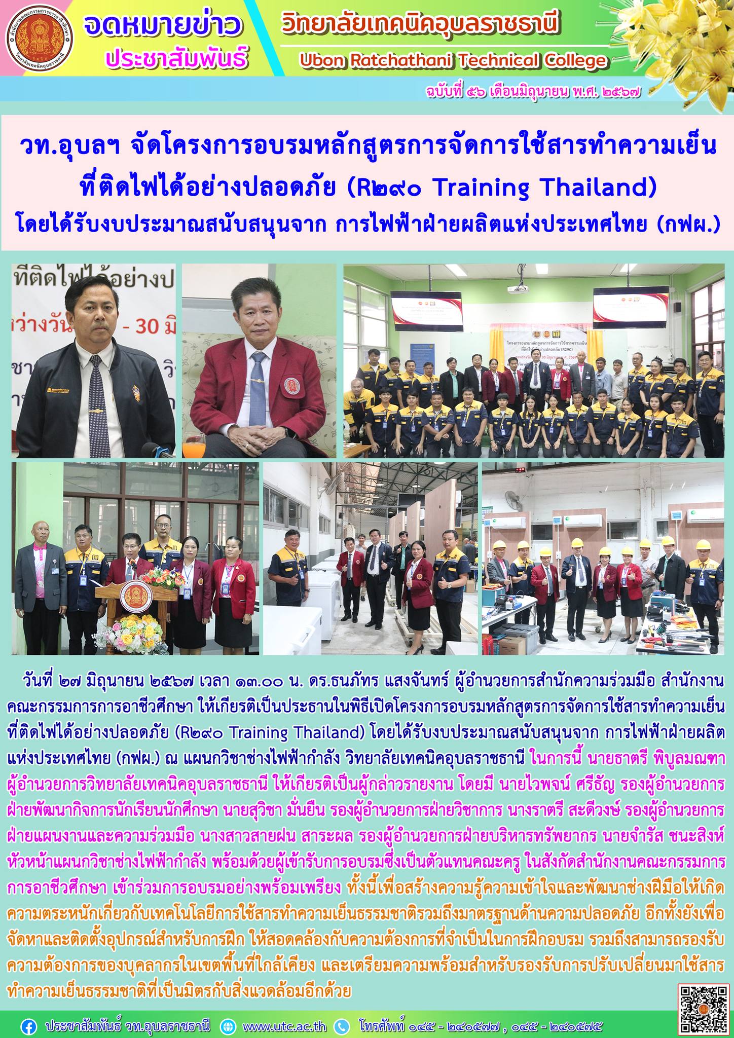 โครงการอบรมหลักสูตรการจัดการใช้สารทำความเย็นที่ติดไฟได้อย่างปลอดภัย (R๒๙๐ Training Thailand) โดยได้รับงบประมาณสนับสนุนจาก การไฟฟ้าฝ่ายผลิตแห่งประเทศไทย (กฟผ.)