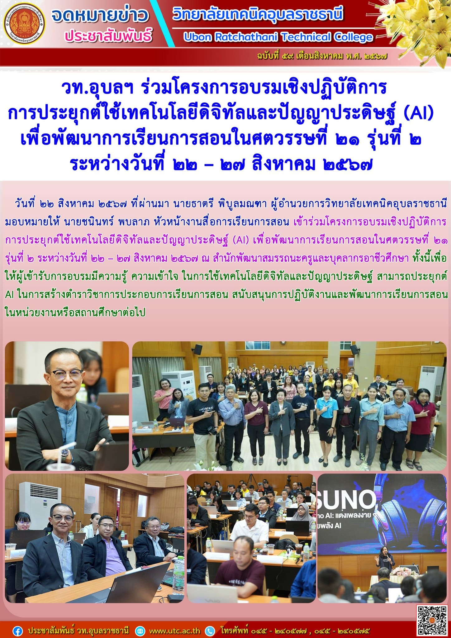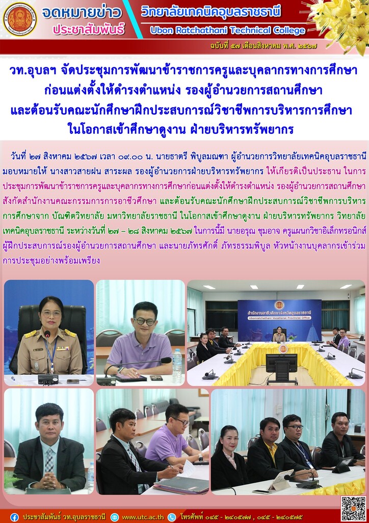 วันที่ ๒๗ สิงหาคม ๒๕๖๗ เวลา ๑๓.๐๐ น. นายธาตรี พิบูลมณฑา ผู้อำนวยการวิทยาลัยเทคนิคอุบลราชธานี (เพิ่มเติม…)