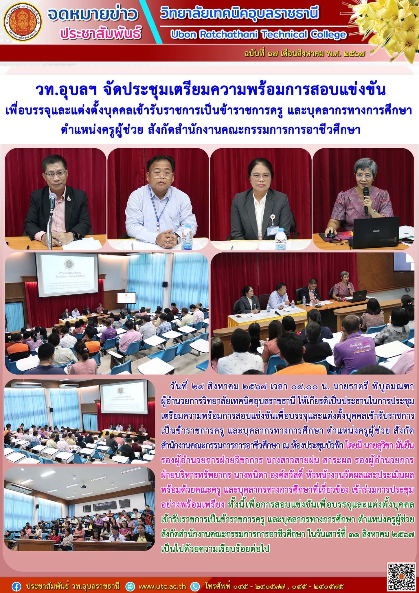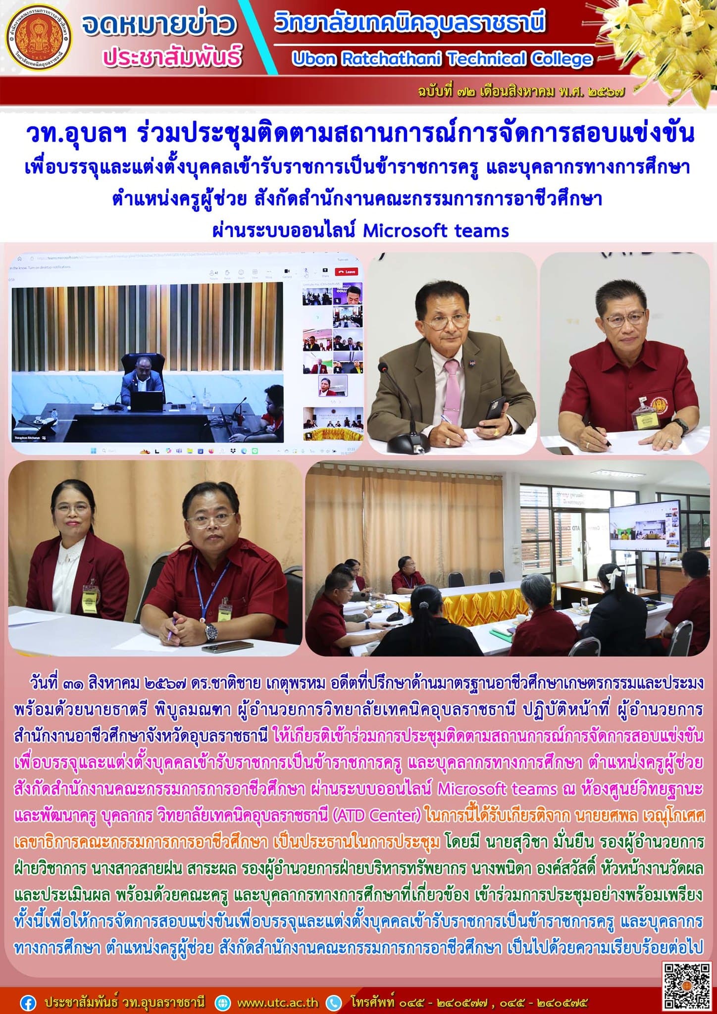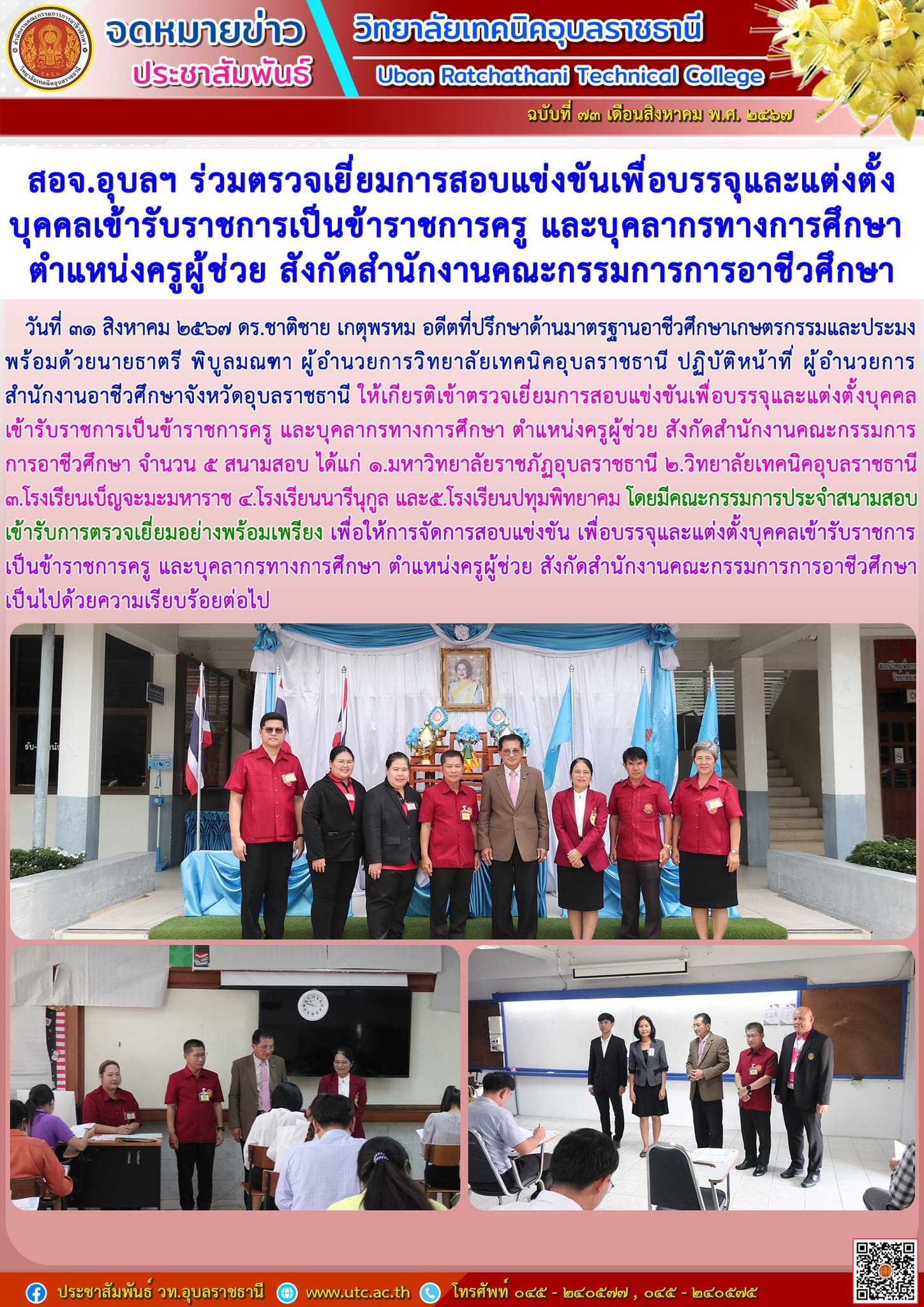สอจ.อุบลฯ ร่วมตรวจเยี่ยมการสอบแข่งขันเพื่อบรรจุและแต่งตั้งบุคคลเข้ารับราชการเป็นข้าราชการครู และบุคลากรทางการศึกษา ตำแหน่งครูผู้ช่วย สังกัดสำนักงานคณะกรรมการการอาชีวศึกษา