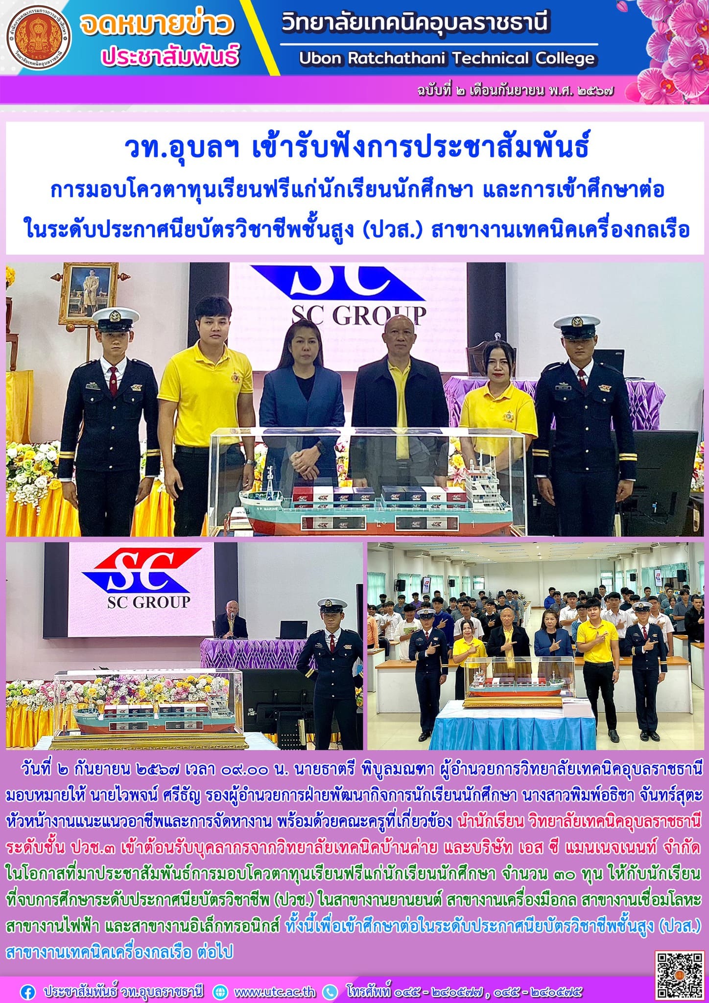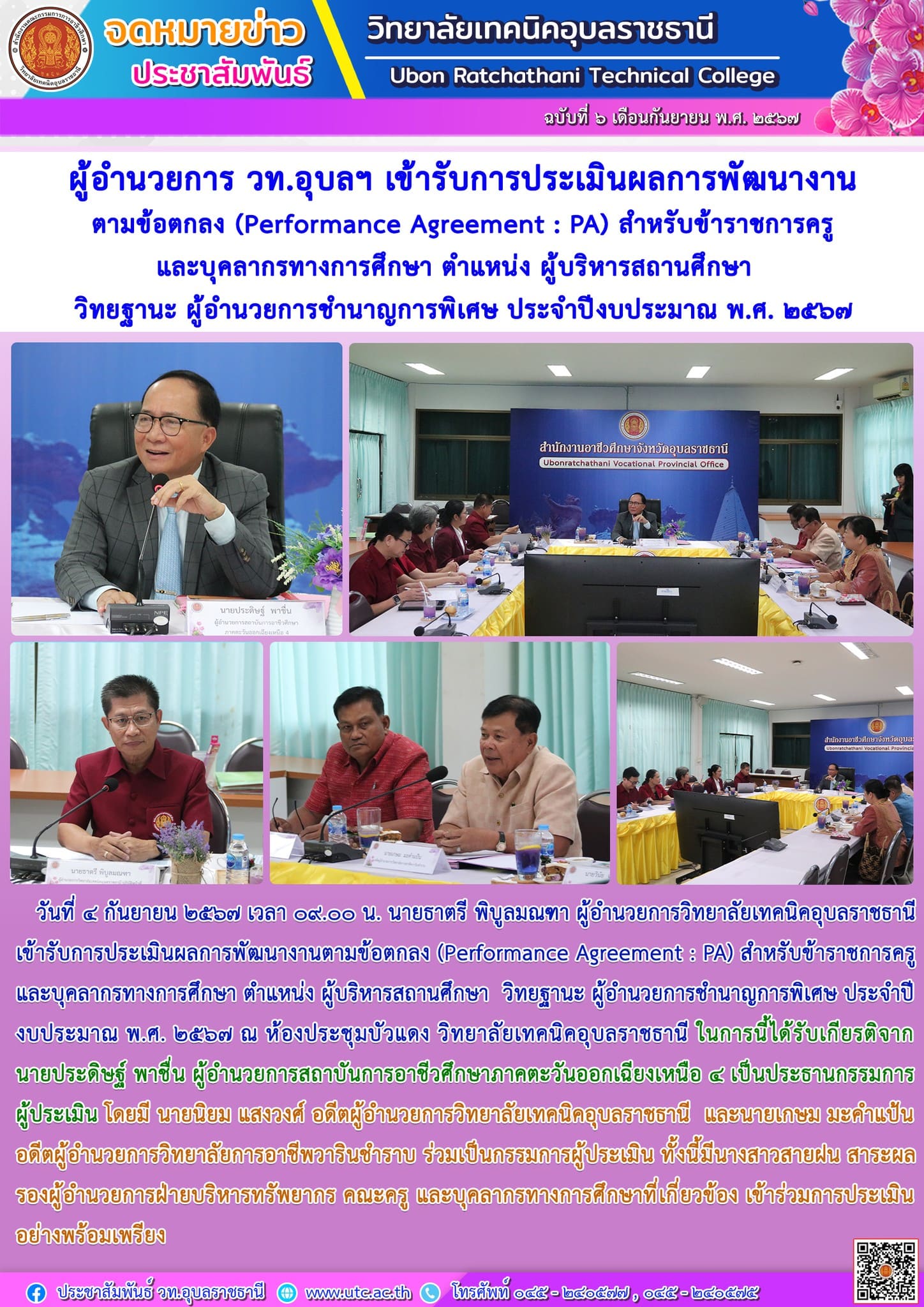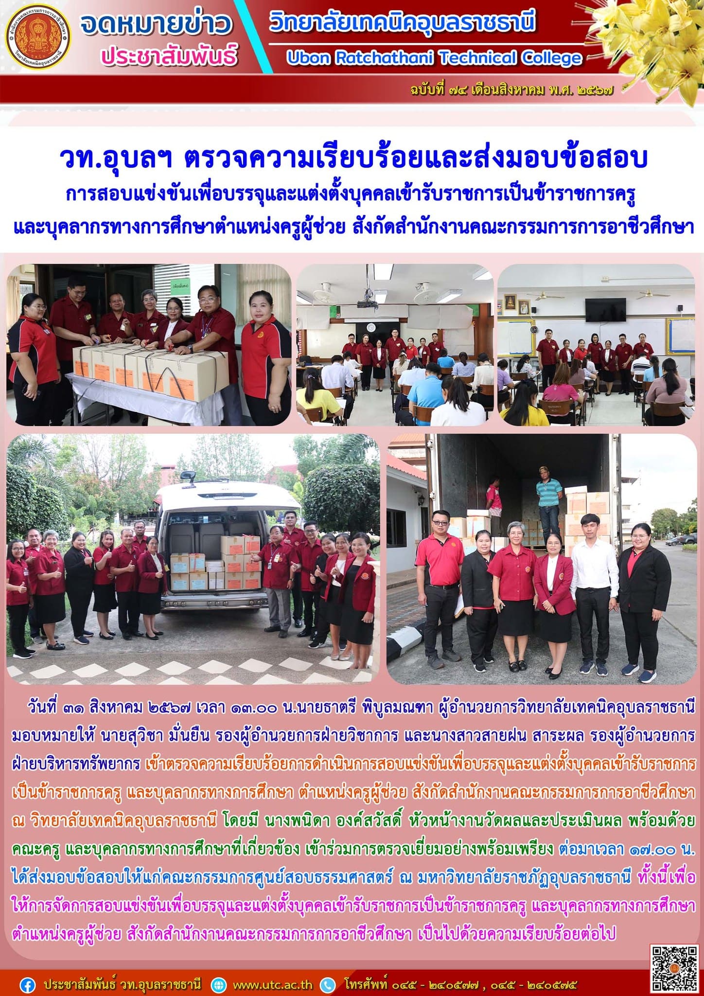 วันที่ ๔ กันยายน ๒๕๖๗ เวลา ๐๙.๐๐ น. นายธาตรี พิบูลมณฑา ผู้อำนวยการวิทยาลัยเทคนิคอุบลราชธานี (เพิ่มเติม…)