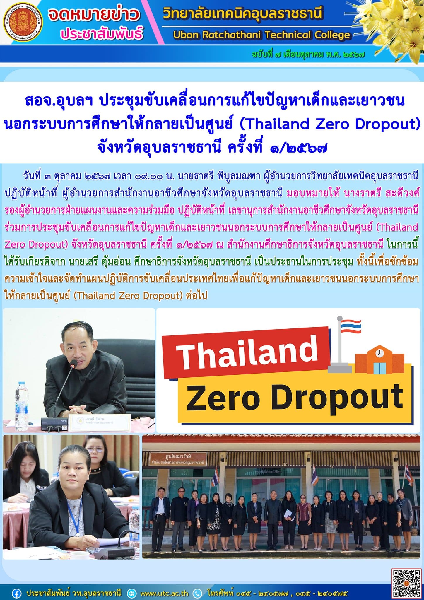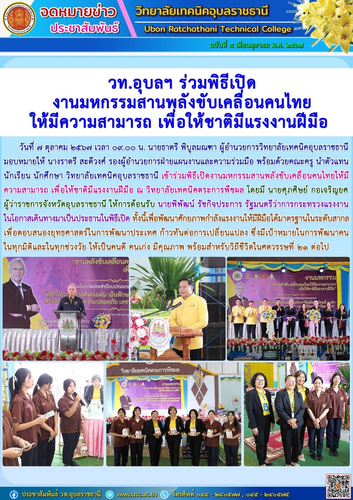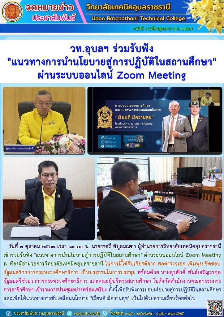 วันที่ ๗ ตุลาคม ๒๕๖๗ เวลา ๑๓.๐๐ น. นายธาตรี พิบูลมณฑา ผู้อำนวยการวิทยาลัยเทคนิคอุบลราชธานี เข้าร่วมรับฟัง “แนวทางการนำนโยบาย (เพิ่มเติม…)