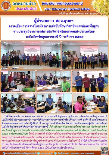 วันที่ ๒๖ พฤศจิกายน ๒๕๖๗ เวลา ๐๙.๐๐ น. นายธาตรี พิบูลมณฑา ผู้อำนวยการวิทยาลัยเทคนิคอุบลราชธานีมอบหมายให้ นางสาว (เพิ่มเติม…)