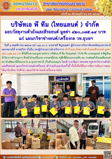 วันที่ ๑๒ พฤศจิกายน ๒๕๖๗ เวลา ๑๔.๐๐ น. นายธาตรี พิบูลมณฑา ผู้อำนวยการวิทยาลัยเทคนิคอุบลราชธานี ให้เกียรตินิเทศการเรียน (เพิ่มเติม…)