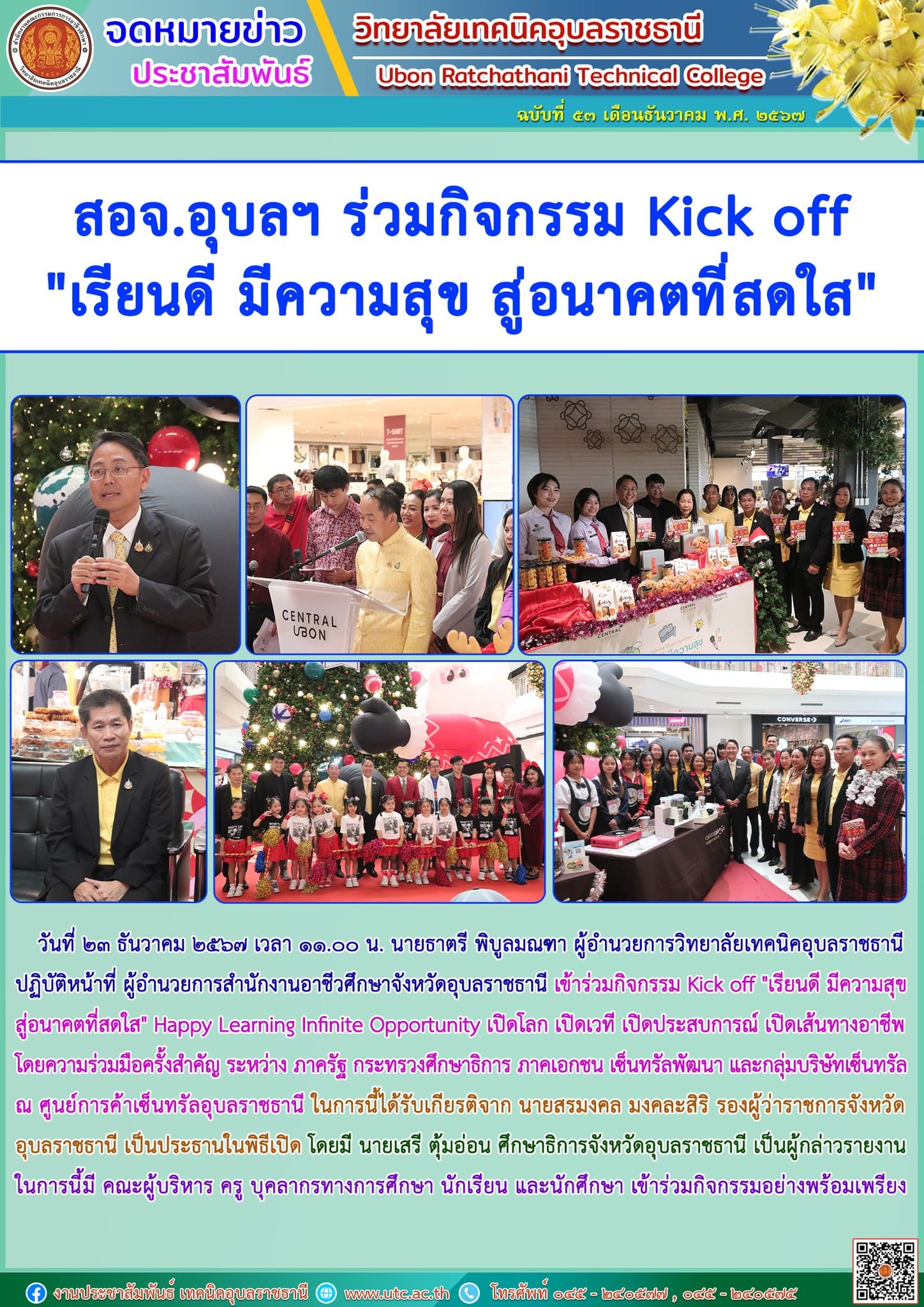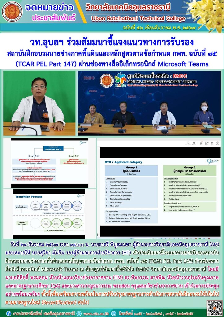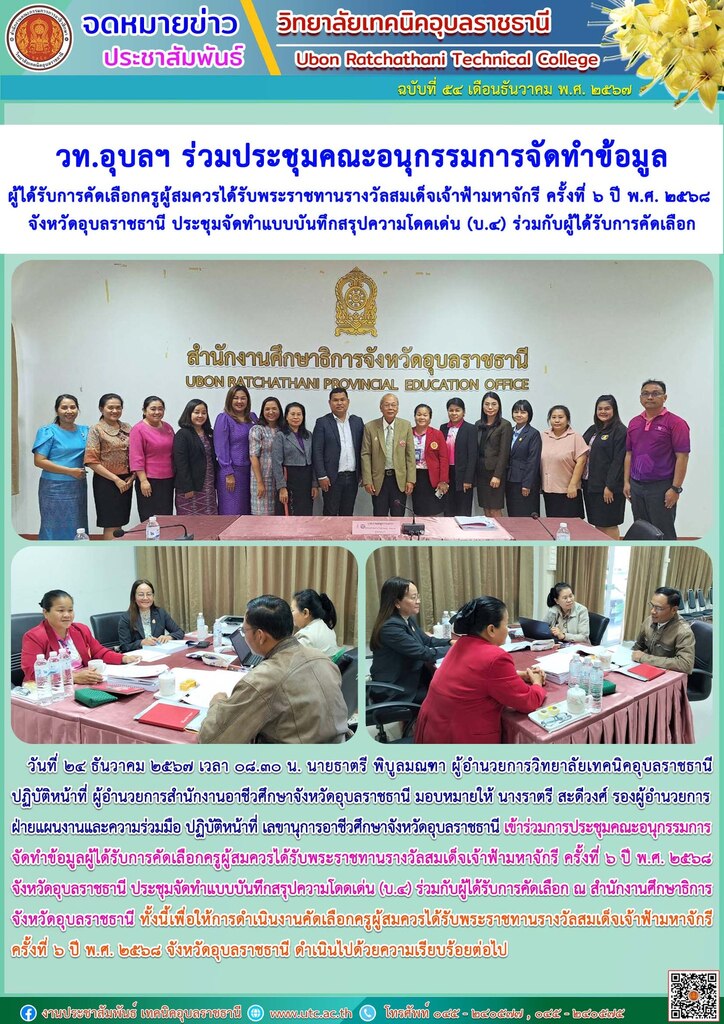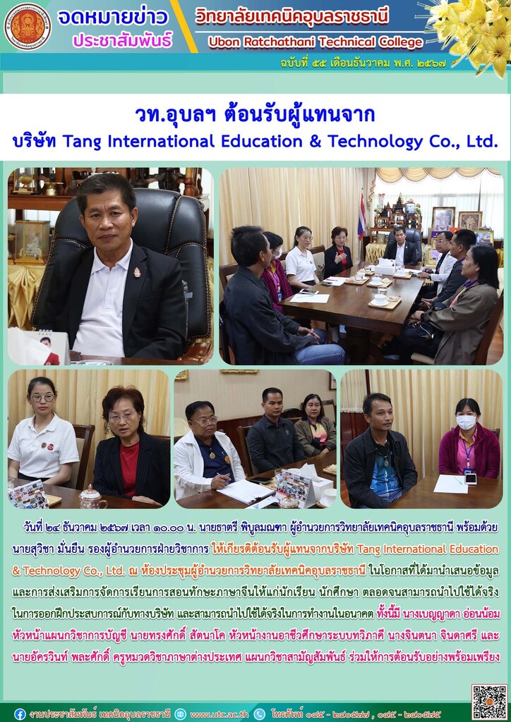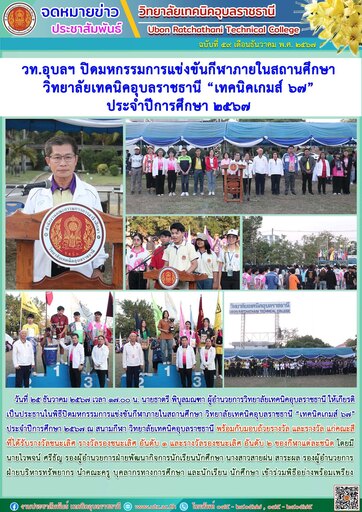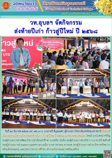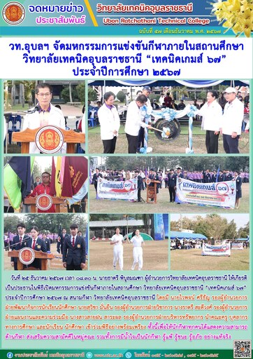 วันที่ ๒๗ ธันวาคม ๒๕๖๗ นายธาตรี พิบูลมณฑา ผู้อำนวยการวิทยาลัยเทคนิคอุบลราชธานี ปฏิบัติหน้าที่ ผู้อำนวยการสำนักงานอาชีวศึกษาจังหวัดอุบลราชธานี พร้อมด้วย (เพิ่มเติม…)