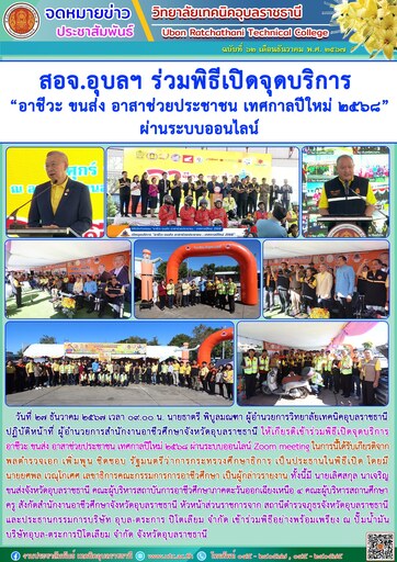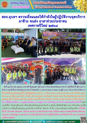 สอจ.อุบลฯ ตรวจเยี่ยมและให้กำลังใจผู้ปฏิบัติงานจุดบริการ อาชีวะ ขนส่ง อาสาช่วยประชาชน เทศกาลปีใหม่ ๒๕๖๘