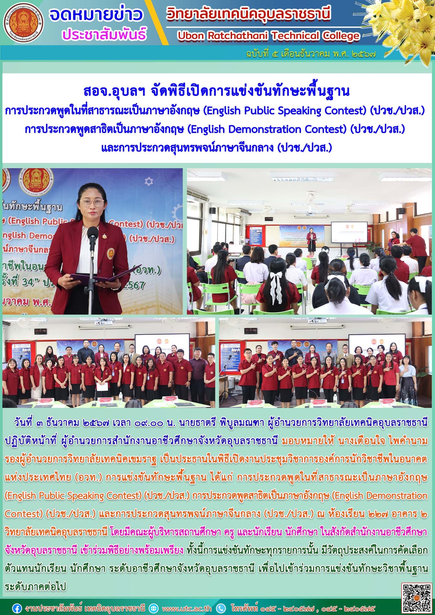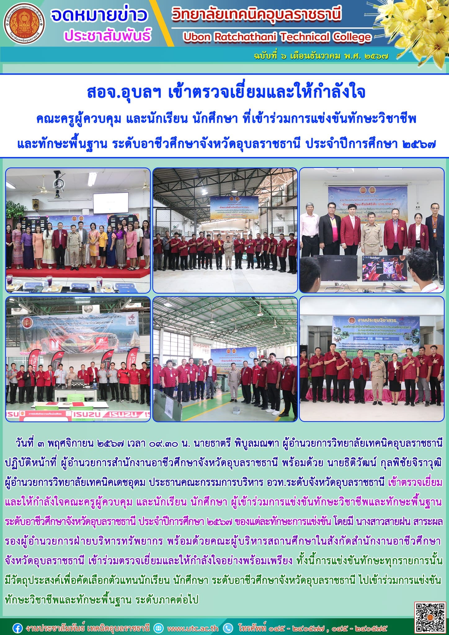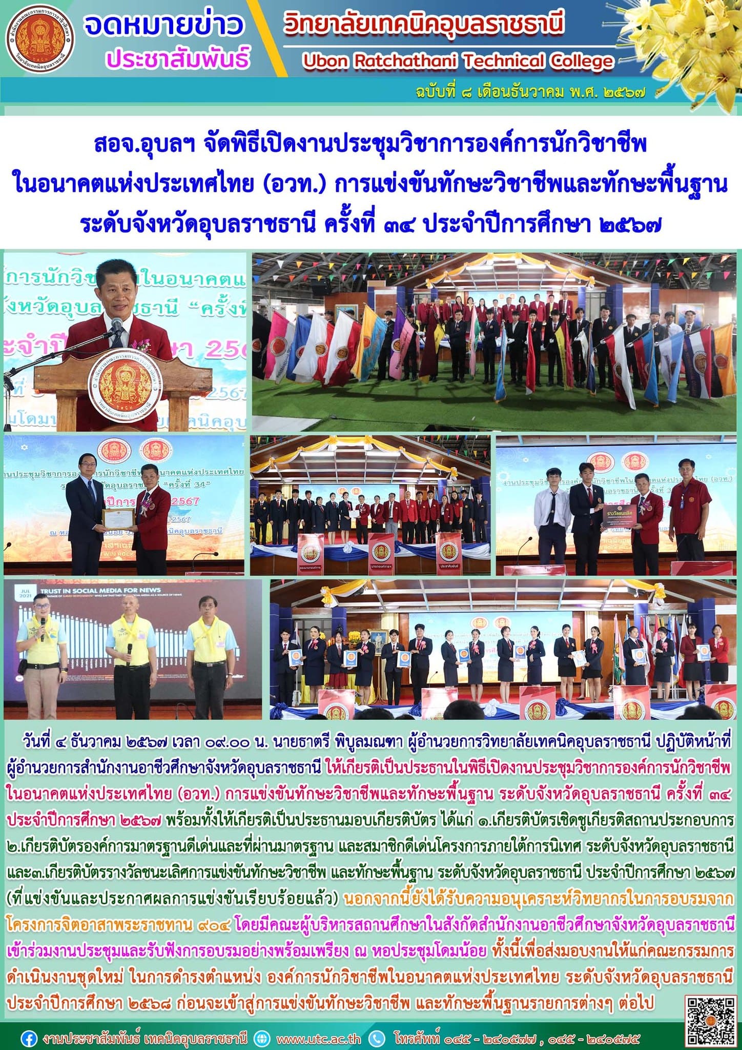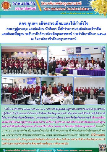 วันที่ ๔ ธันวาคม ๒๕๖๗ เวลา ๐๙.๐๐ น. นายธาตรี พิบูลมณฑา ผู้อำนวยการวิทยาลัยเทคนิคอุบลราชธานี (เพิ่มเติม…)
