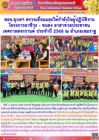 วันที่ 15 – 16 ธันวาคม 2568 นายธาตรี พิบูลมณฑา ผู้อำนวยการวิทยาลัยเทคนิคอุบลราชธานี ปฏิบัติหน้าที่ ผู้อำนวยการสำนักงานอาชีว (เพิ่มเติม…)