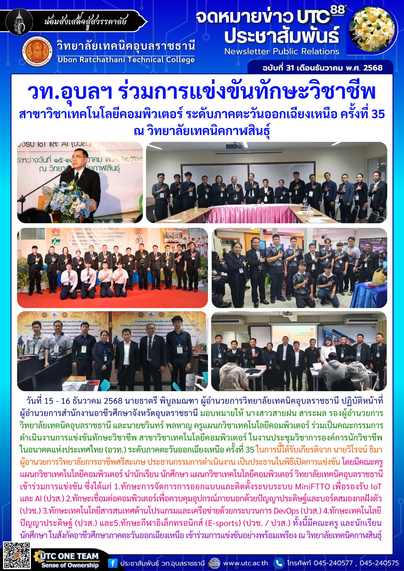 วท.อุบลฯ ร่วมการแข่งขันทักษะวิชาชีพ สาขาวิชาเทคโนโลยีคอมพิวเตอร์ ระดับภาคตะวันอกเฉียงเหนือ ครั้งที่ 35 ณ วิทยาลัยเทคนิคกาฬสินธุ์