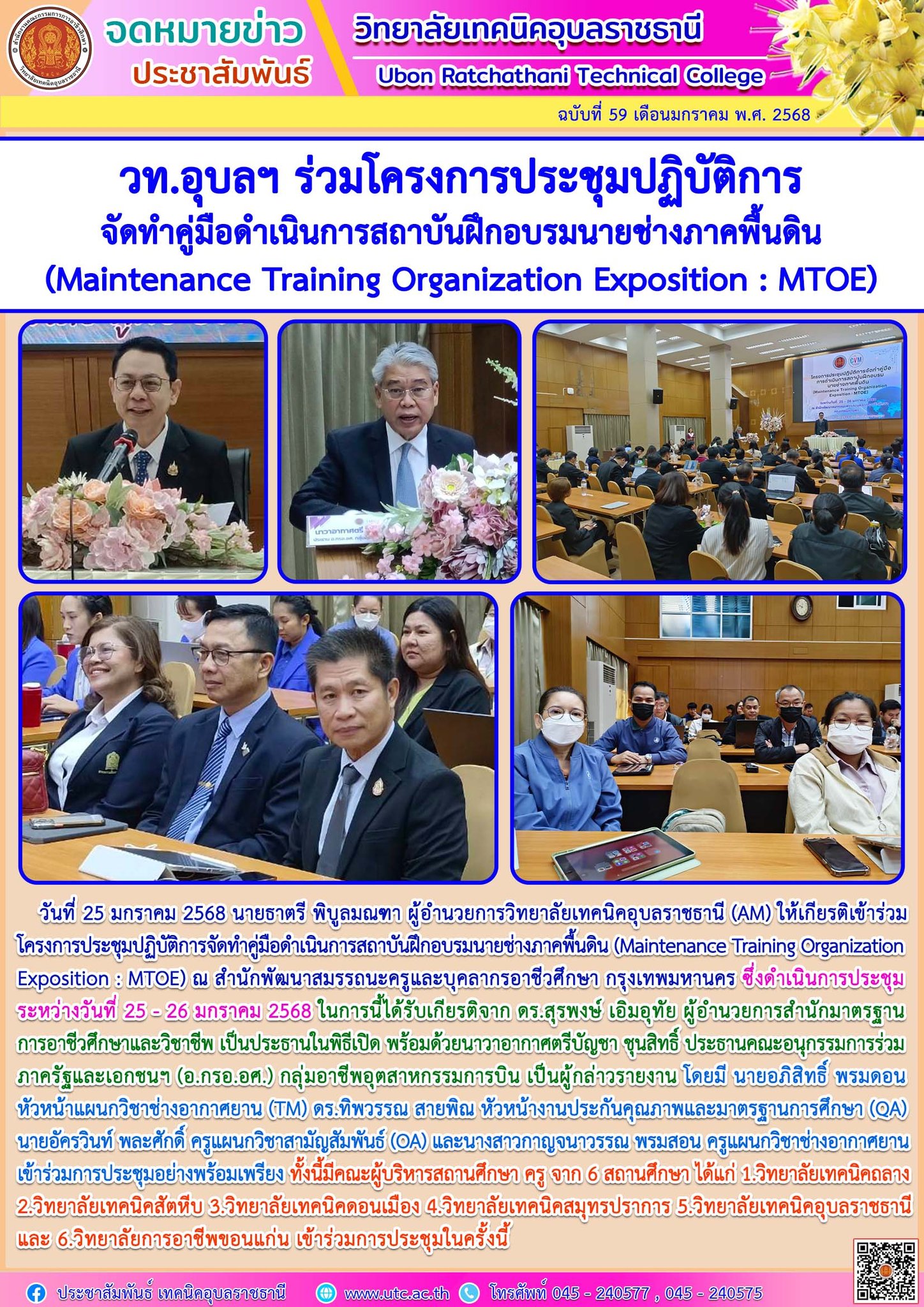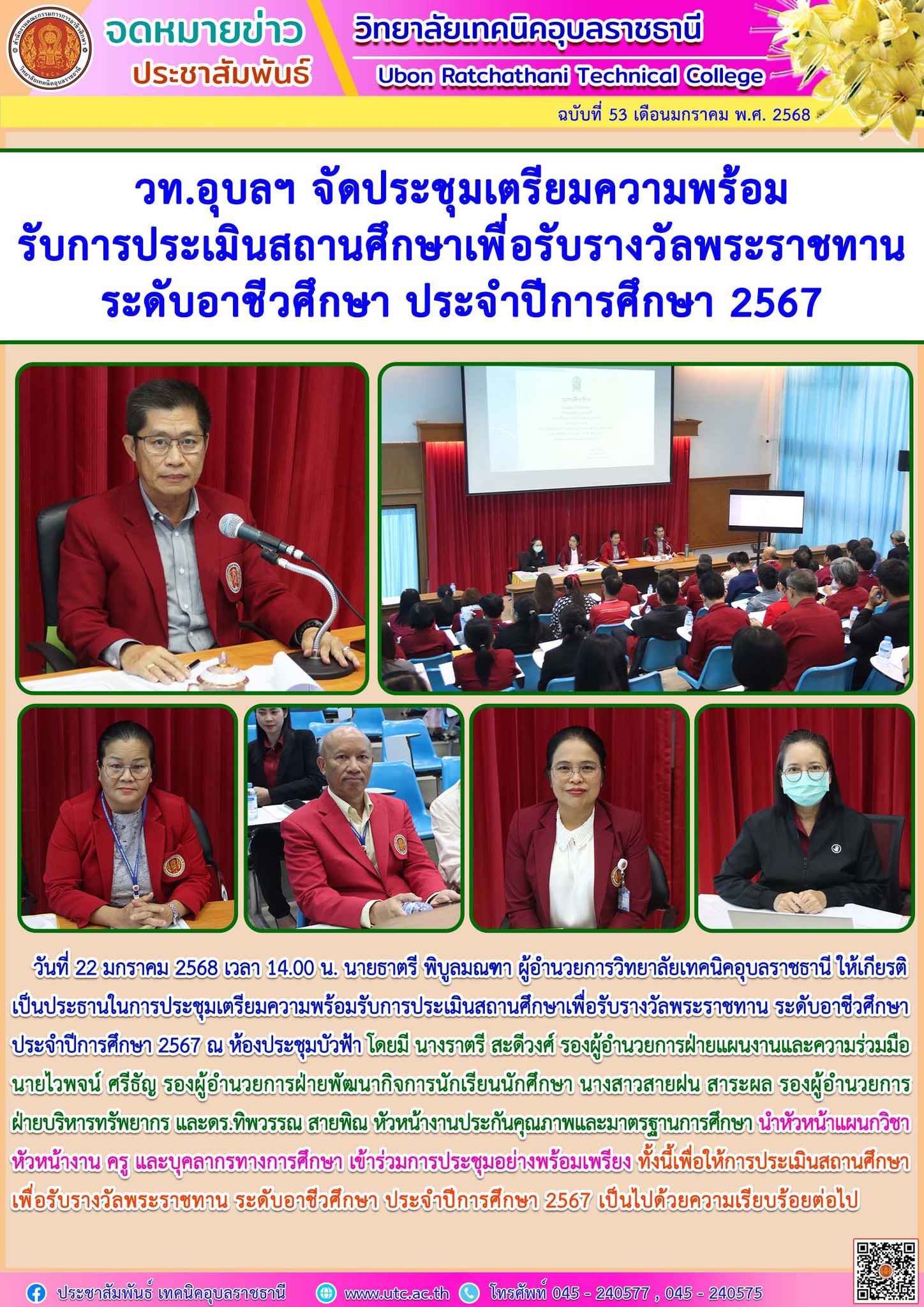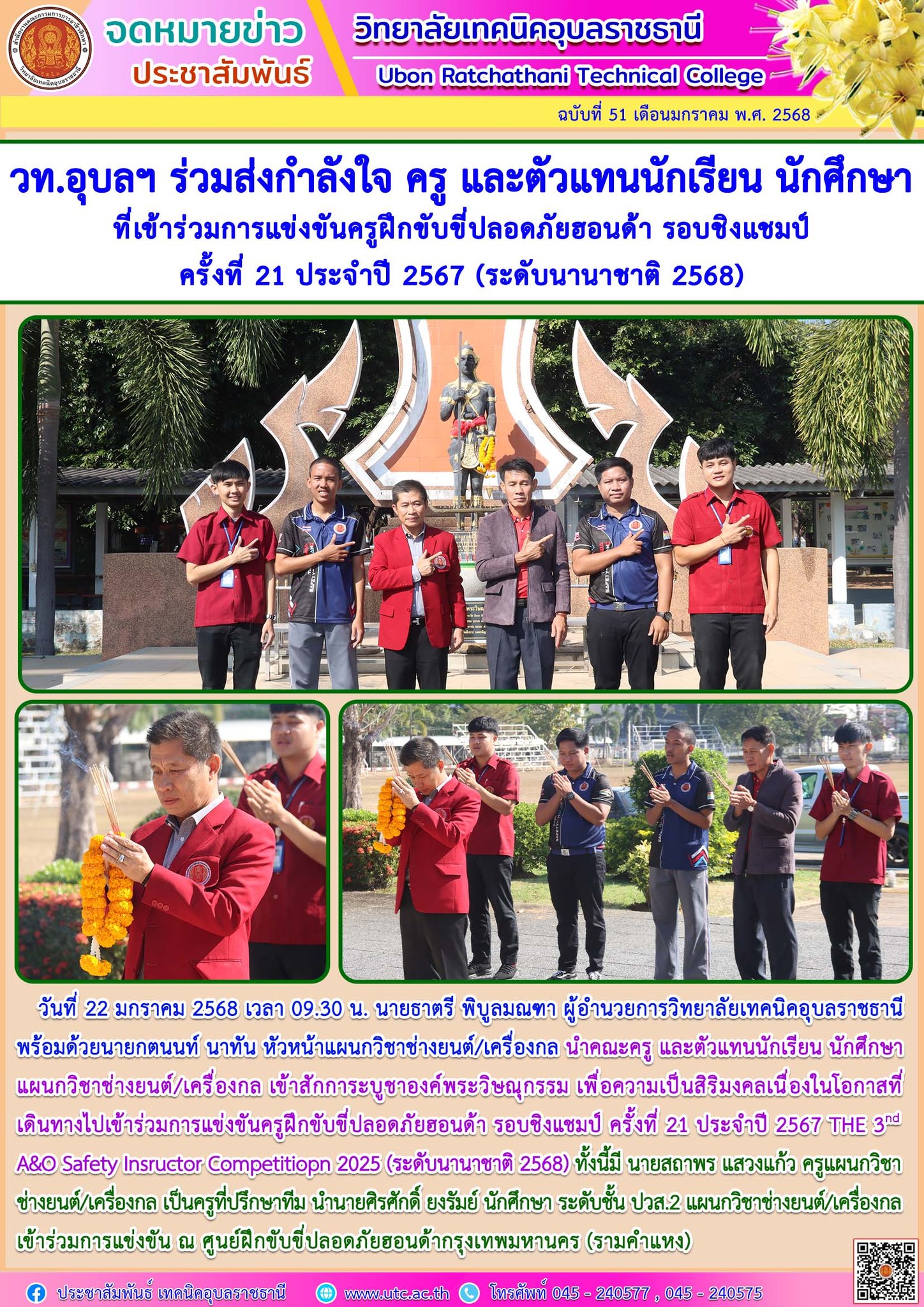 วันที่ 25 มกราคม 2568 นายธาตรี พิบูลมณฑา ผู้อำนวยการวิทยาลัยเทคนิคอุบลราชธานี มอบหมายให้ นายไวพจน์ ศรีธัญ รองผู้อำนวยการฝ่ายพัฒนากิจการนักเรียน (เพิ่มเติม…)