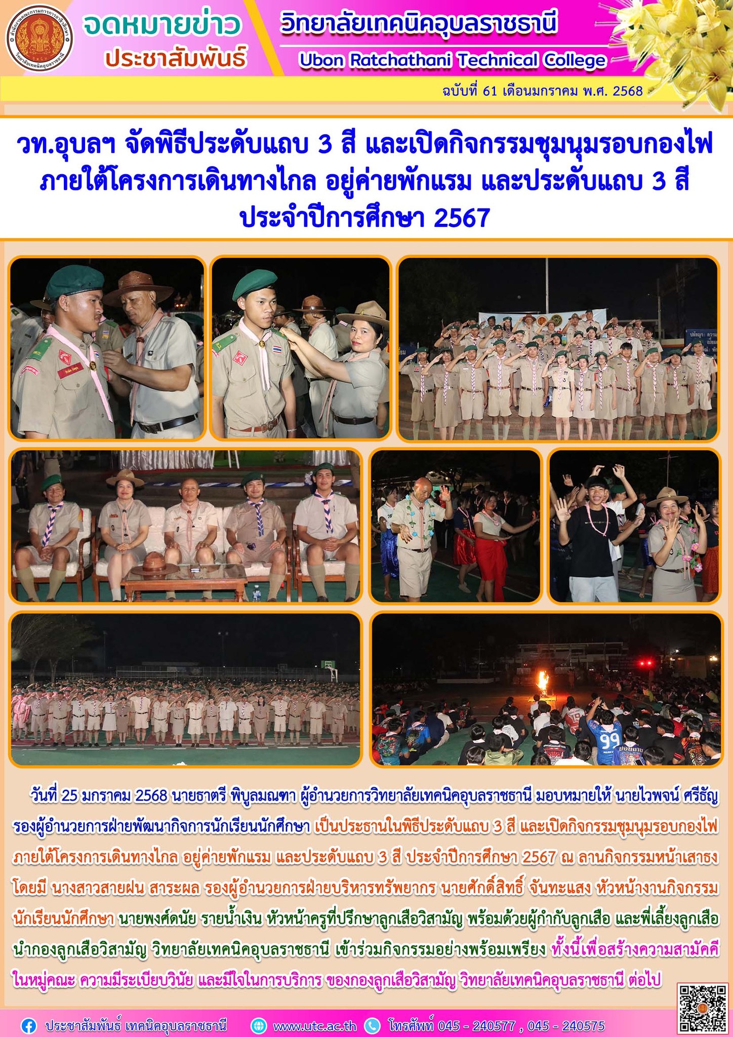 พิธีประดับแถบ 3 สี และเปิดกิจกรรมชุมนุมรอบกองไฟ ภายใต้โครงการเดินทางไกล อยู่ค่ายพักแรม และประดับแถบ 3 สี ประจำปีการศึกษา 2567