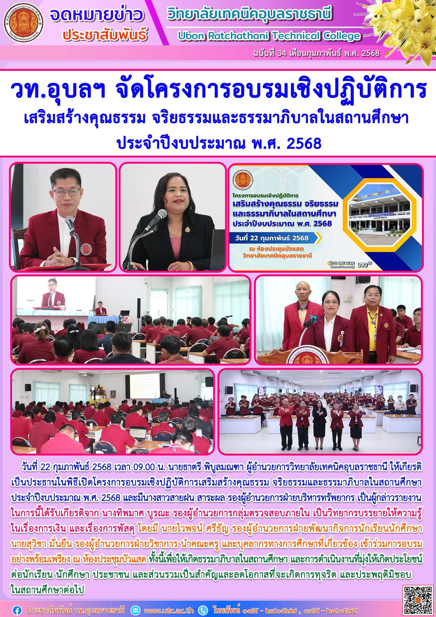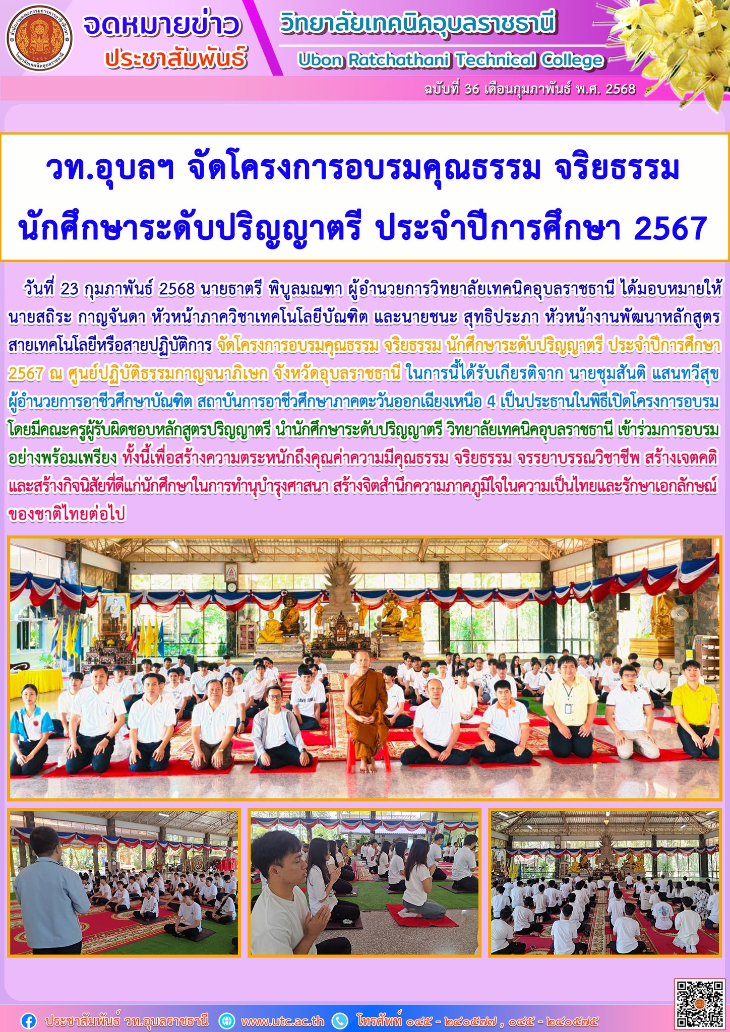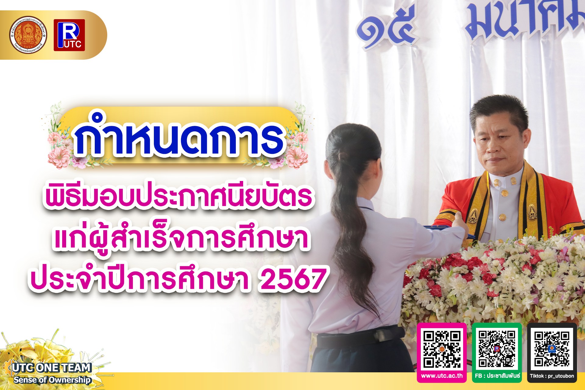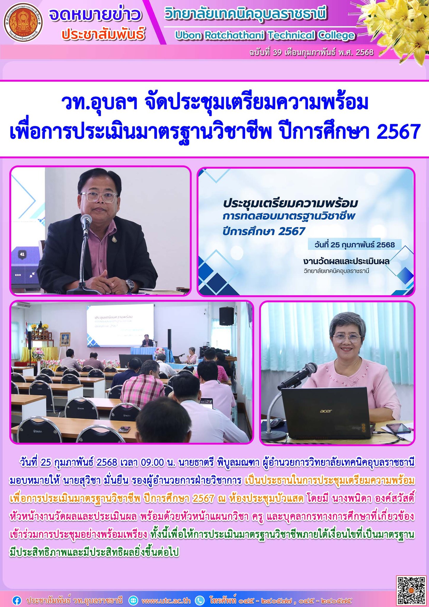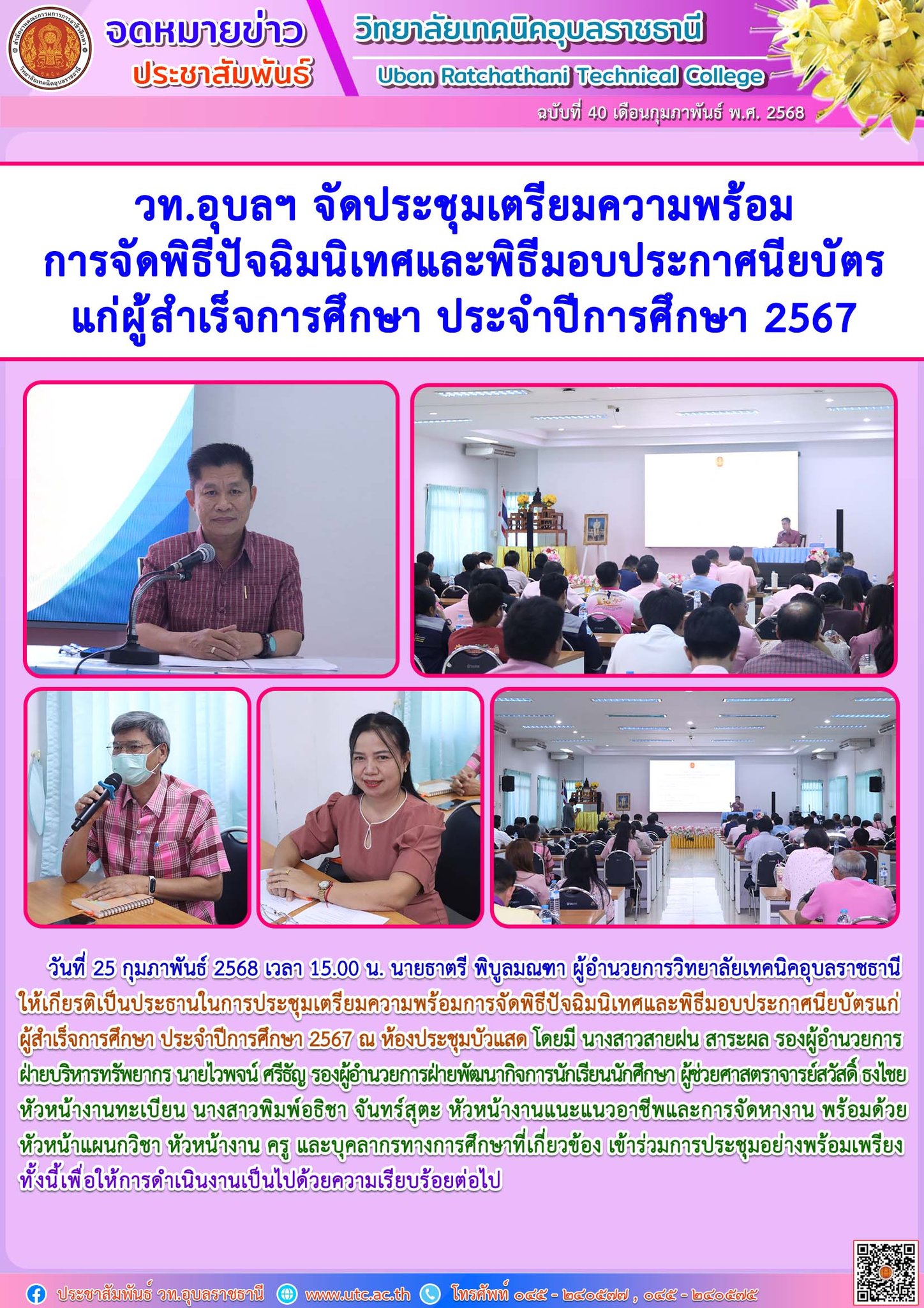 วท.อุบลฯ จัดประชุมอย่างพร้อมการจัดพิธีปัจฉิมนิเทศและพิธีมอบประกาศนียบัตรแก่ผู้สำเร็จการศึกษา ประจำปีการศึกษา2567