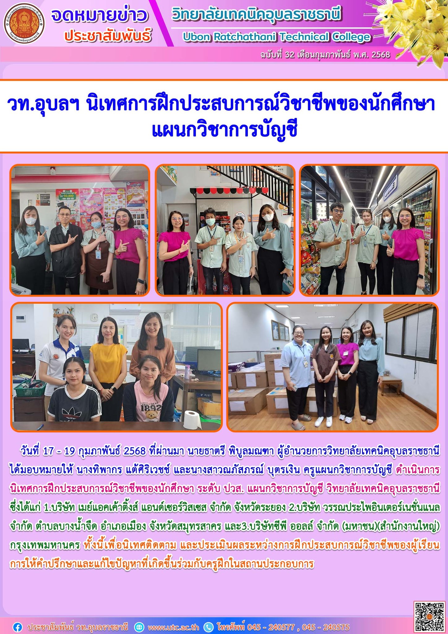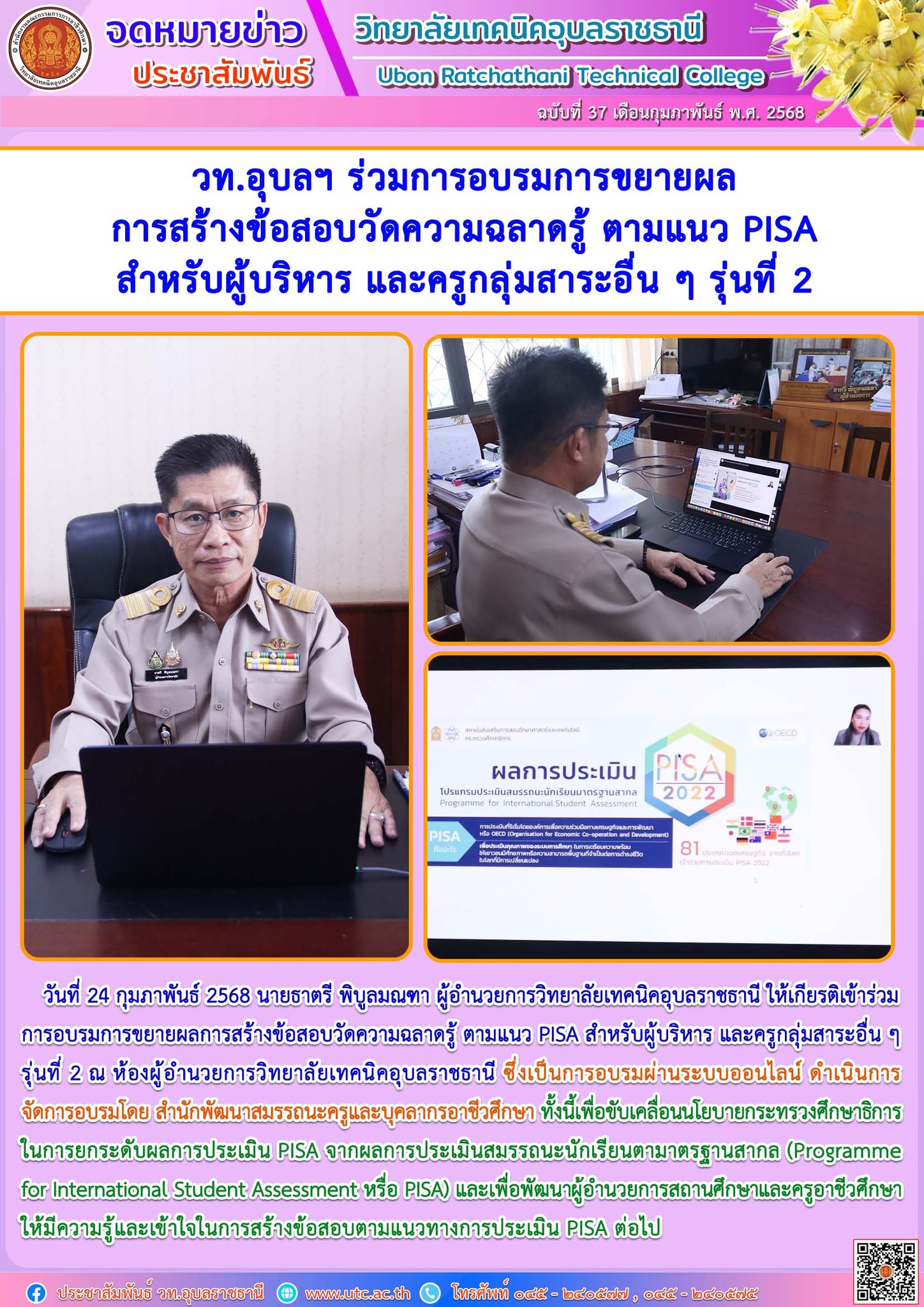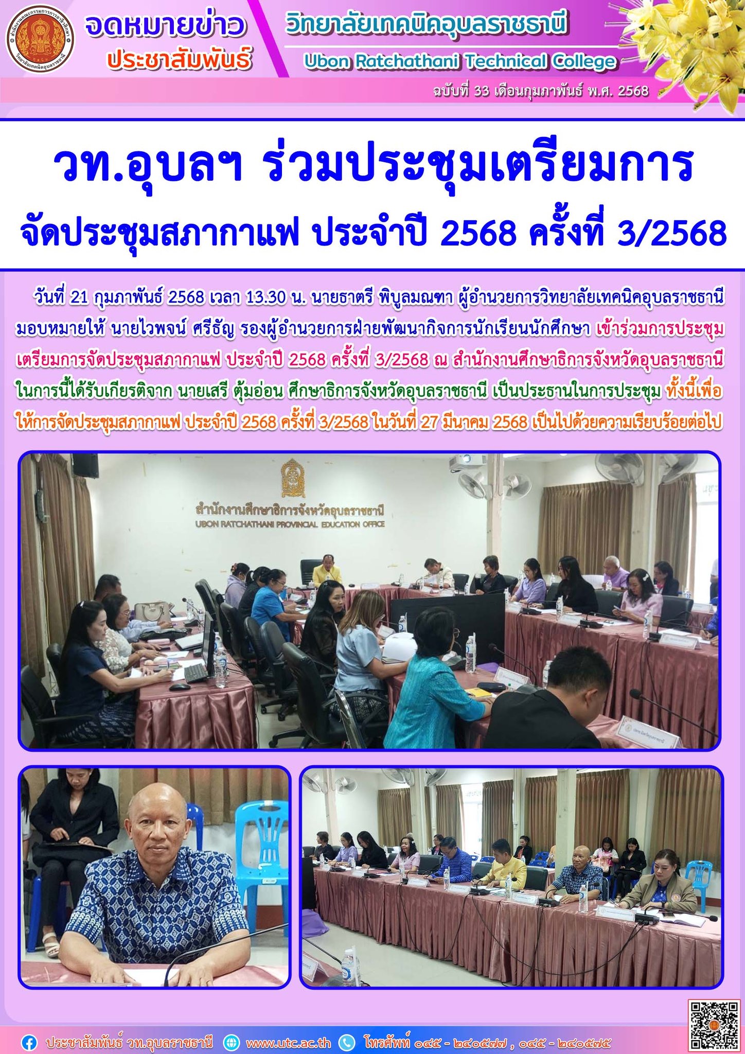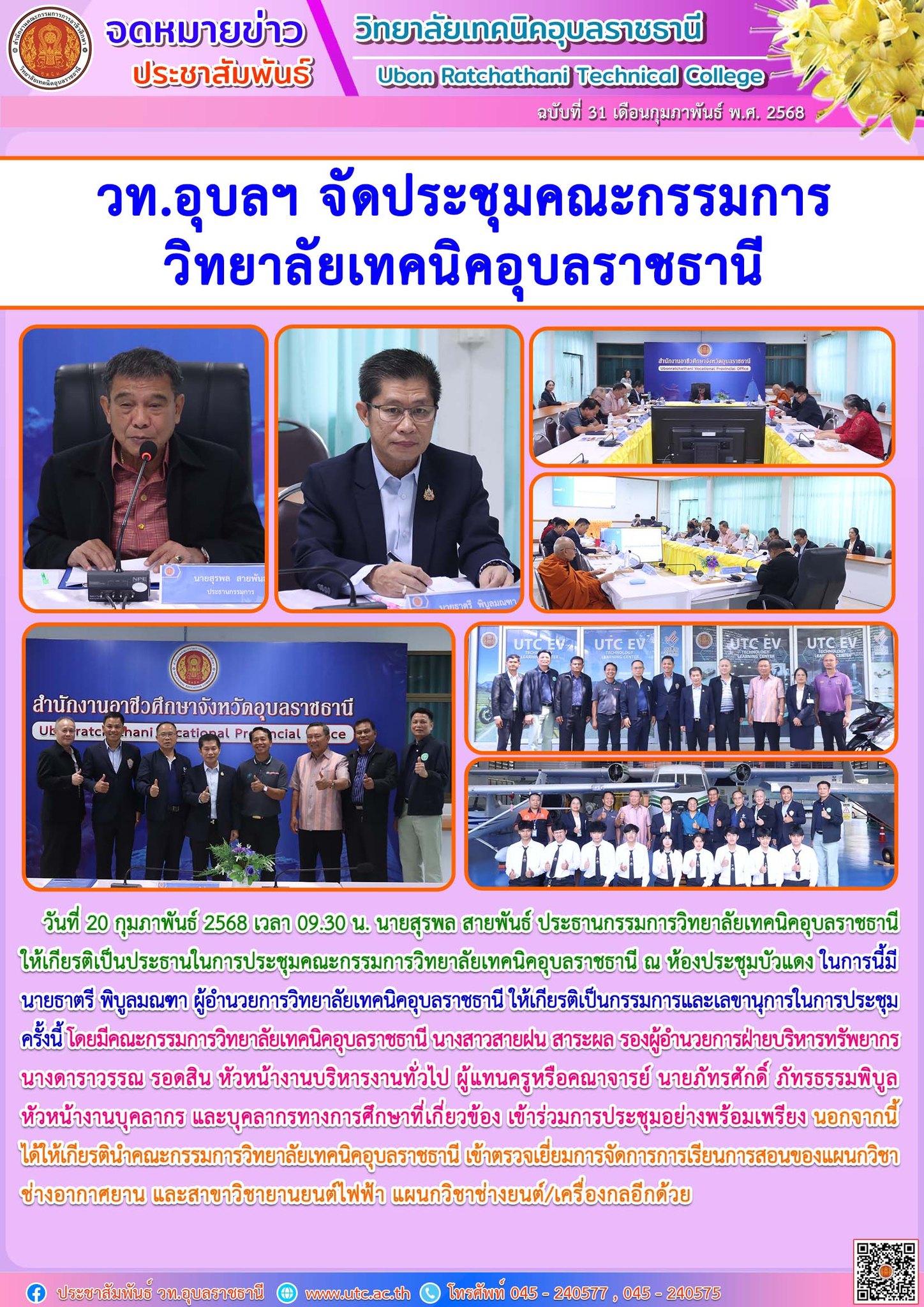 วันที่ 25 กุมภาพันธ์ 2568 เวลา 15.00 น. นายธาตรี พิบูลมณฑา ผู้อำนวยการวิทยาลัยเทคนิคอุบลราชธานี ให้เกียรติเป็นประธานในการประชุม (เพิ่มเติม…)