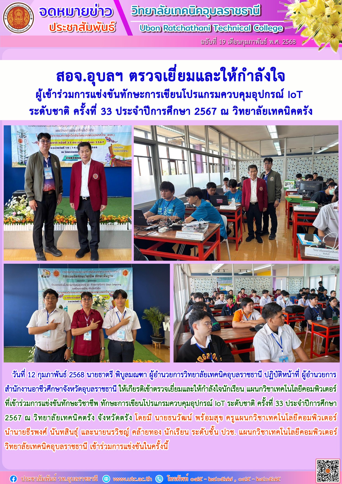 วันที่ 15 กุมภาพันธ์ 2568 ที่ผ่านมา นายธาตรี พิบูลมณฑา ผู้อำนวยการวิทยาลัยเทคนิคอุบลราชธานี มอบหมายให้ นายหลักชัย เล็กเมฆขา และ (เพิ่มเติม…)