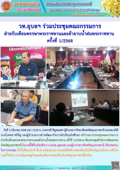 วันที่ 17 มีนาคม 2568 เวลา 10.00 น. นายธาตรี พิบูลมณฑา ผู้อำนวยการวิทยาลัยเทคนิคอุบลราชธานี (เพิ่มเติม…)