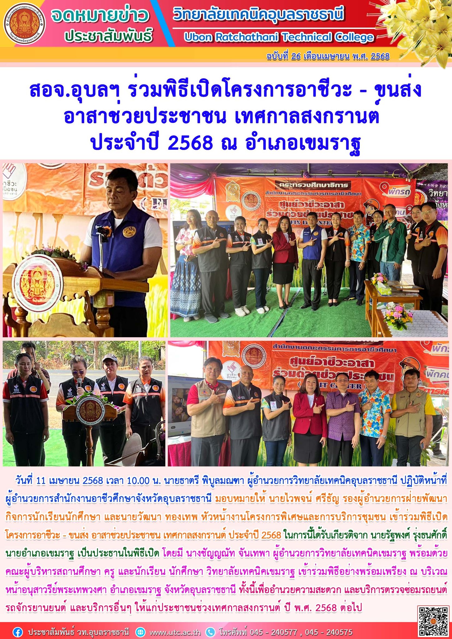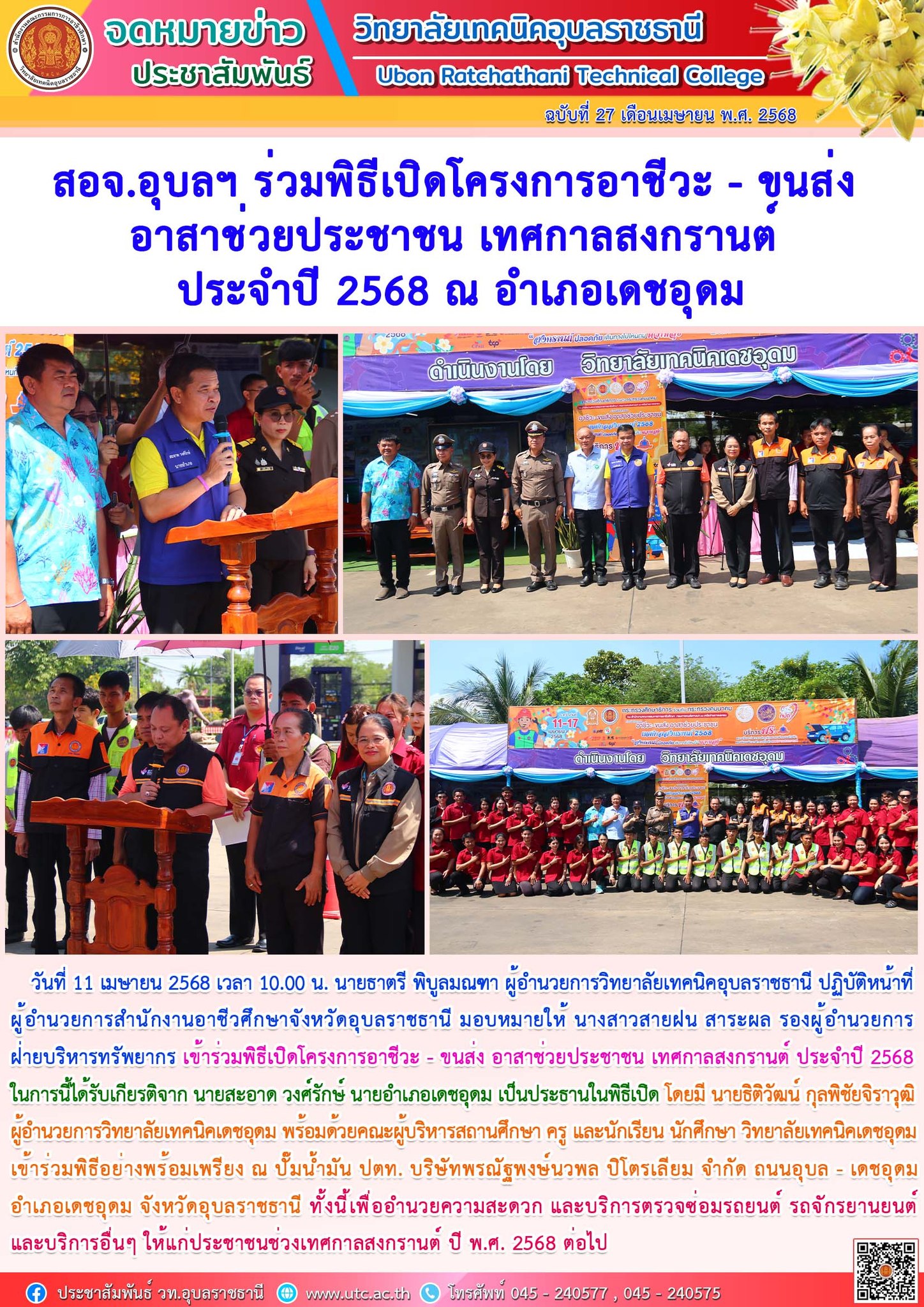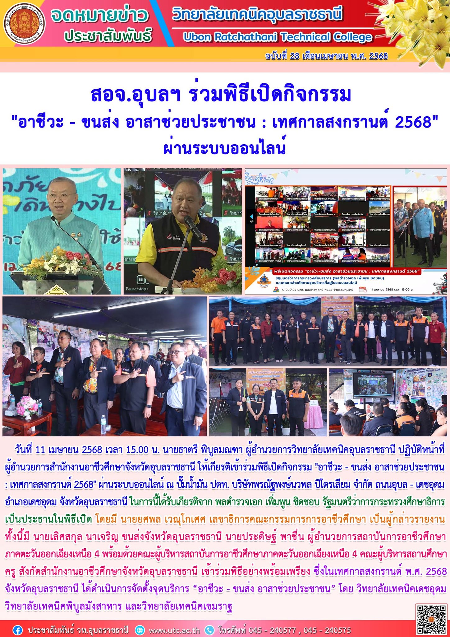 สอจ.อุบลฯ ร่วมพิธีเปิดกิจกรรม อาชีวะ-ขนส่งอาสา ช่วยประชาชนเทศกาลสงกรานต์ 2568 ผ่านระบบออนไลน์