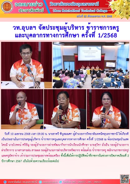 วันที่ 11 เมษายน 2568 เวลา 15.00 น. นายธาตรี พิบูลมณฑา ผู้อำนวยการวิทยาลัยเทคนิคอุบลราชธานี ปฏิบัติหน้าที่ ผู้อำนวยการสำนักงานอาชีวศึกษาจังหวัดอุบลราชธานี ให้เกียรติเข้าร่วมพิธีเปิดกิจกรรม “อาชีวะ – (เพิ่มเติม…)