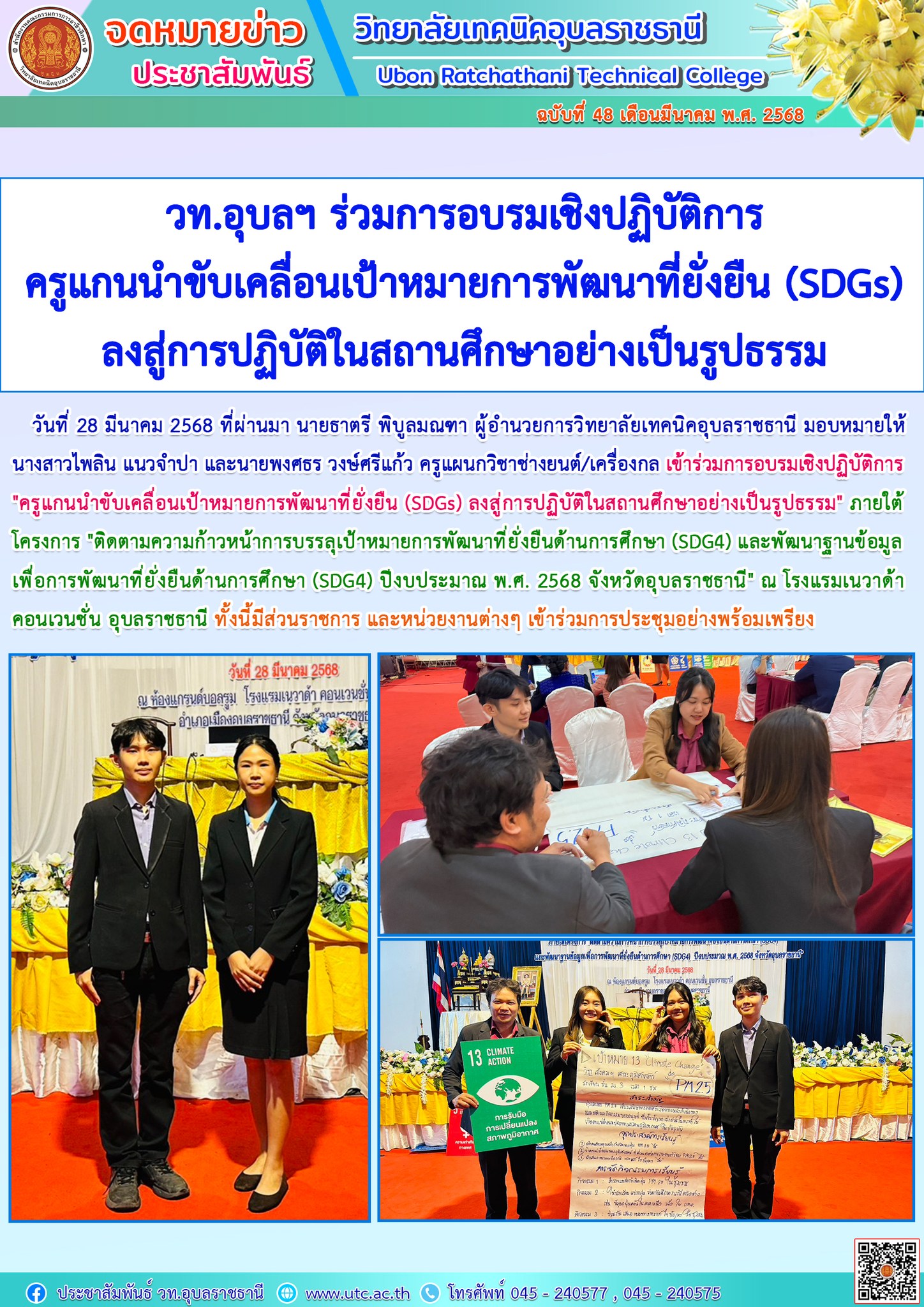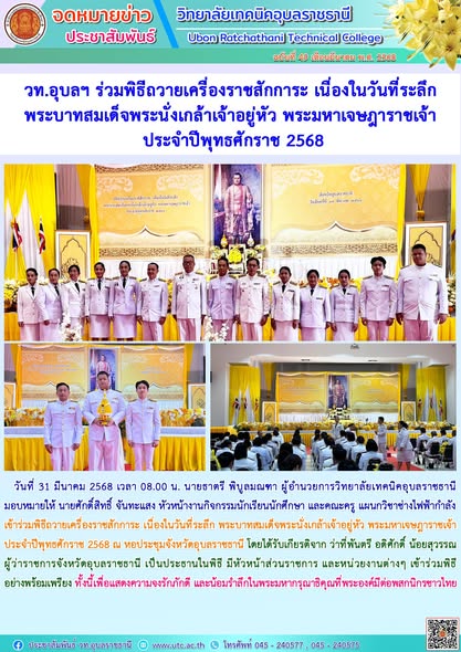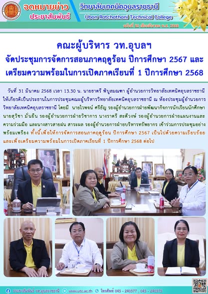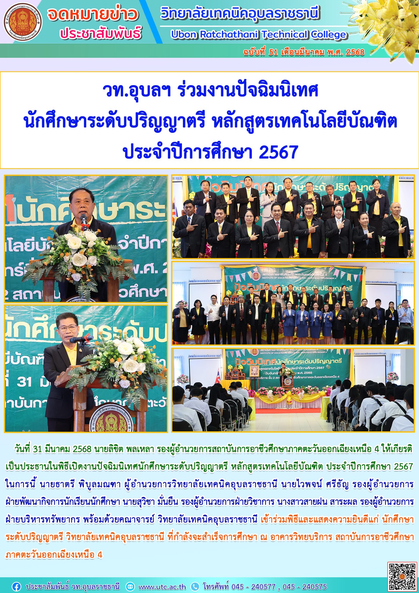 วท.อุบลฯ ร่วมงานปัจฉิมนิเทศนักศึกษาระดับปริญญาตรี หลักสูตรเทคโนโลยีบัณฑิต ประจำปีการศึกษา 2567