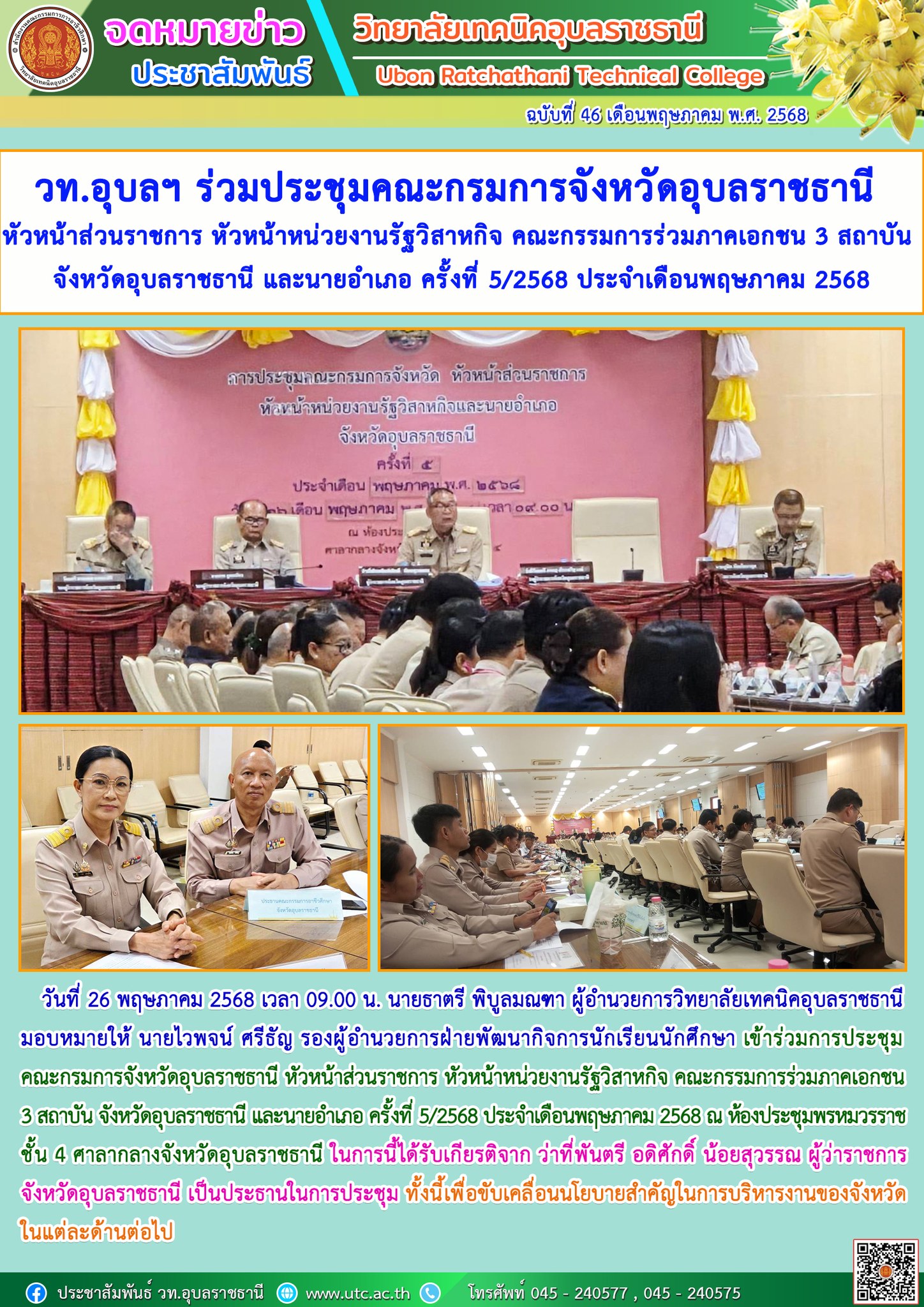 วันที่ 22 พฤษภาคม 2568 เวลา 09.00 น. นายธาตรี พิบูลมณฑา ผู้อำนวยการวิทยาลัยเทคนิคอุบลราชธานี (เพิ่มเติม…)