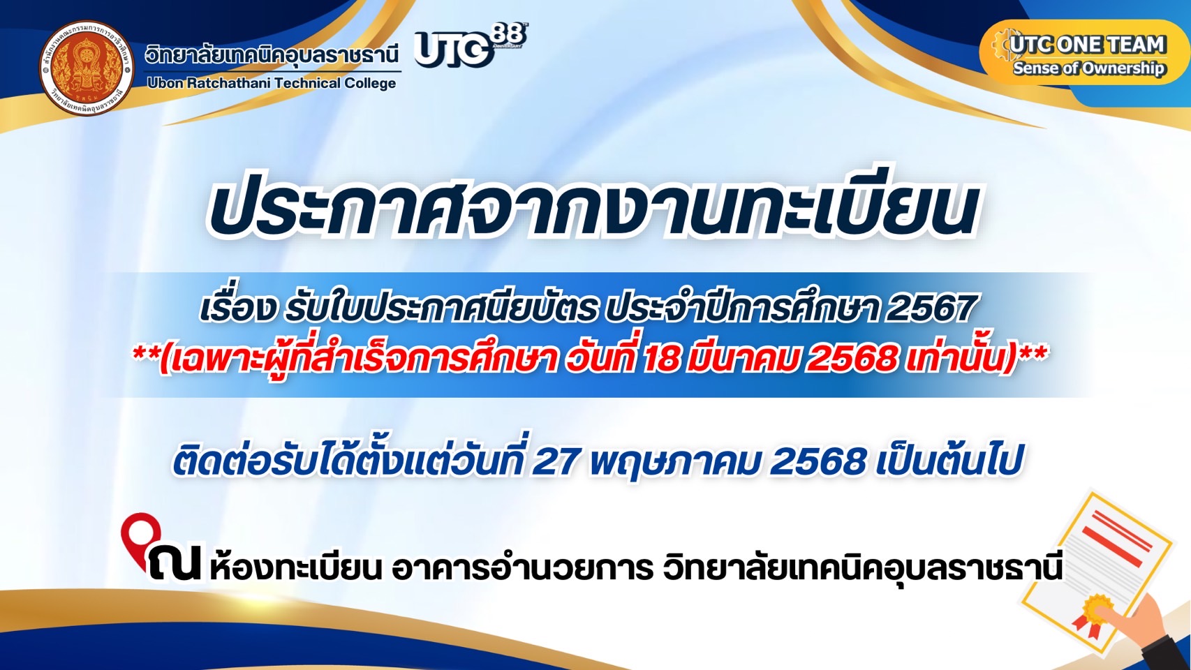 📣 เฉพาะผู้ที่สำเร็จการศึกษา วันที่ 18 มีนาคม 2568 เท่านั้น 📣