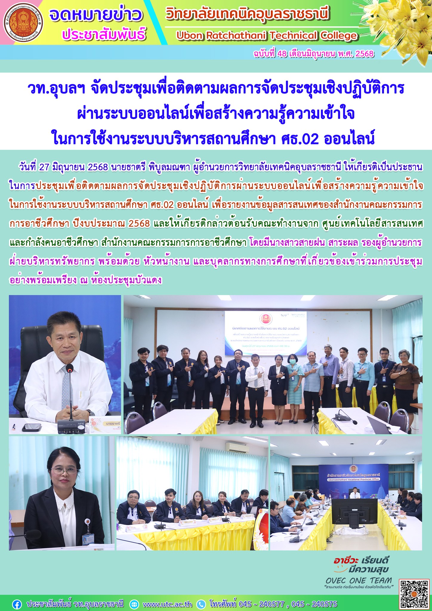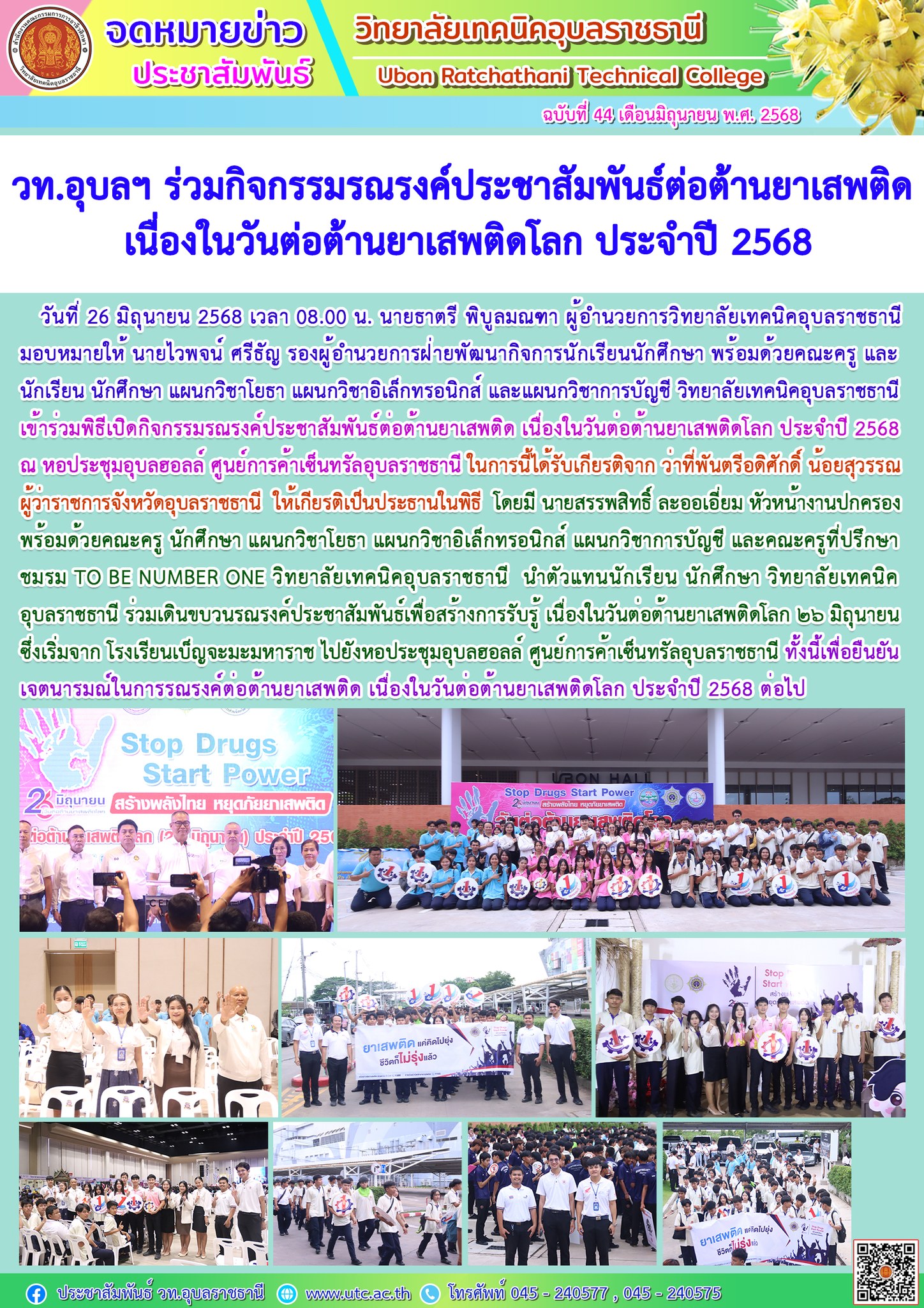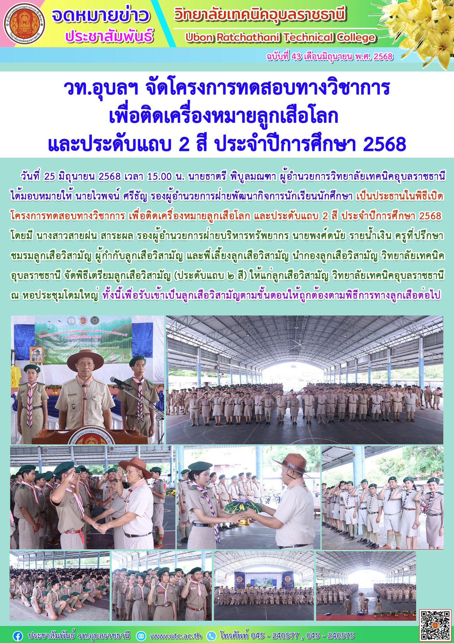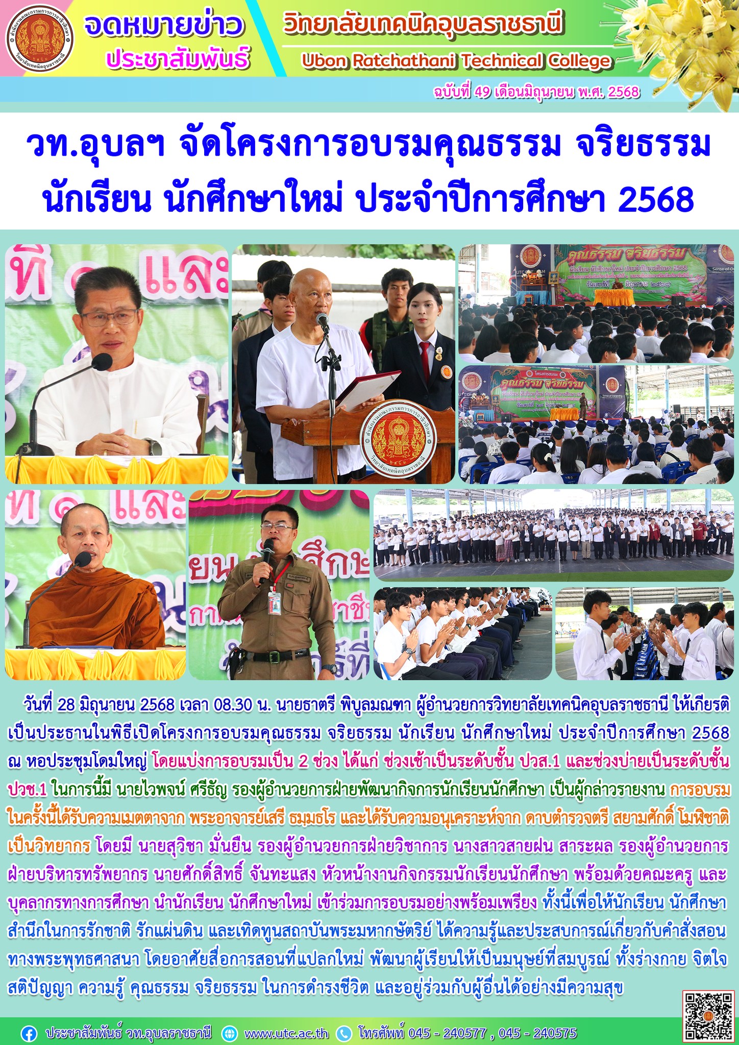 วท.อุบลฯ จัดโครงการอบรมคุณธรรม จริยธรรม นักเรียน นักศึกษาใหม่ ประจำปีการศึกษา 2568