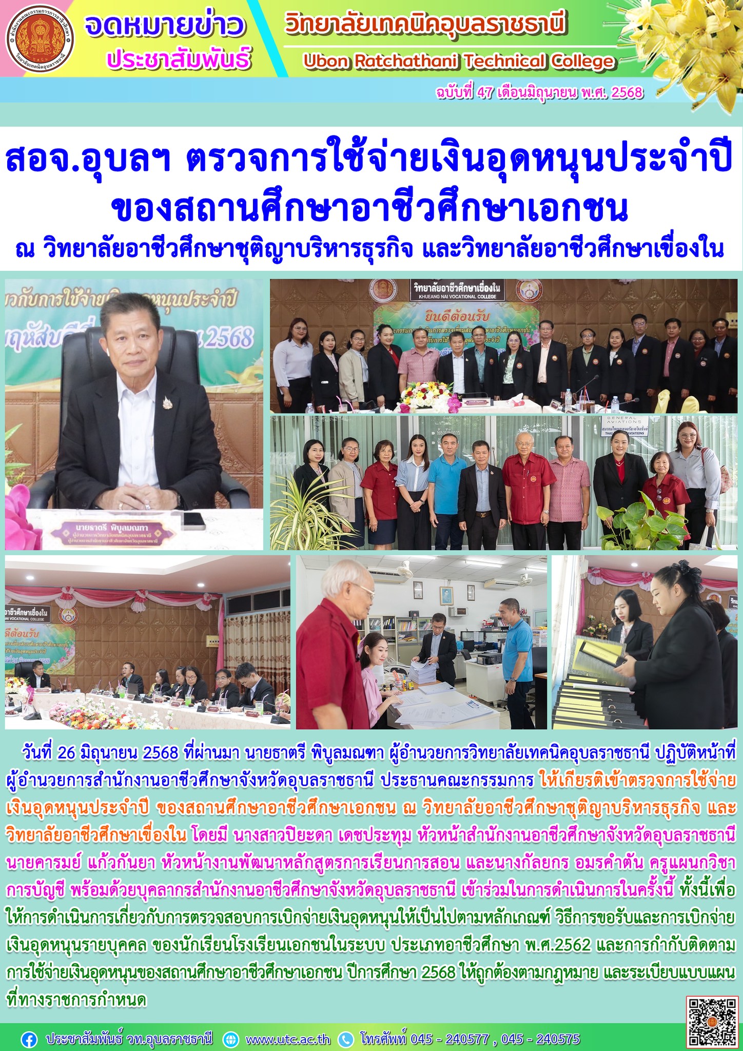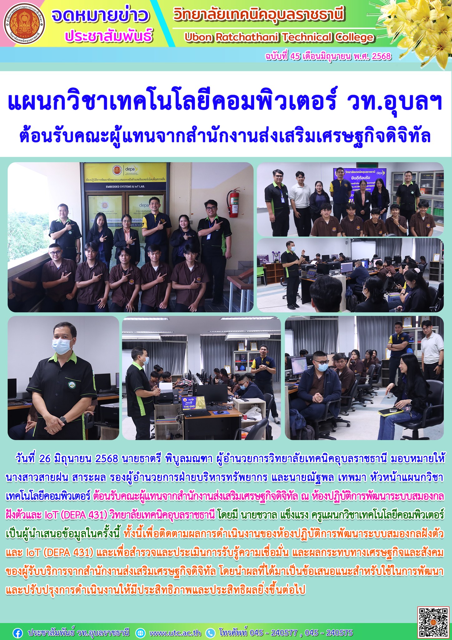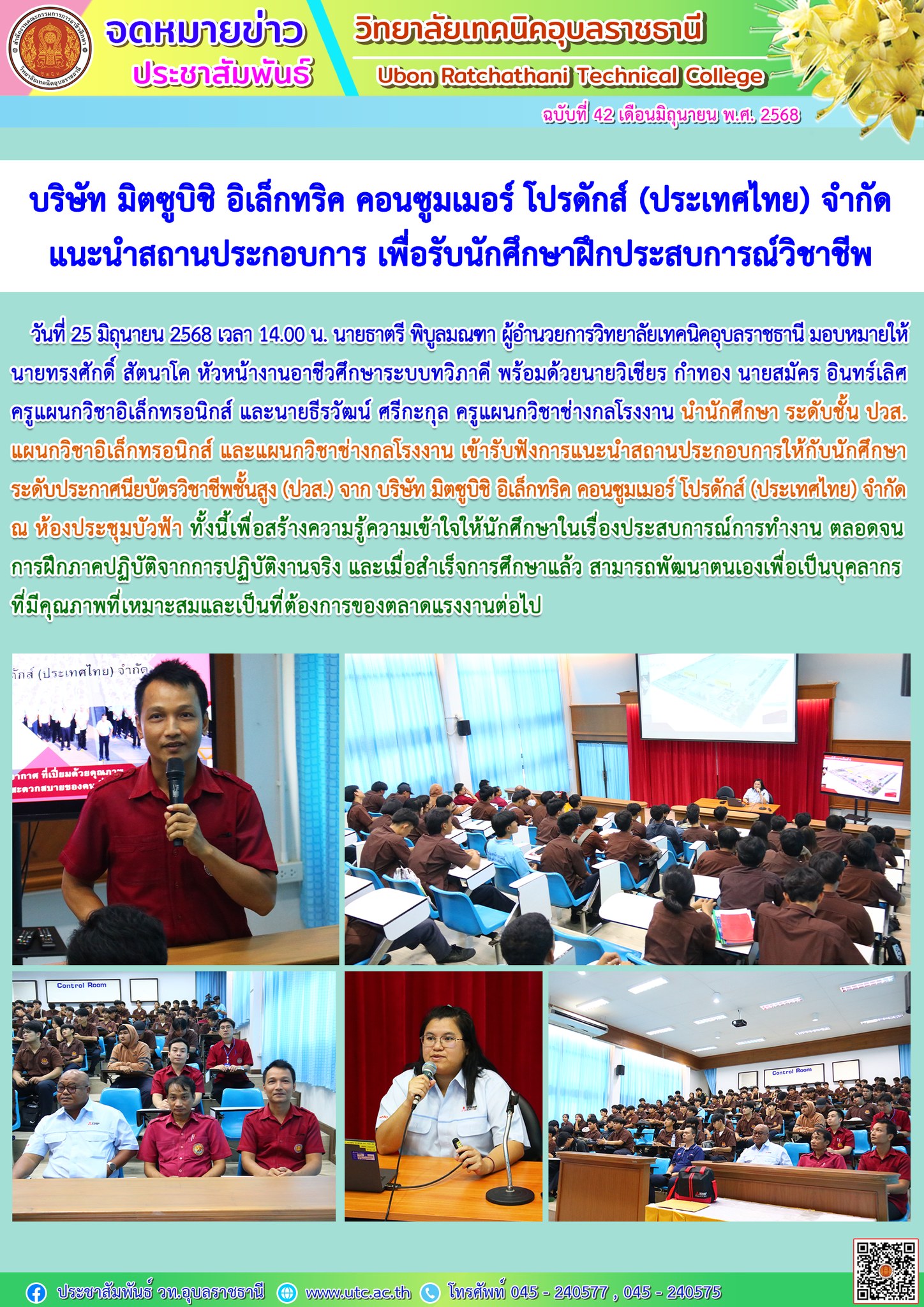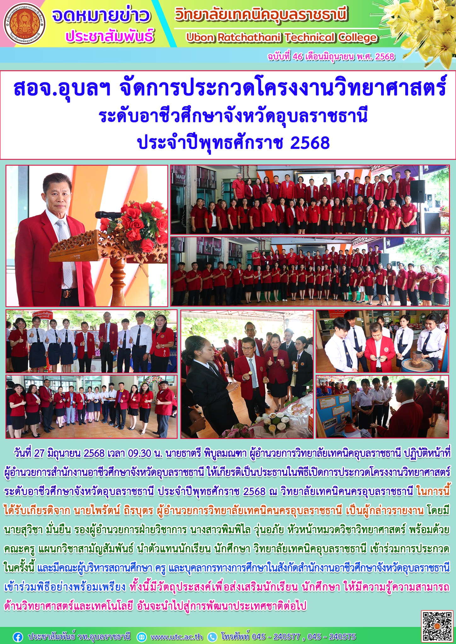 วันที่ 28 มิถุนายน 2568 เวลา 08.30 น. นายธาตรี พิบูลมณฑา ผู้อำนวยการวิทยาลัยเทคนิคอุบลราชธานี ให้เกียรติเป็นประธานในพิธีเปิดโครงการอบรมคุณธรรม จริยธรรม นักเรียน นักศึกษาใหม่ ประจำปีการศึกษา 2568 ณ หอประชุมโดมใหญ่ โดยแบ่ง (เพิ่มเติม…)