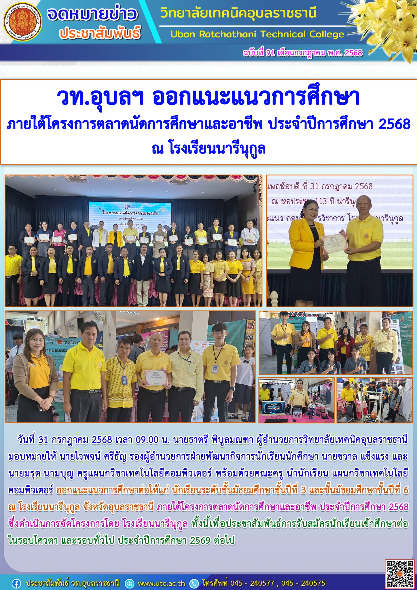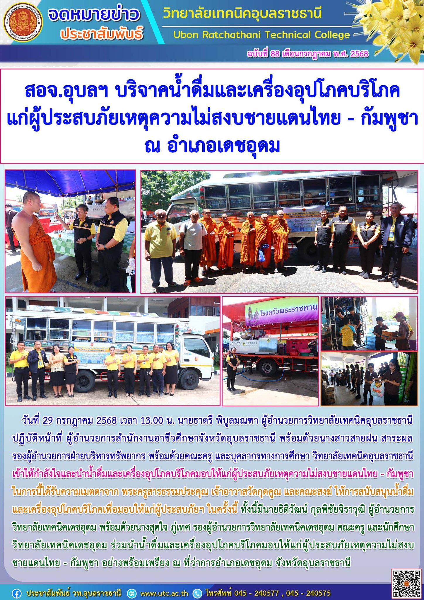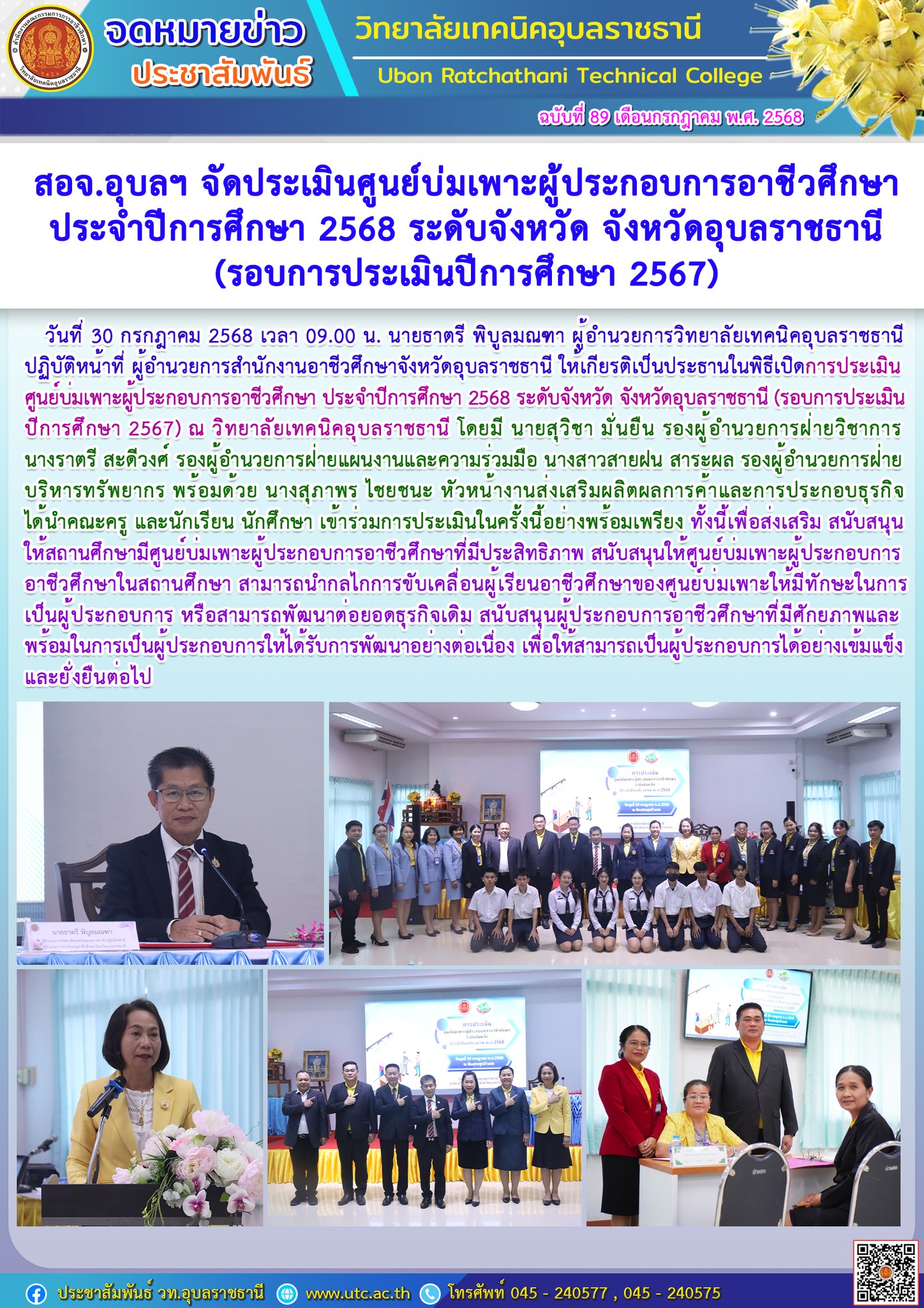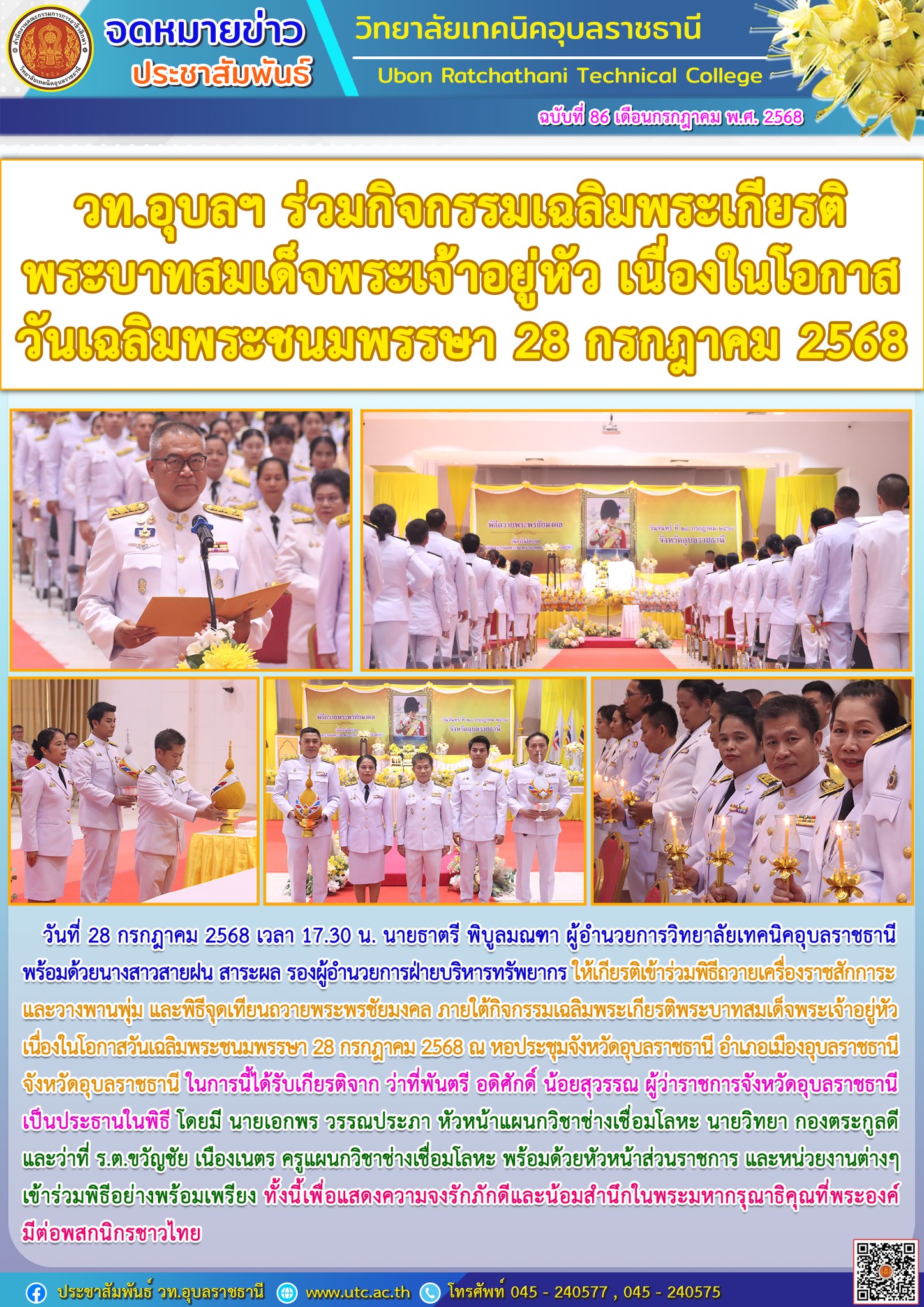 วันที่ 29 กรกฎาคม 2568 เวลา 09.00 น. นายธาตรี พิบูลมณฑา ผู้อำนวยการวิทยาลัยเทคนิคอุบลราชธานี มอบหมายให้ นายไวพจน์ ศรีธัญ (เพิ่มเติม…)