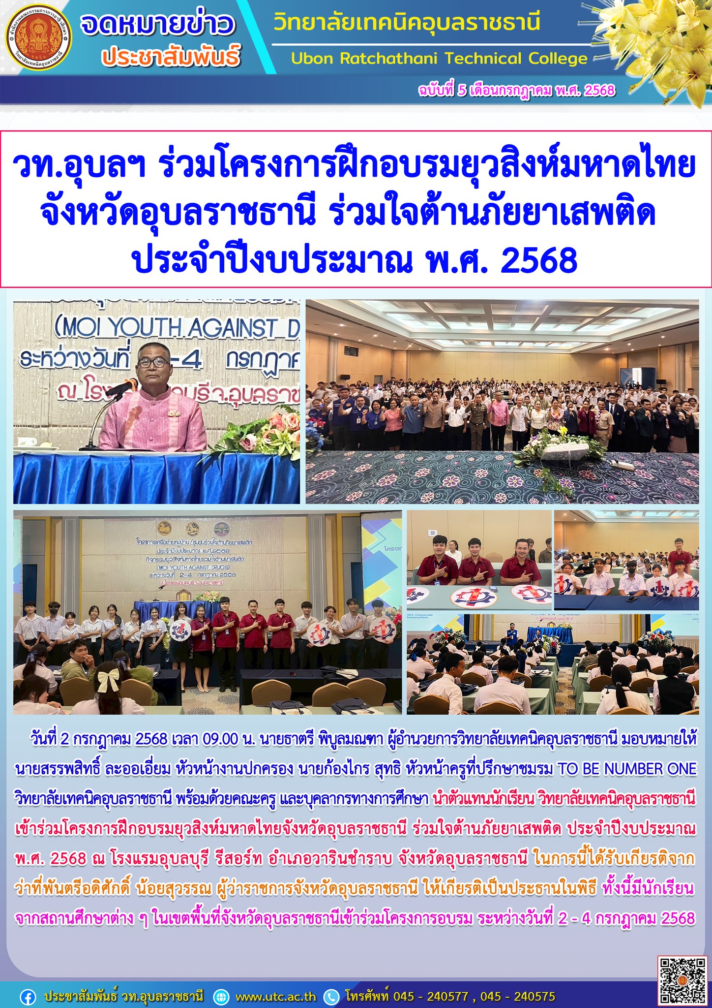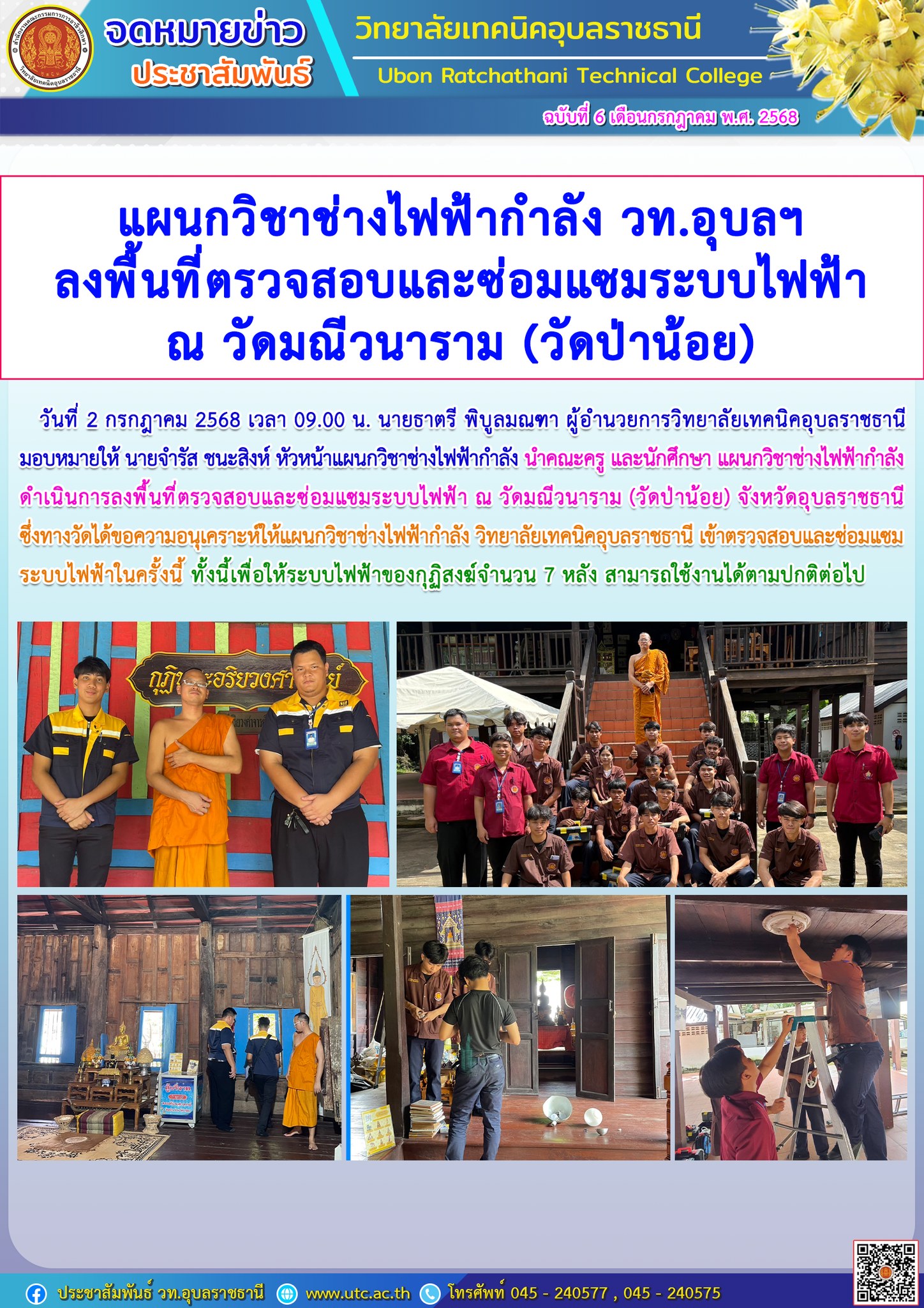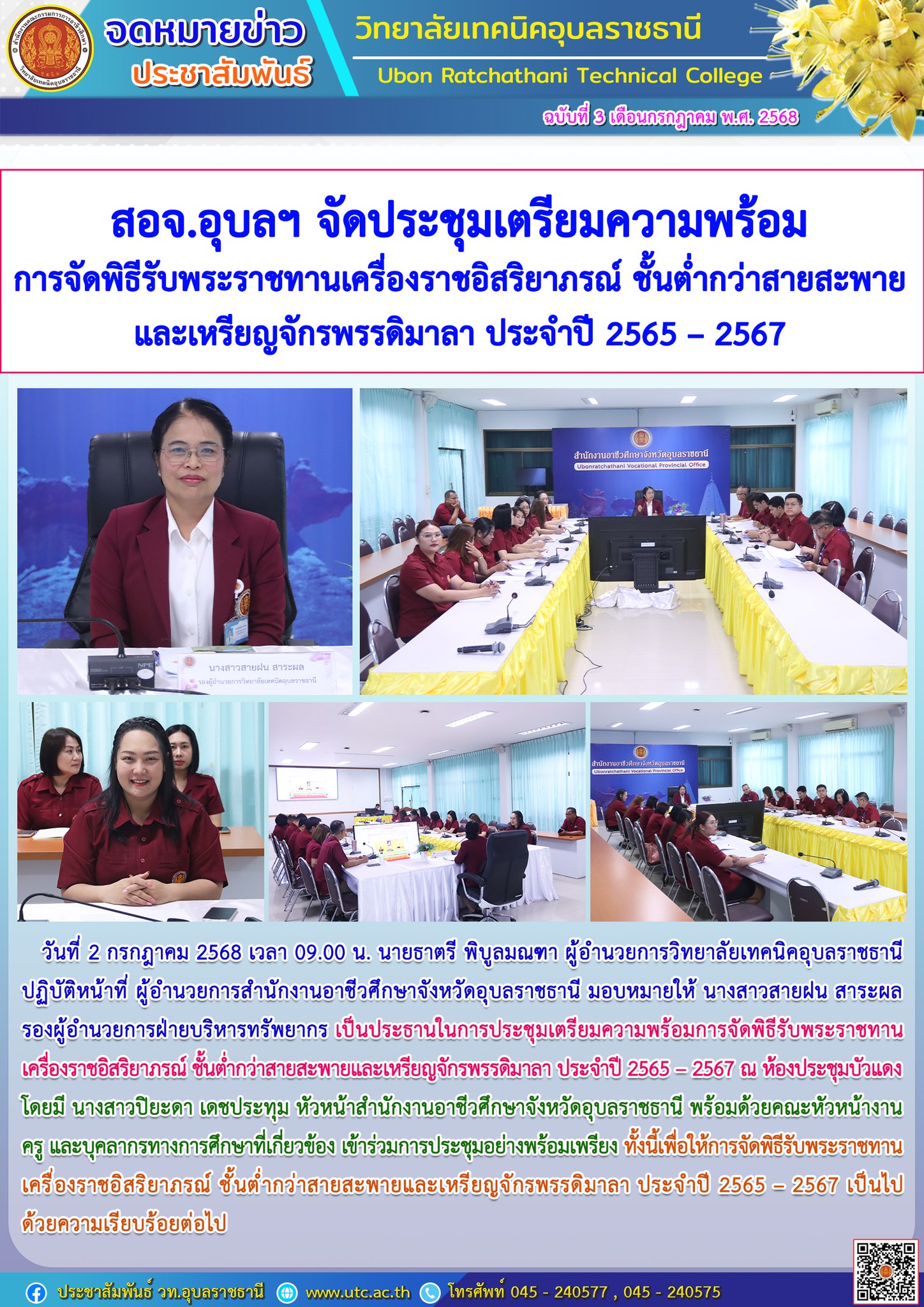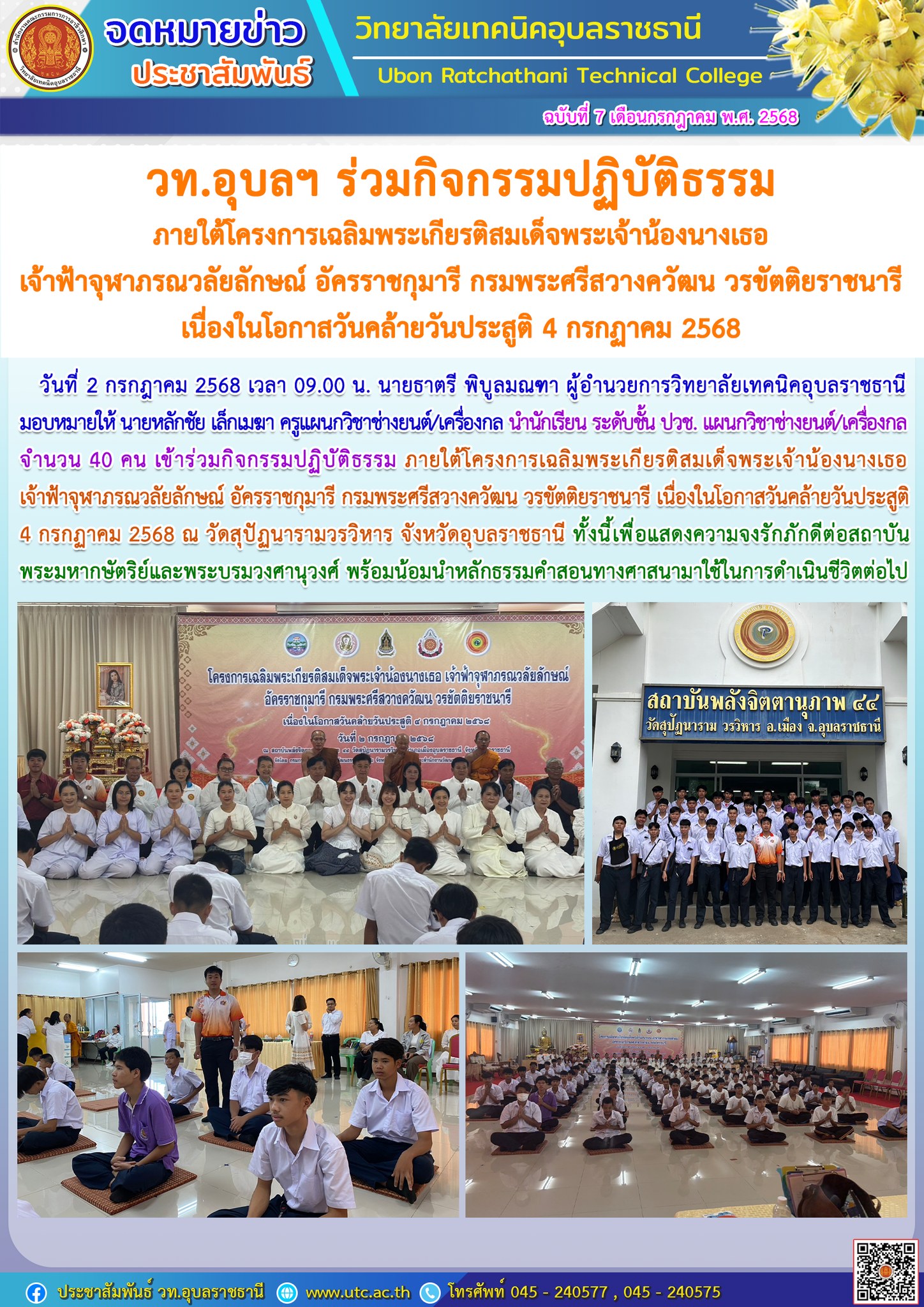 วท.อุบลฯ ร่วมกิจกรรมปฏิบัติธรรม ภายใต้โครงการเฉลิมพระเกียรติสมเด็จพระเจ้าน้องนางเธอ เจ้าฟ้าจุฬาภรณวลัยลักษณ์ อัครราชกุมารี กรมพระศรีสวางควัฒน วรขัตติยราชนารี เนื่องในโอกาสวันคล้ายวันประสูติ 4 กรกฏาคม 2568