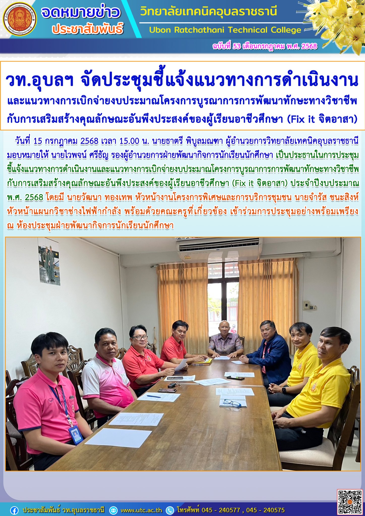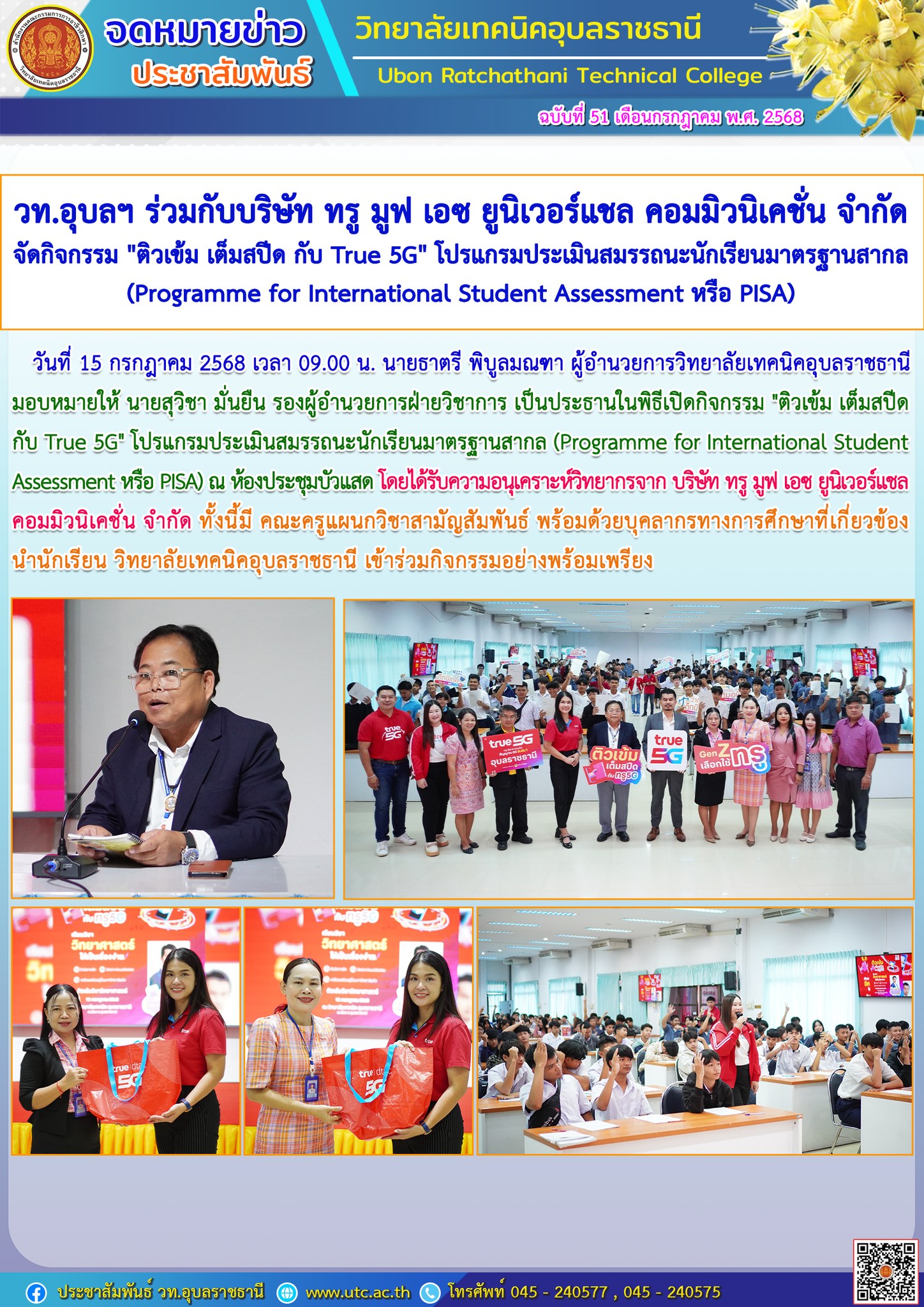 วันที่ 12 – 16 กรกฎาคม 2568 ที่ผ่านมา นายธาตรี พิบูลมณฑา ผู้อำนวยการวิทยาลัยเทคนิคอุบลราชธานี (เพิ่มเติม…)