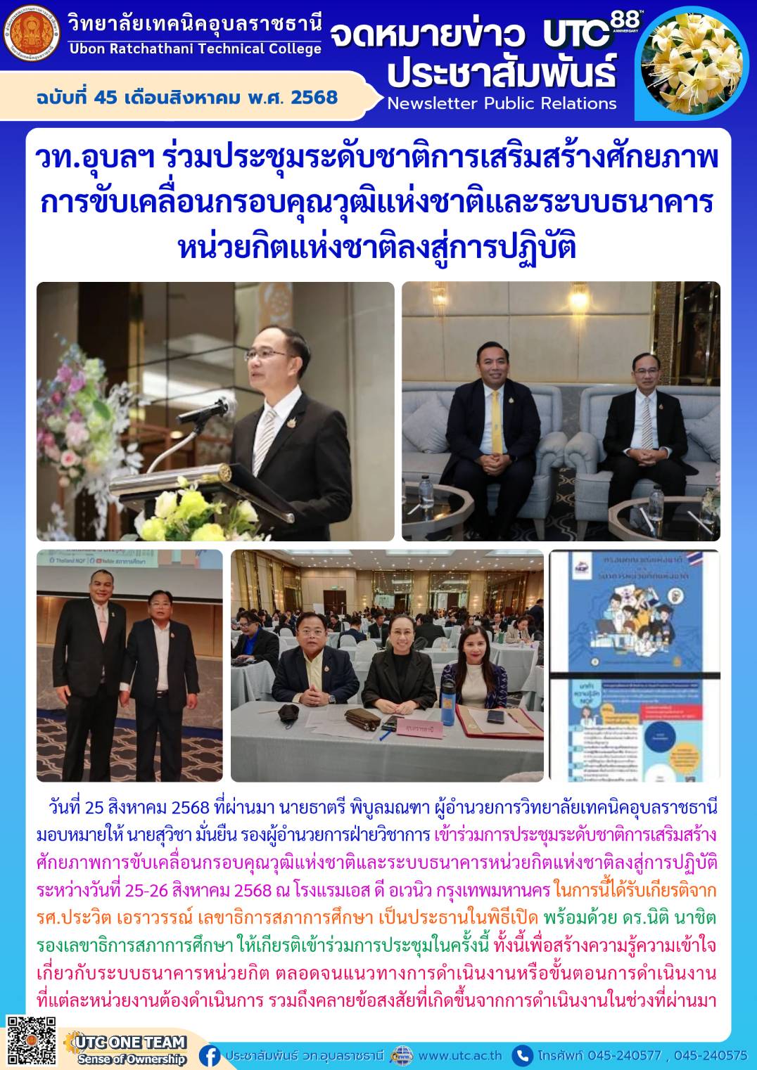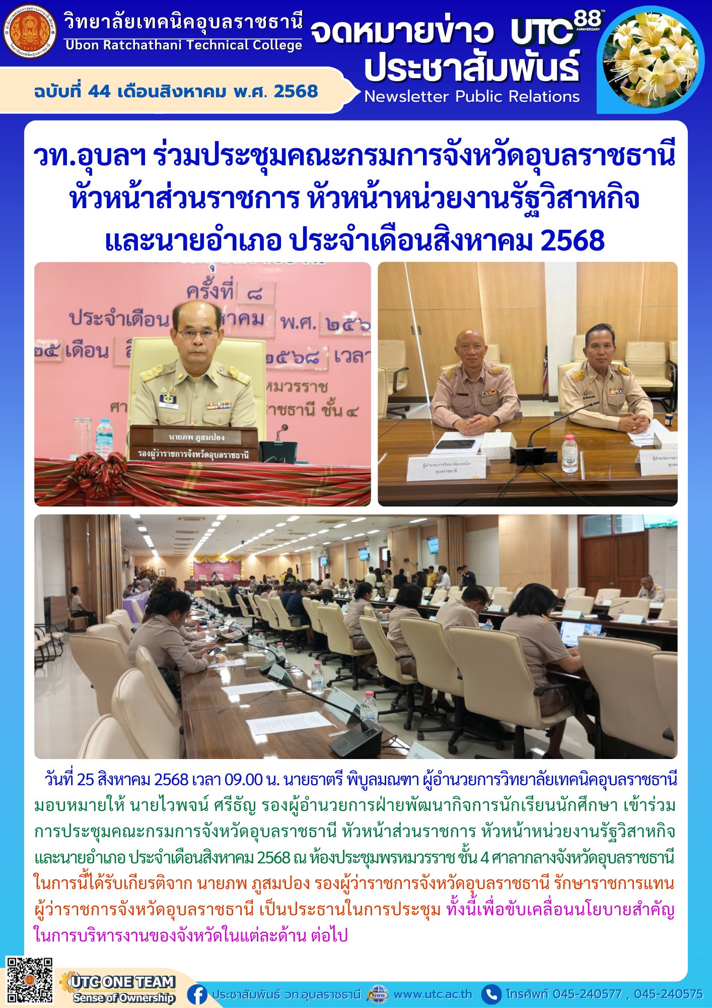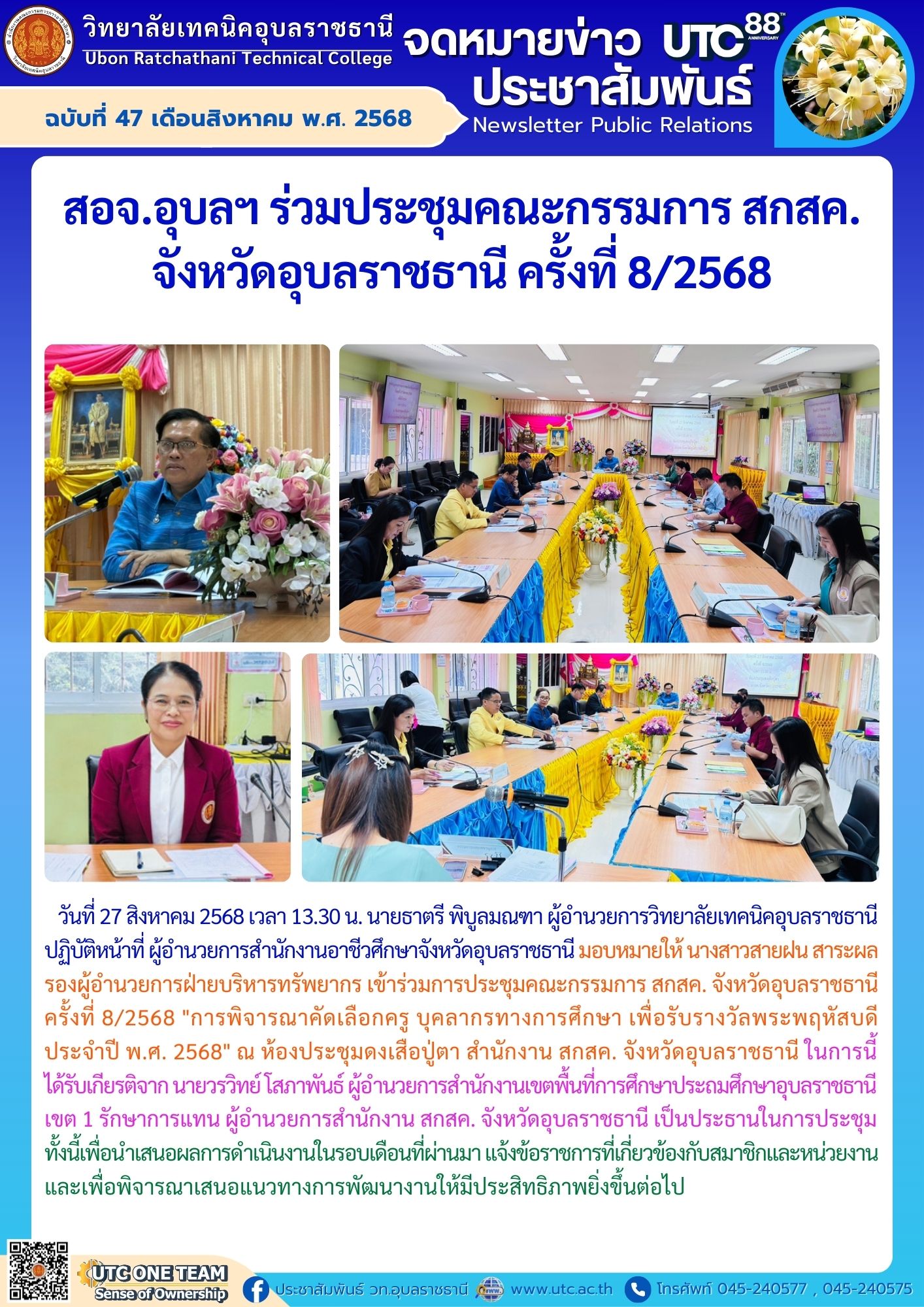 วันที่ 25 สิงหาคม 2568 ที่ผ่านมา นายธาตรี พิบูลมณฑา ผู้อำนวยการวิทยาลัยเทคนิคอุบลราชธานี มอบหมายให้ นายสุวิชา มั่นยืน รองผู้อำนวยการฝ่ายวิชาการ เข้าร่วมการประชุม (เพิ่มเติม…)