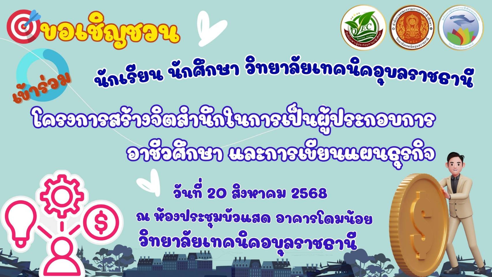 วันที่ 8 สิงหาคม 2568 เวลา 14.00 น. นายสุรพล สายพันธ์ ประธานกรรมการวิทยาลัยเทคนิคอุบลราชธานี ให้เกียรติเป็นประธานในการประชุมคณะกรรมการวิทยาลัยเทคนิคอุบลราชธานี ครั้งที่ 2/2568 ณ ห้องประชุม (เพิ่มเติม…)