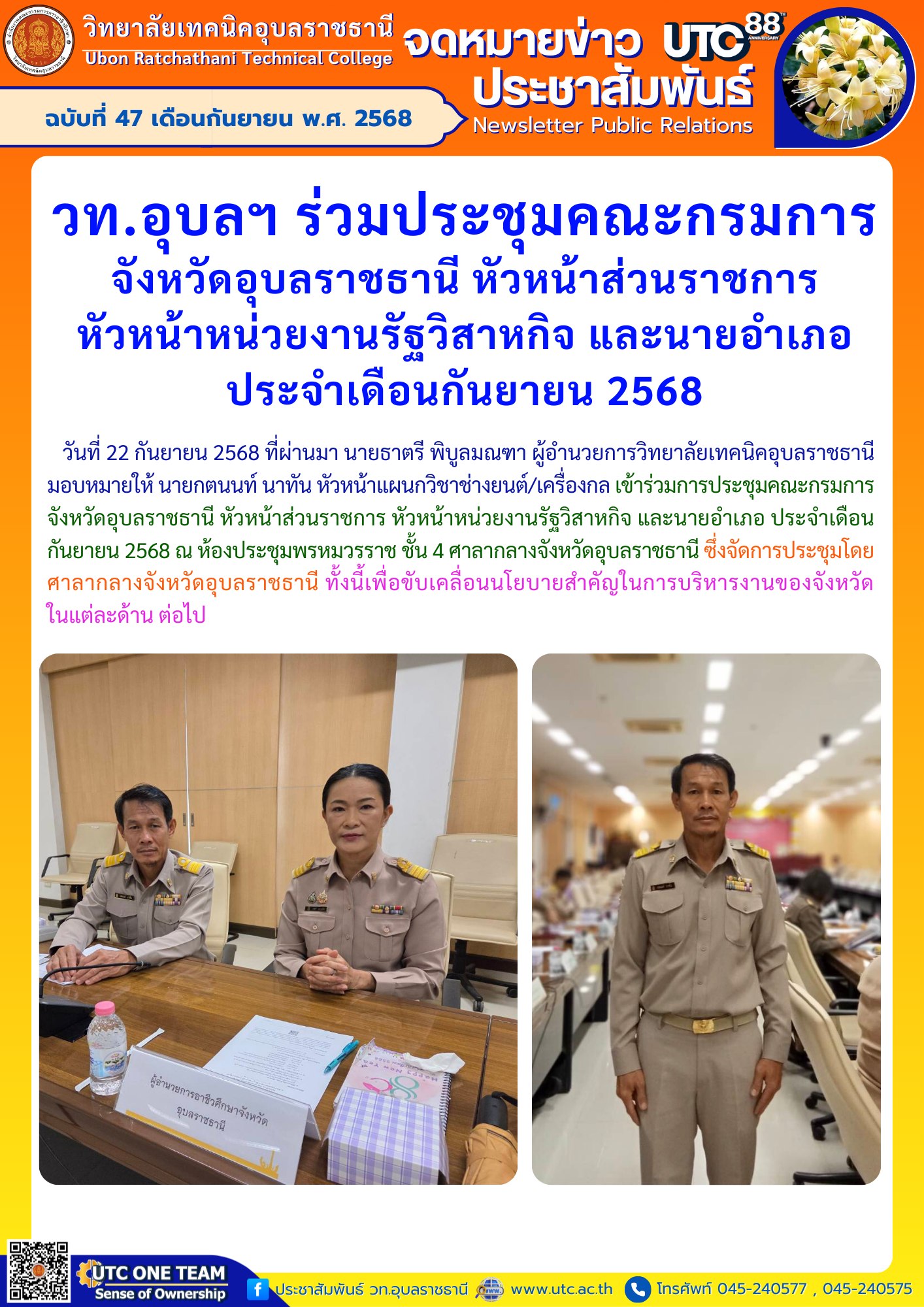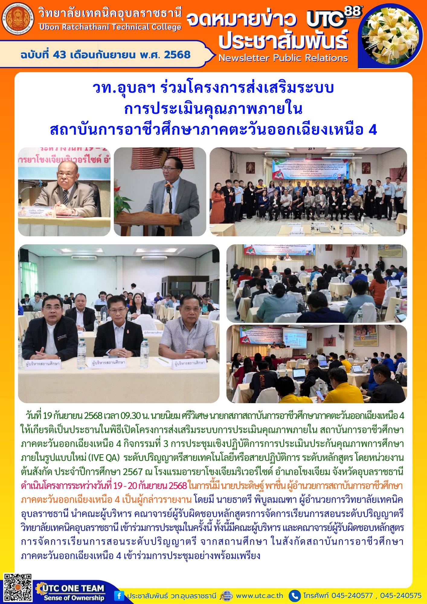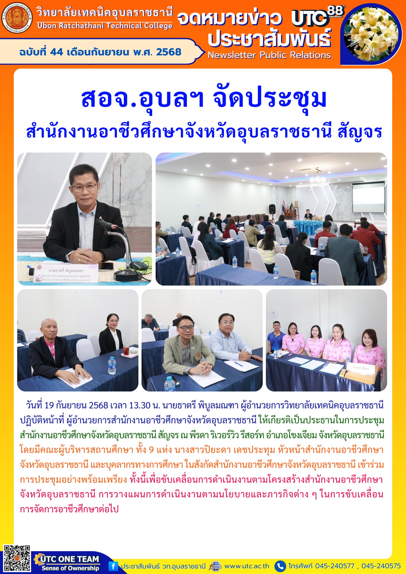 วันที่ 24 กันยายน 2568 เวลา 09.00 น. นายธาตรี พิบูลมณฑา ผู้อำนวยการวิทยาลัยเทคนิคอุบลราชธานี ให้เกียรติกล่าวแสดงความยินดี กับข้าราชการครูทั้ง 3 คน ในโอกาสที่ได้รับคำสั่งแต่งตั้งให้เลื่อนวิทยฐานะในจัดกิจกรรม ว9 เปรมปรีดิ์ ร่วมยินดีวิทยฐานะ ณ ห้องประชุมบัวแสด โดยมีคณะครูที่ได้เลื่อนเป็นวิทยฐานะครูชำนาญการพิเศษ จำนวน 3 คน โดยภายในงานมีกิจกรรมเสวนาวิชาการ และการเตรียมความพร้อมเพื่อขอมีหรือขอเลื่อนวิทยฐานะ โดยมีนายบัณฑิตย์ เหลาทอง หัวหน้าศูนย์วิทยฐานะและพัฒนาครู บุคลากร วิทยาลัยเทคนิคอุบลราชธานี พร้อมด้วยคณะครู วิทยาลัยเทคนิคอุบลราชธานีร่วมแสดงความยินดีอย่างพร้อมเพรียง ทั้งนี้เพื่อเป็นการสร้างขวัญและให้กำลังใจกับคณะครู ในการพัฒนาตนเองให้มีวิทยฐานะที่สูงขึ้นต่อไป