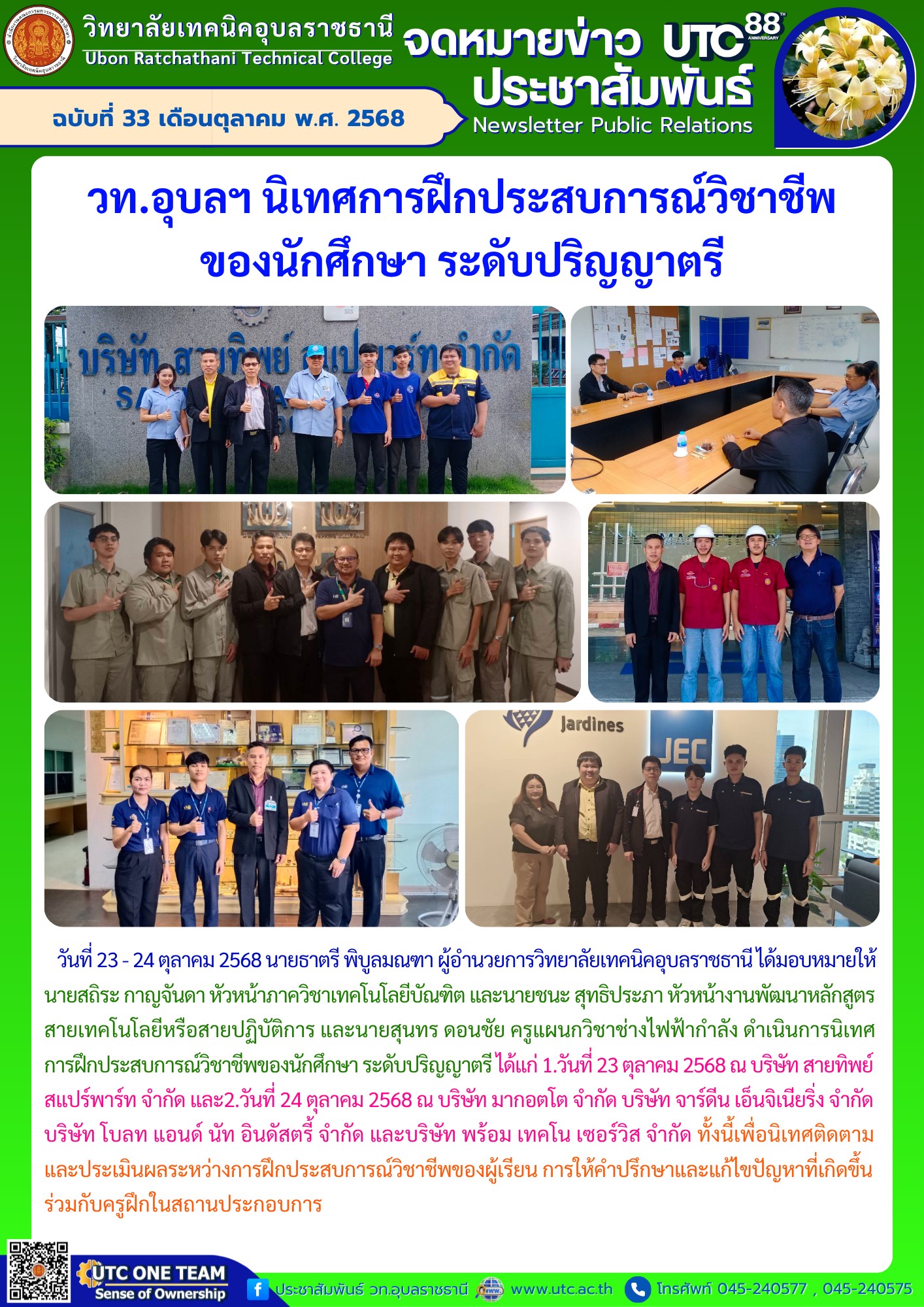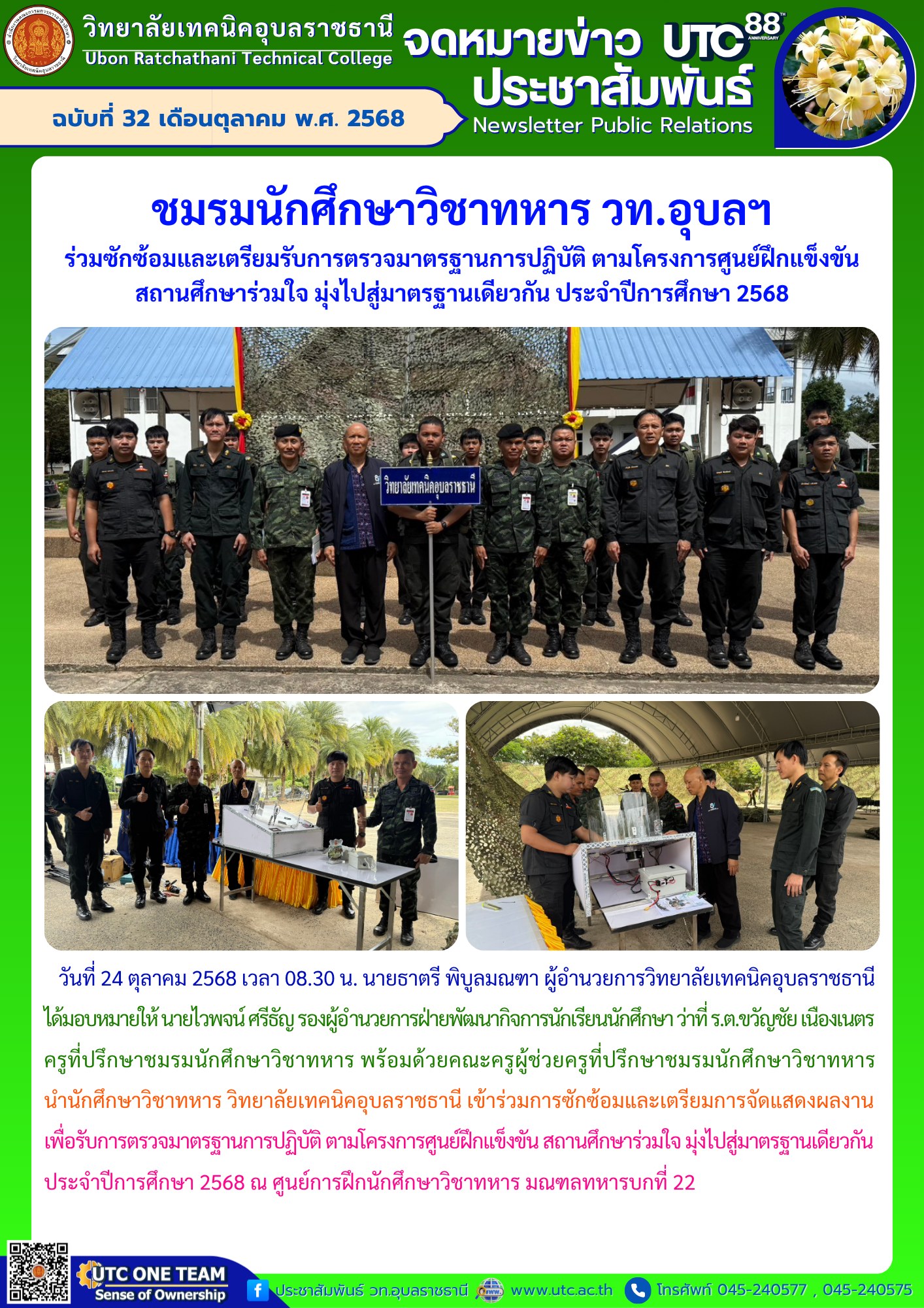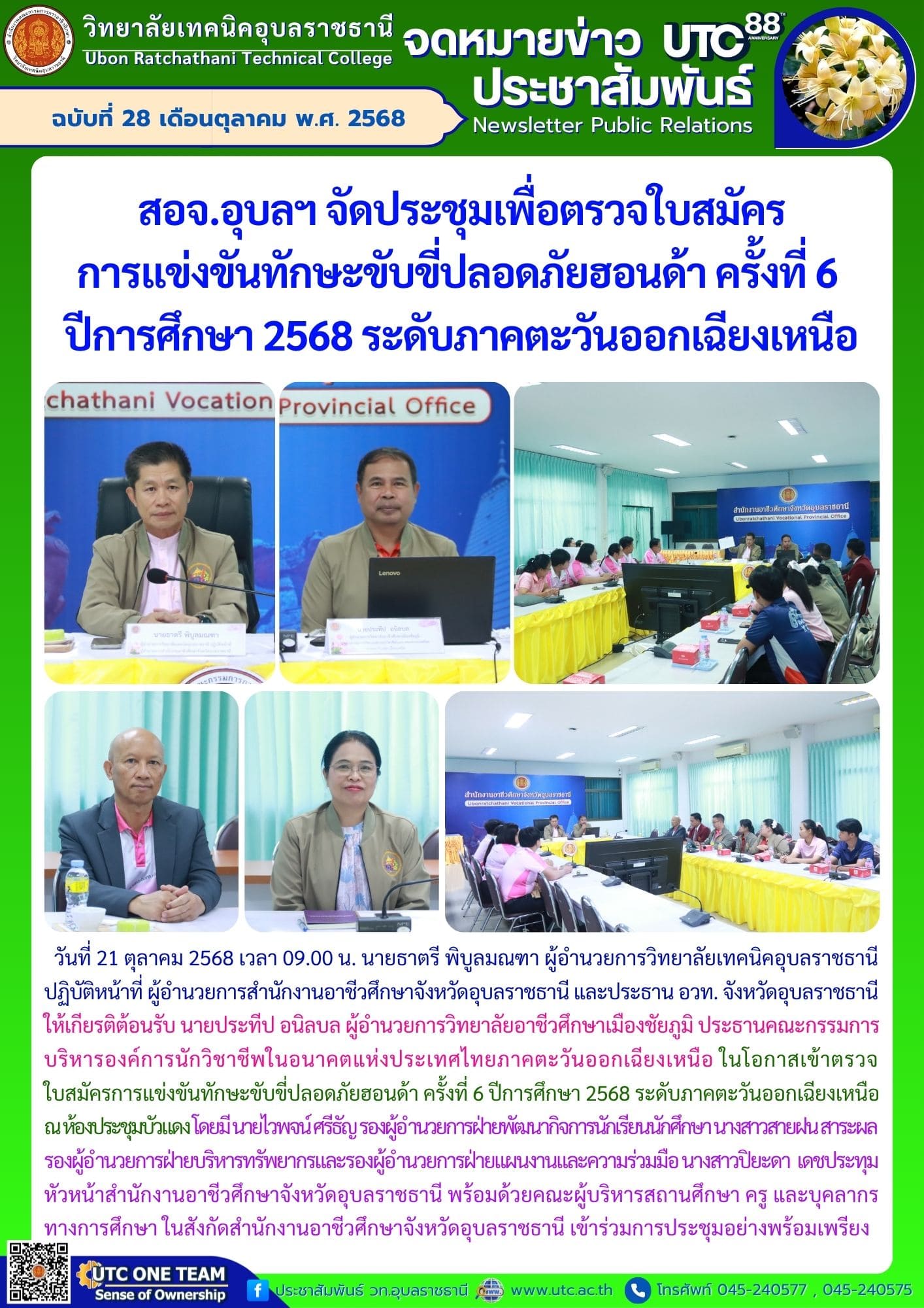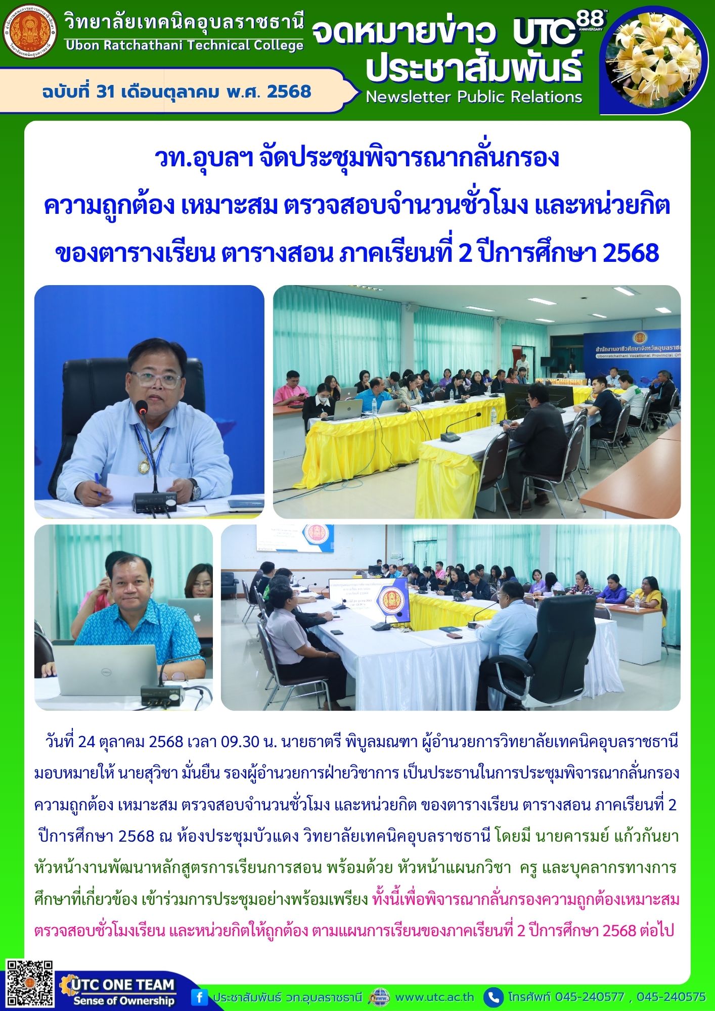 วันที่ 27 ตุลาคม 2568 เวลา 10.00 น. นายธาตรี พิบูลมณฑา ผู้อำนวยการวิทยาลัยเทคนิคอุบลราชธานี มอบหมายให้ นายสรรพสิทธิ์ (เพิ่มเติม…)