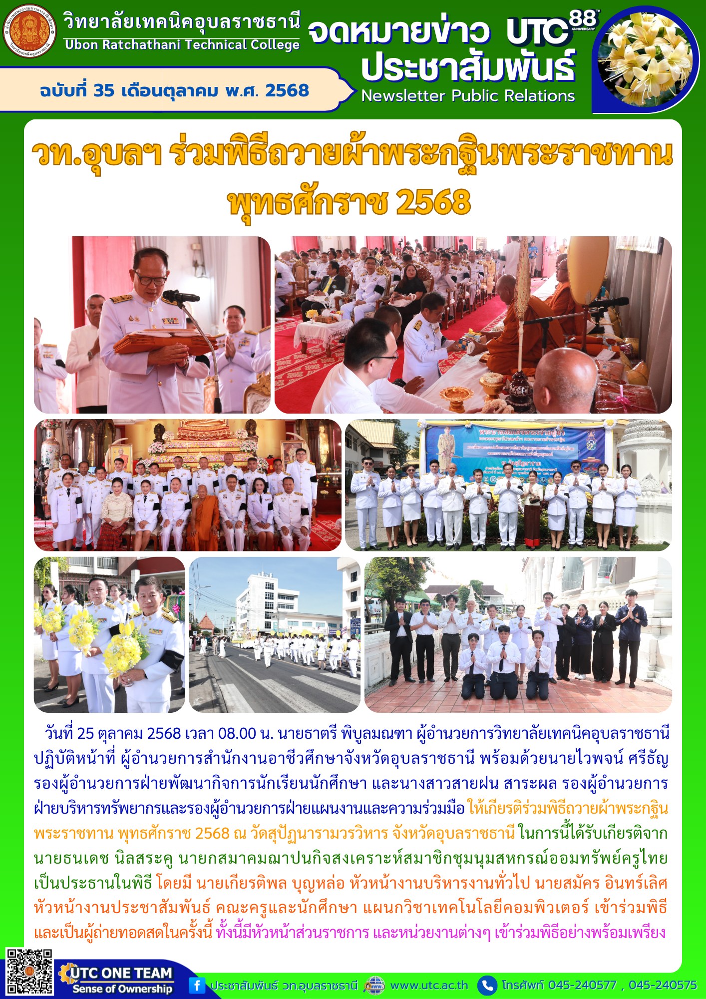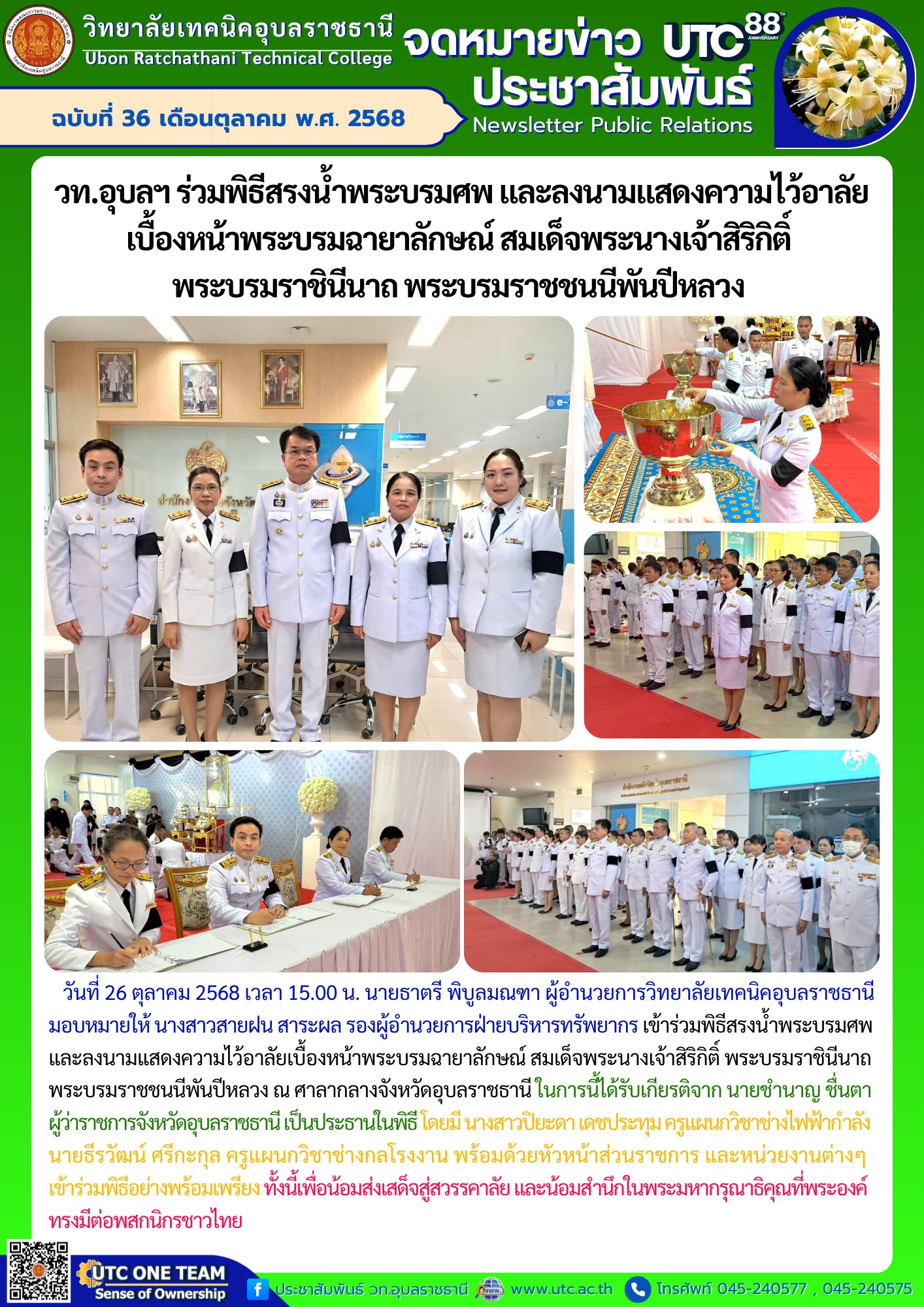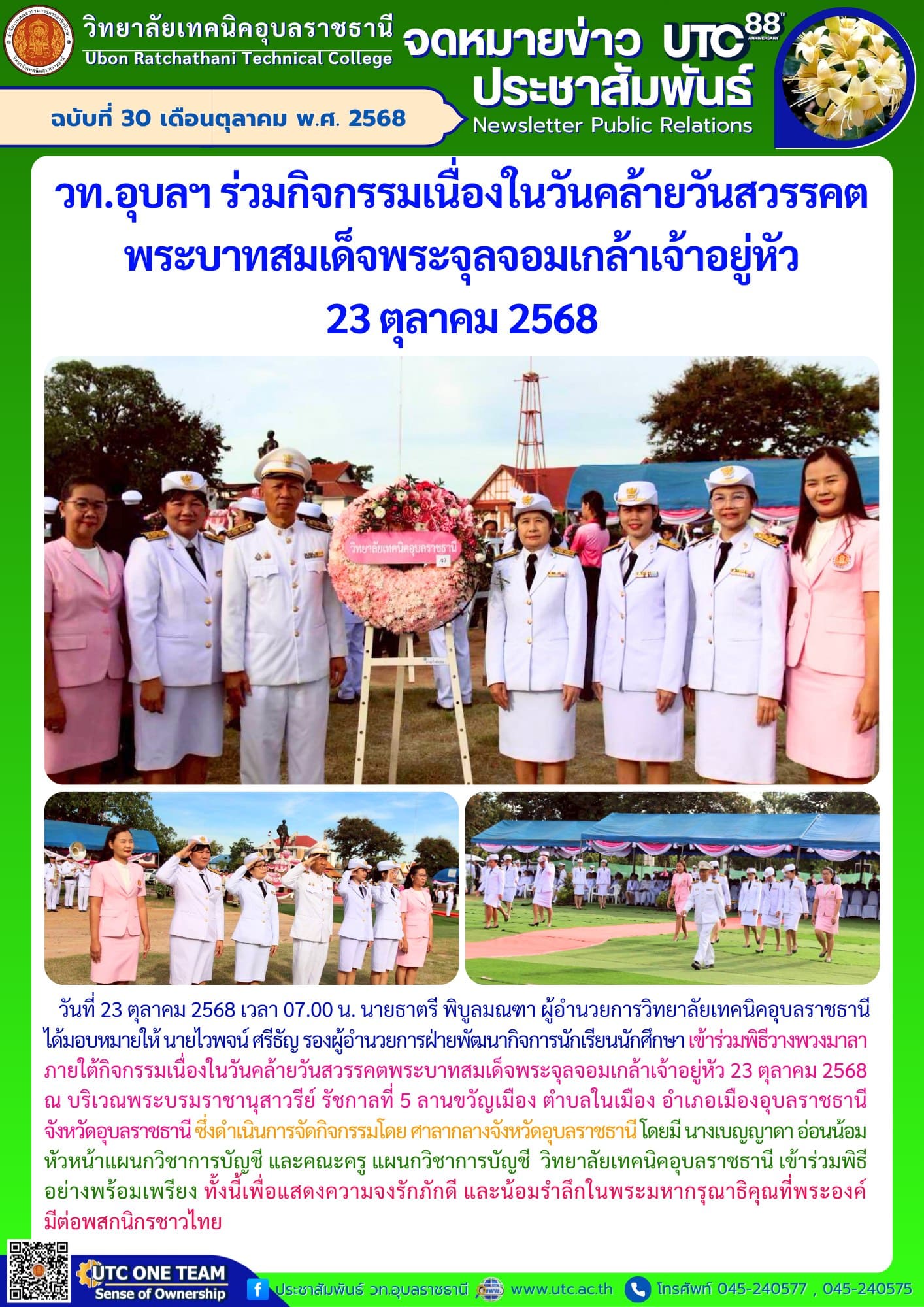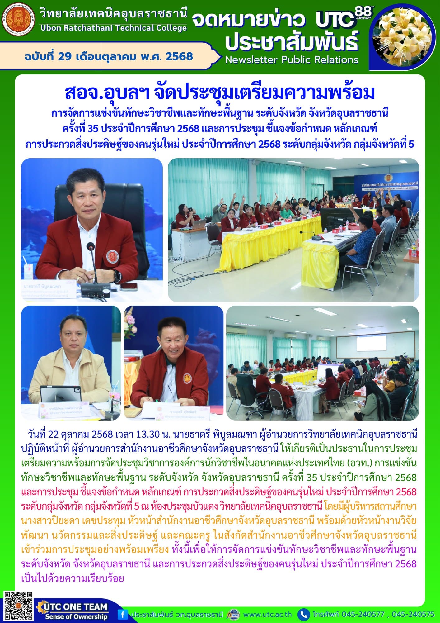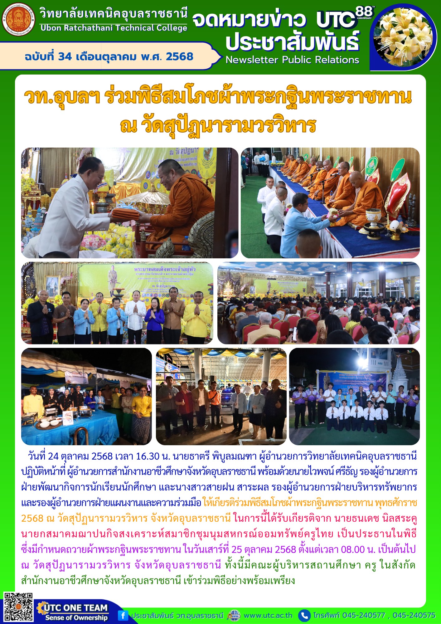 วันที่ 27 ตุลาคม 2568 เวลา 10.00 น. นายธาตรี พิบูลมณฑา ผู้อำนวยการวิทยาลัยเทคนิคอุบลราชธานี มอบหมายให้ นายสรรพสิทธิ์ (เพิ่มเติม…)
