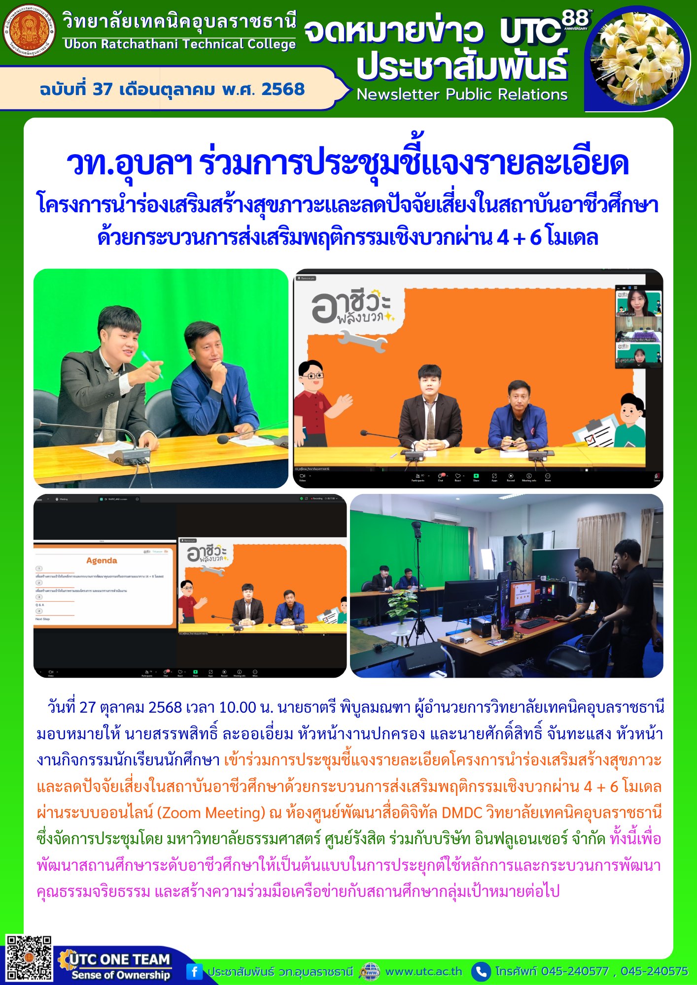 การประชุมชี้แจงรายละเอียดโครงการนำร่องเสริมสร้างสุขภาวะและลดปัจจัยเสี่ยงในสถาบันอาชีวศึกษาด้วยกระบวนการส่งเสริมพฤติกรรมเชิงบวกผ่าน 4 + 6 โมเดล
