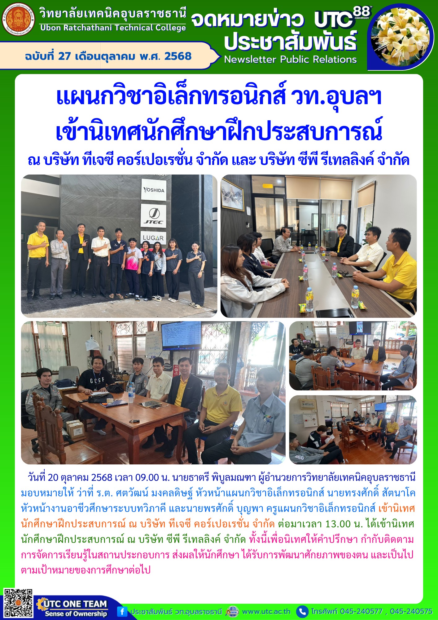 แผนกวิชาอิเล็กทรอนิกส์ เข้านิเทศนักศึกษาฝึกประสบการณ์ ณ บริษัท ทีเจซี คอร์เปอเรชั่น จำกัด และบริษัท ซีพี รีเทลลิงค์ จำกัด