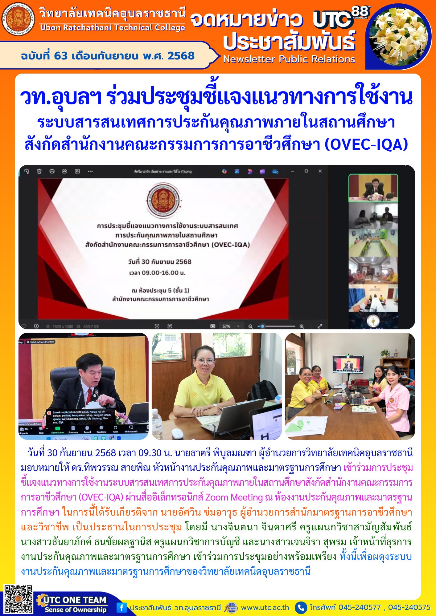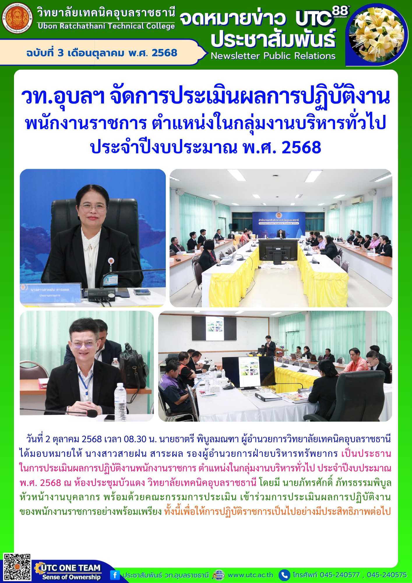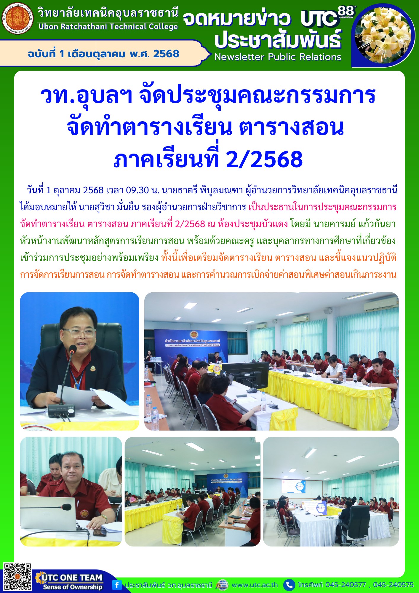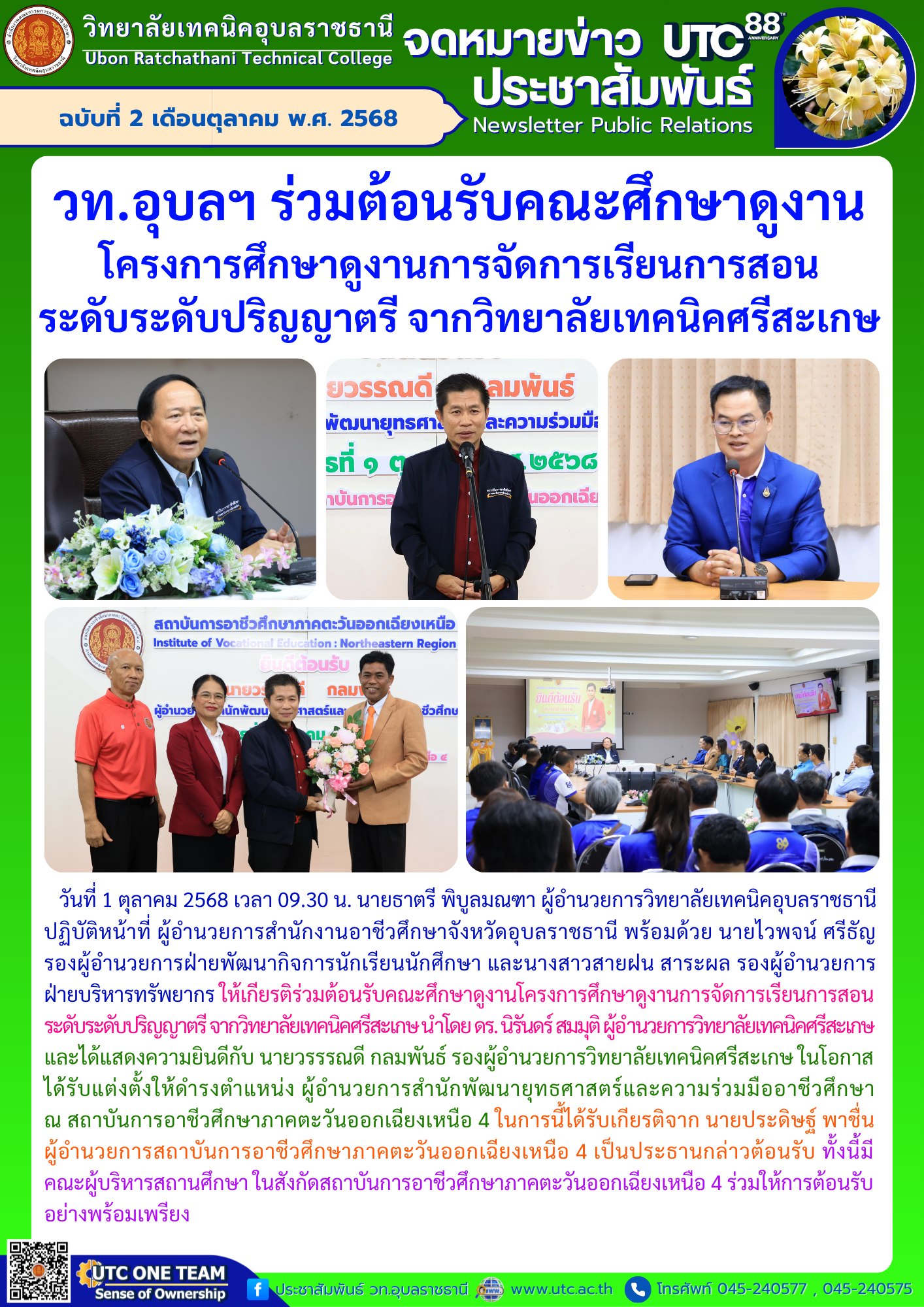 วันที่ 2 ตุลาคม 2568 เวลา 07.30 น. นายธาตรี พิบูลมณฑา ผู้อำนวยการวิทยาลัยเทคนิคอุบลราชธานี มอบหมายให้ นายไวพจน์ ศรีธัญ รองผู้อำนวยการฝ่ายพัฒนากิจการนักเรียน (เพิ่มเติม…)