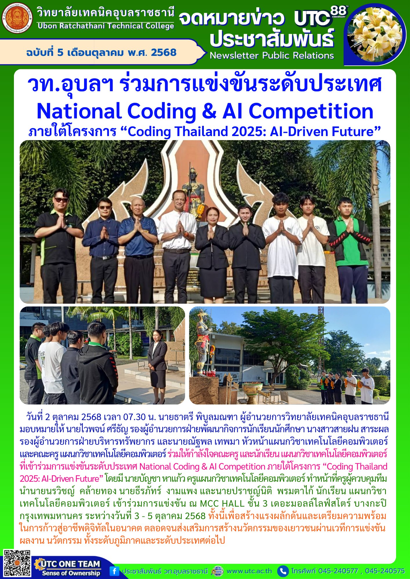 วท.อุบลฯ ร่วมการแข่งขันระดับประเทศ National Coding & AI Competition ภายใต้โครงการ “Coding Thailand 2025: AI-Driven Future”