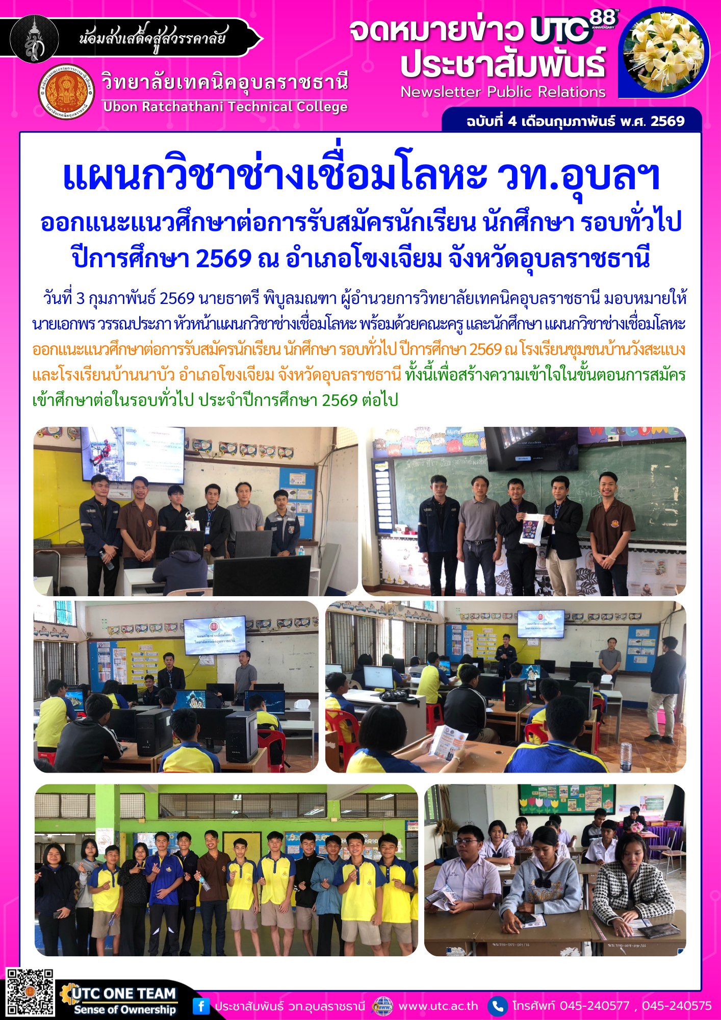 วันที่ 5 กุมภาพันธ์ 2569 เวลา 10.00 น. นายธาตรี พิบูลมณฑา ผู้อำนวยการวิทยาลัยเทคนิคอุบลราชธานี ปฏิบัติหน้าที่ ผู้อำนวยการสำนักงานอาชีวศึกษาจังหวัดอุบลราชธานี (เพิ่มเติม…)