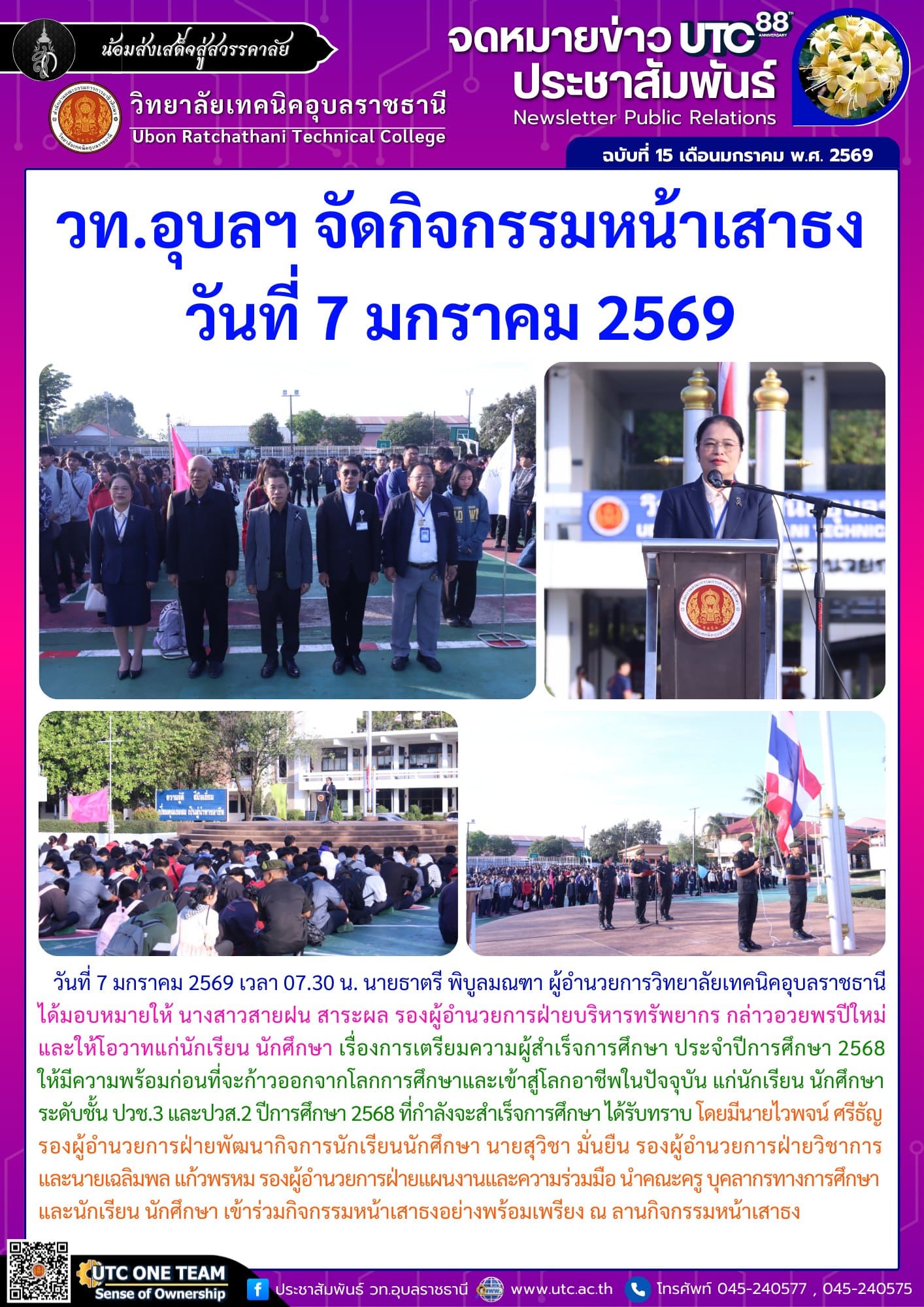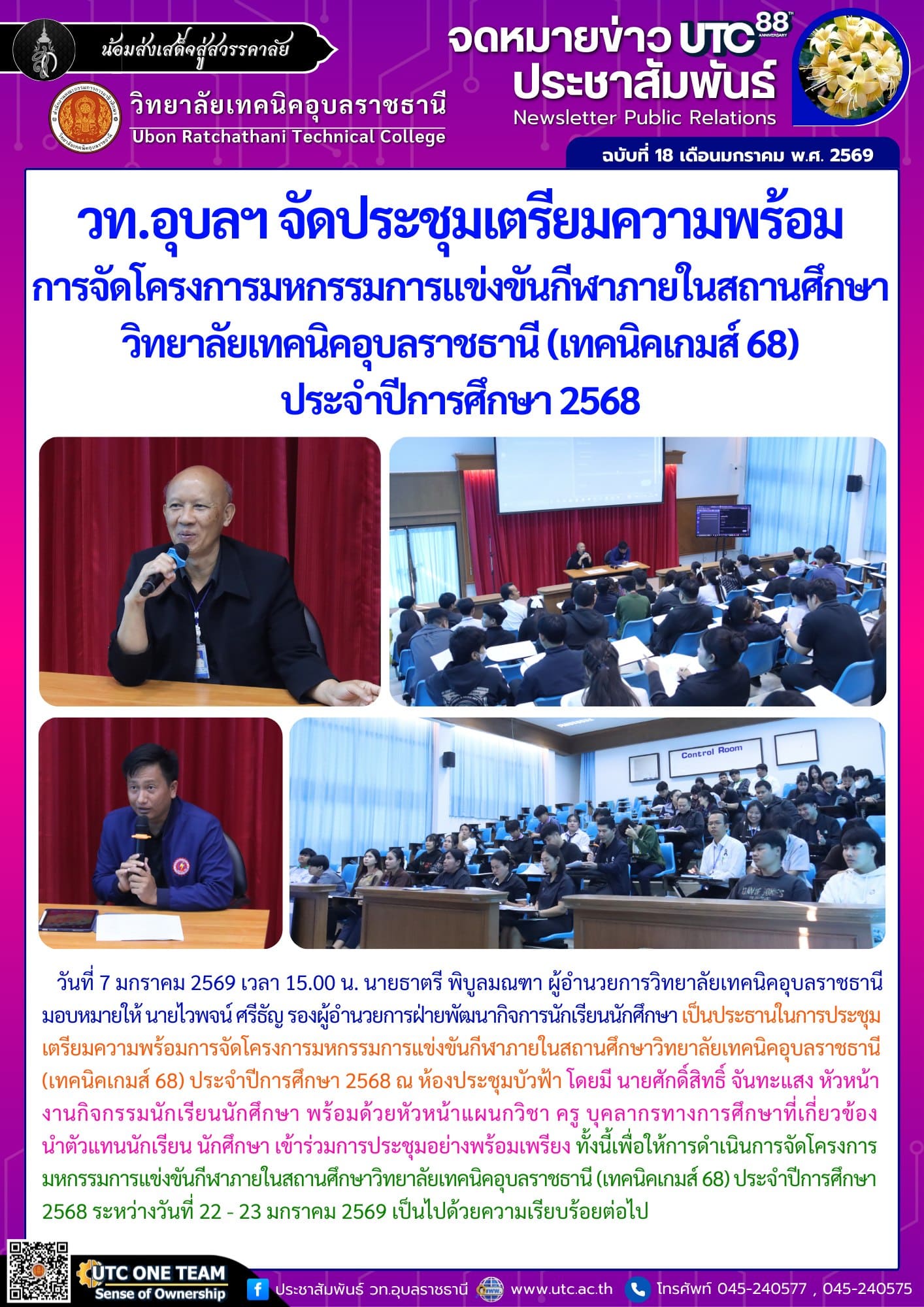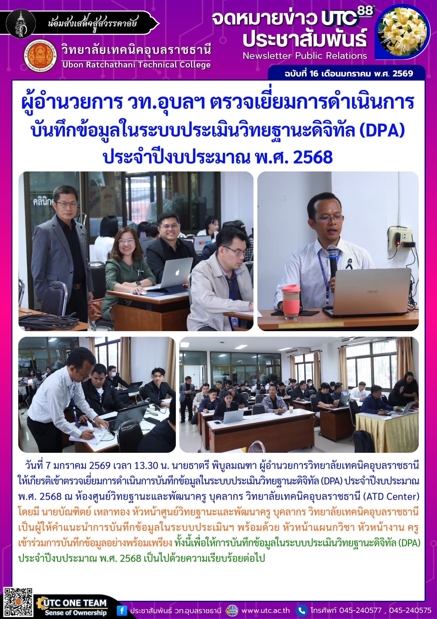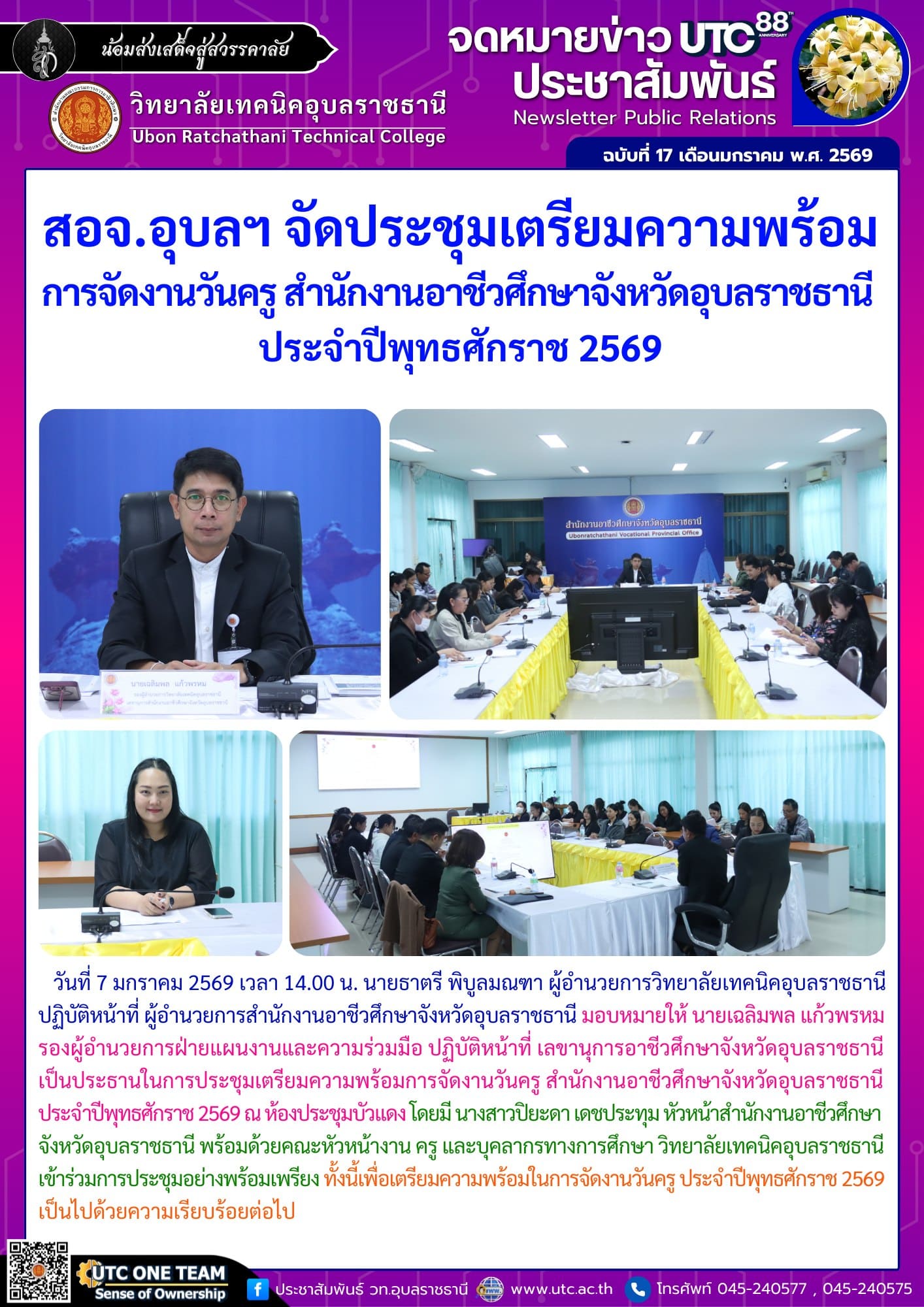 วันที่ 7 มกราคม 2569 เวลา 15.00 น. นายธาตรี พิบูลมณฑา ผู้อำนวยการวิทยาลัยเทคนิคอุบลราชธานี (เพิ่มเติม…)