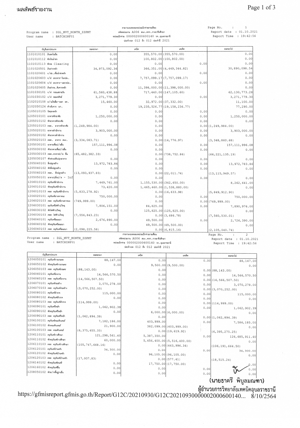 รายงานงบทดลองประจำเดือน กันยายน 2564