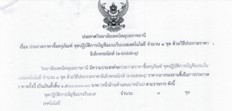 ประกวดราคาซื้อครุภัณฑ์ ชุดปฏิบัติการบัญชีแบบเว็บเบสเทคโนโลยี จำนวน 1 ชุด ด้วยวิธีประกวดราคาอิเล็กทรอนิกส์