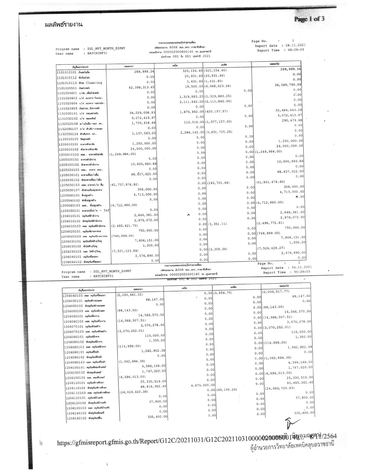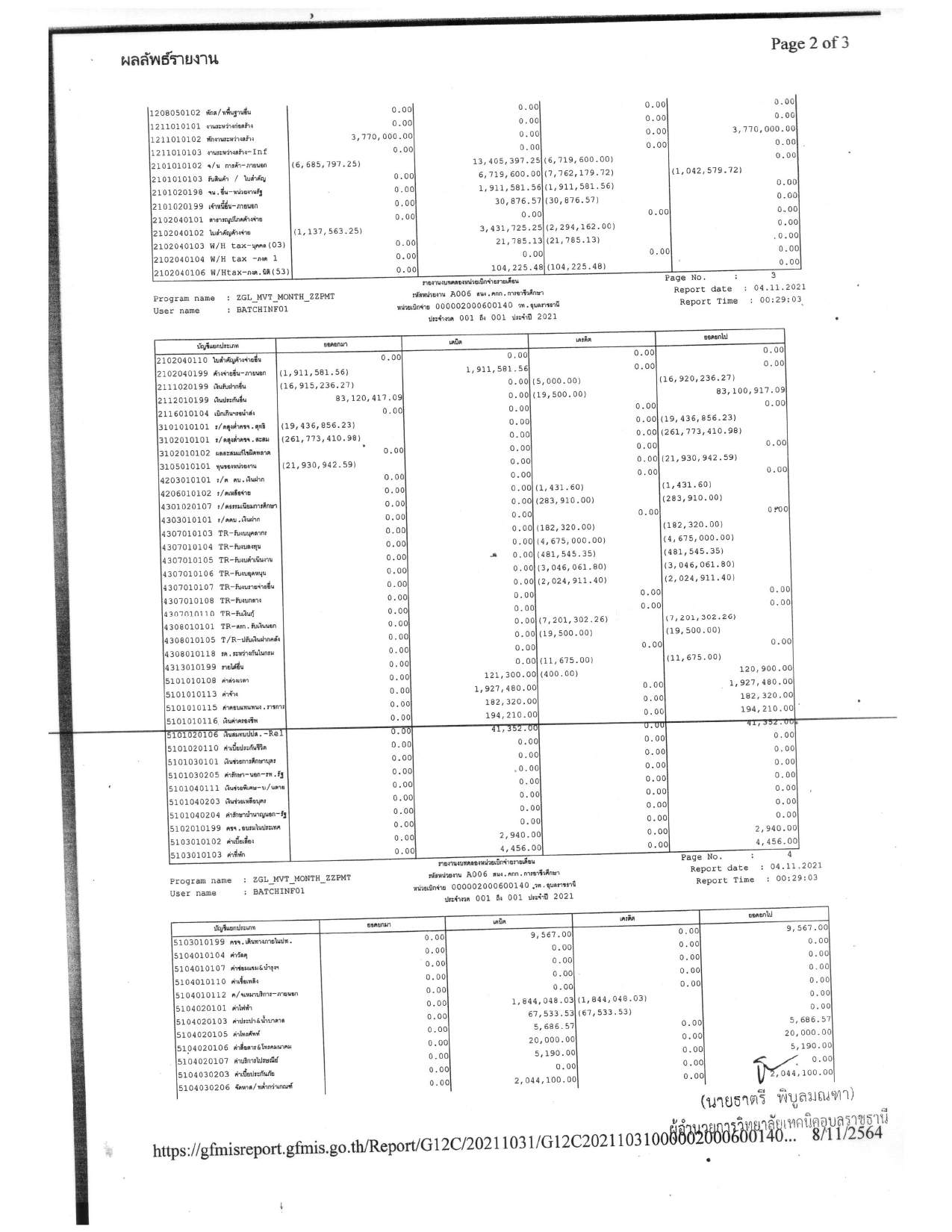 รายงานงบทดลองประจำเดือน ตุลาคม 2564