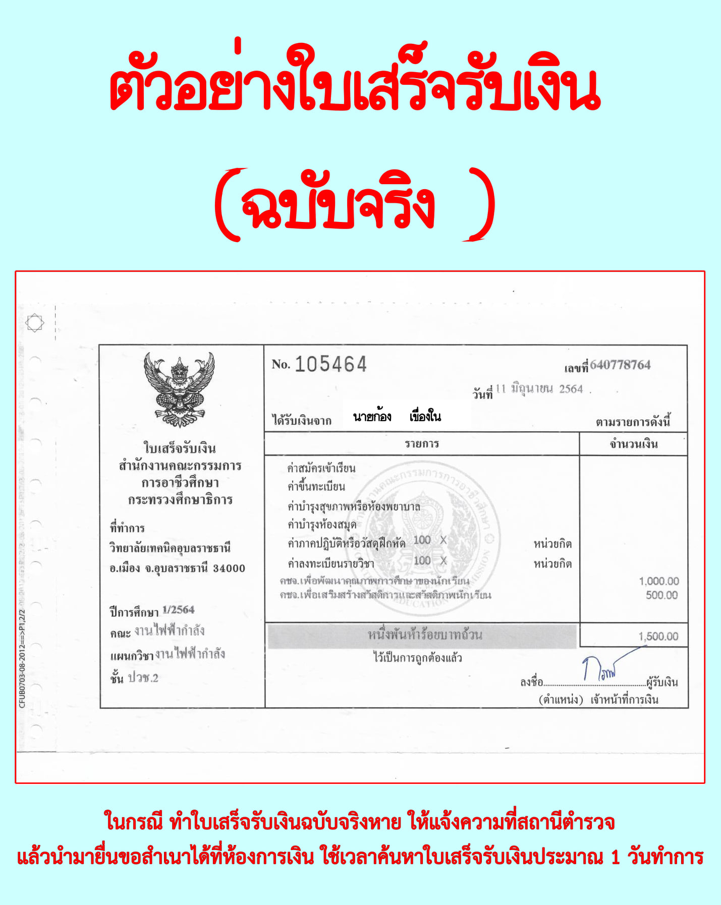 สามารถดาวน์โหลดเอกสาร ใบสำคัญรับเงิน ตามระดับชั้นปีที่เรียน ตามลิงก์ที่แนบมานี้ >>>คลิก<<<