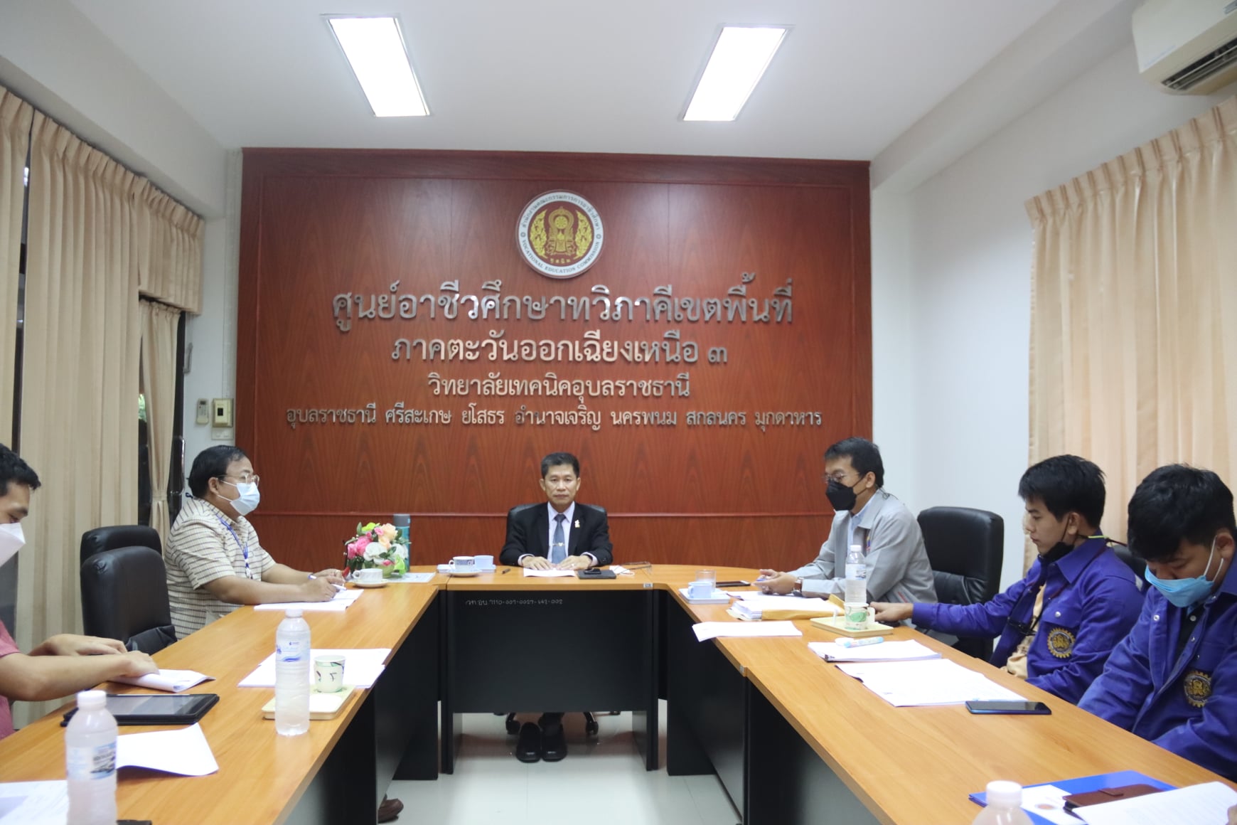 วันที่ ๒๖ พฤศจิกายน ๒๕๖๔ เวลา ๐๙.๐๐ น. นายธาตรี พิบูลมณฑาผู้อำนวยการวิทยาลัยเทคนิคอุบลราชธานี ให้เกียรติเป็นประธานการประชุม การเปิดสอนเพิ่มเติมสาขาวิชา ระดับปริญญาตรี ปีการศึกษา ๒๕๖๕ – ๒๕๖๖ หลักสูตรเทคโนโลยีบัณฑิต (ต่อเนื่อง) สายเทคโนโลยีหรือสายปฏิบัติการ โดยมี นายชุมสันติ แสนทวีสุข ผู้อำนวยการอาชีวศึกษาบัณฑิต สถาบันการอาชีวศึกษาภาคตะวันออกเฉียงเหนือ ๔ นายสุวิชา มั่นยืน รองผู้อำนวยการฝ่ายวิชาการ หัวหน้าแผนกวิชาช่างกลโรงงาน หัวหน้าแผนกวิชาช่างเชื่อมโลหะ หัวหน้าแผนกวิชาอิเล็กทรอนิกส์ และหัวหน้าแผนกวิชาโยธา เข้าร่วมประชุมอย่างพร้อมเพรียง ณ ห้องประชุมศูนย์อาชีวศึกษาทวิภาคีเขตพื้นที่ ภาคตะวันออกเฉียงเหนือ ๓ วิทยาลัยเทคนิคอุบลราชธานี