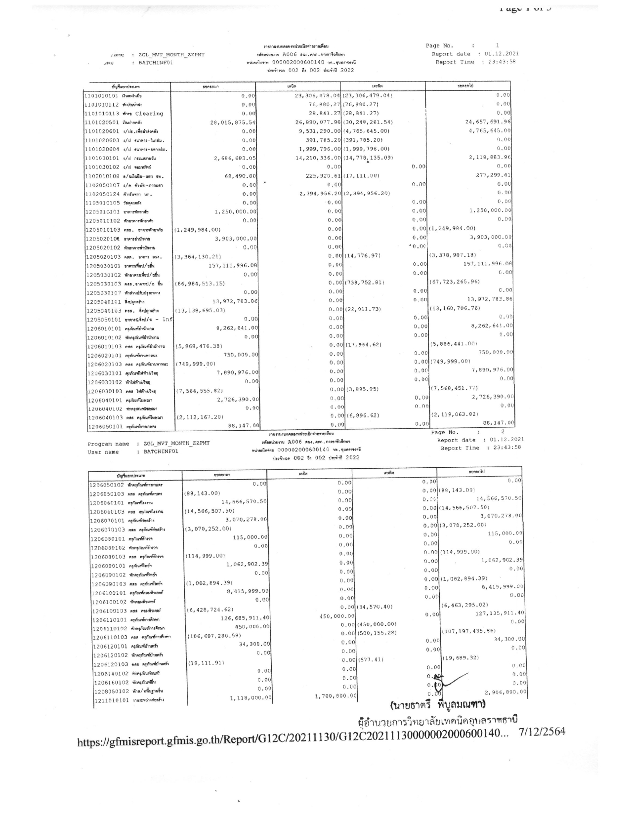 รายงานงบทดลองประจำเดือน พฤศจิกายน 2564