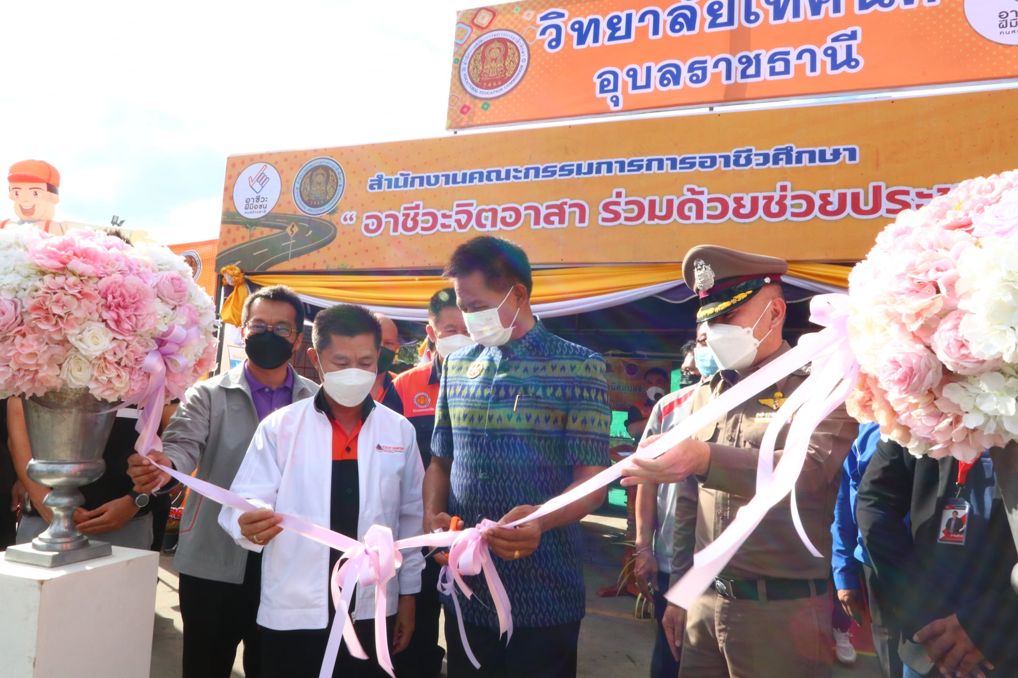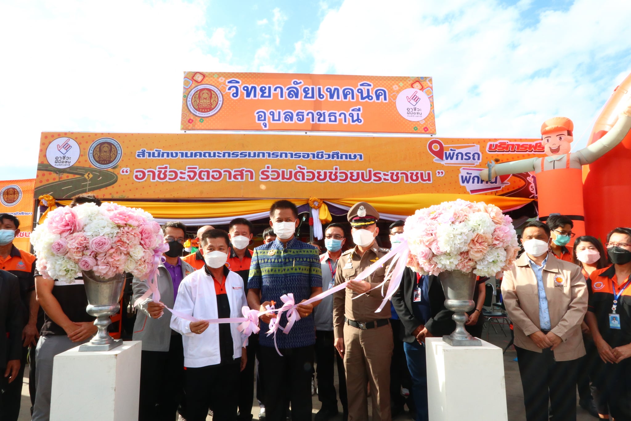วันที่ ๓๐ ธันวาคม ๒๕๖๔ เวลา ๑๕.๐๐ น. นายธาตรี พิบูลมณฑา ผู้อำนวยการวิทยาลัยเทคนิคอุบลราชธานี ได้กล่าวรายงานพิธีเปิดโครงการอาชีวะอาสา เทศกาลปีใหม่ พ.ศ. ๒๕๖๕ โดยได้รับเกียรติจาก นายศุภภิมิตร เปาริก รองผู้ว่าราชการจังหวัดอุบลราชธานี ประธานในพิธีเปิด ทั้งนี้มีคณะผู้บริหาร ครู และบุคลารทางการศึกษา เข้าร่วมกิจกรรมอย่างพร้อมเพรียง ซึ่งเป็นไปตามนโนยายของสำนักงานคณะกรรมการการอาชีวศึกษา ให้สถานศึกษาในสังกัดดำเนินการจัดตั้ง ศูนย์อาชีวะอาสา (Fix it Center) ให้บริการตรวจซ่อมยานพาหนะ ให้มีความพร้อมต่อการใช้งานเทศกาลปีใหม่ ๒๕๖๕ ระหว่างวันที่ ๒๙ ธันวาคม ๒๕๖๔ ถึง วันที่ ๔ มกราคม ๒๕๖๕ ช่วงเวลา ๐๘.๓๐ น. ถึงเวลา ๑๖.๓๐ น. ณ ปั๊มน้ำมัน บริษัทอุบล- ตระการ ปิโตรเลียม จำกัด จังหวัดอุบลราชธานี