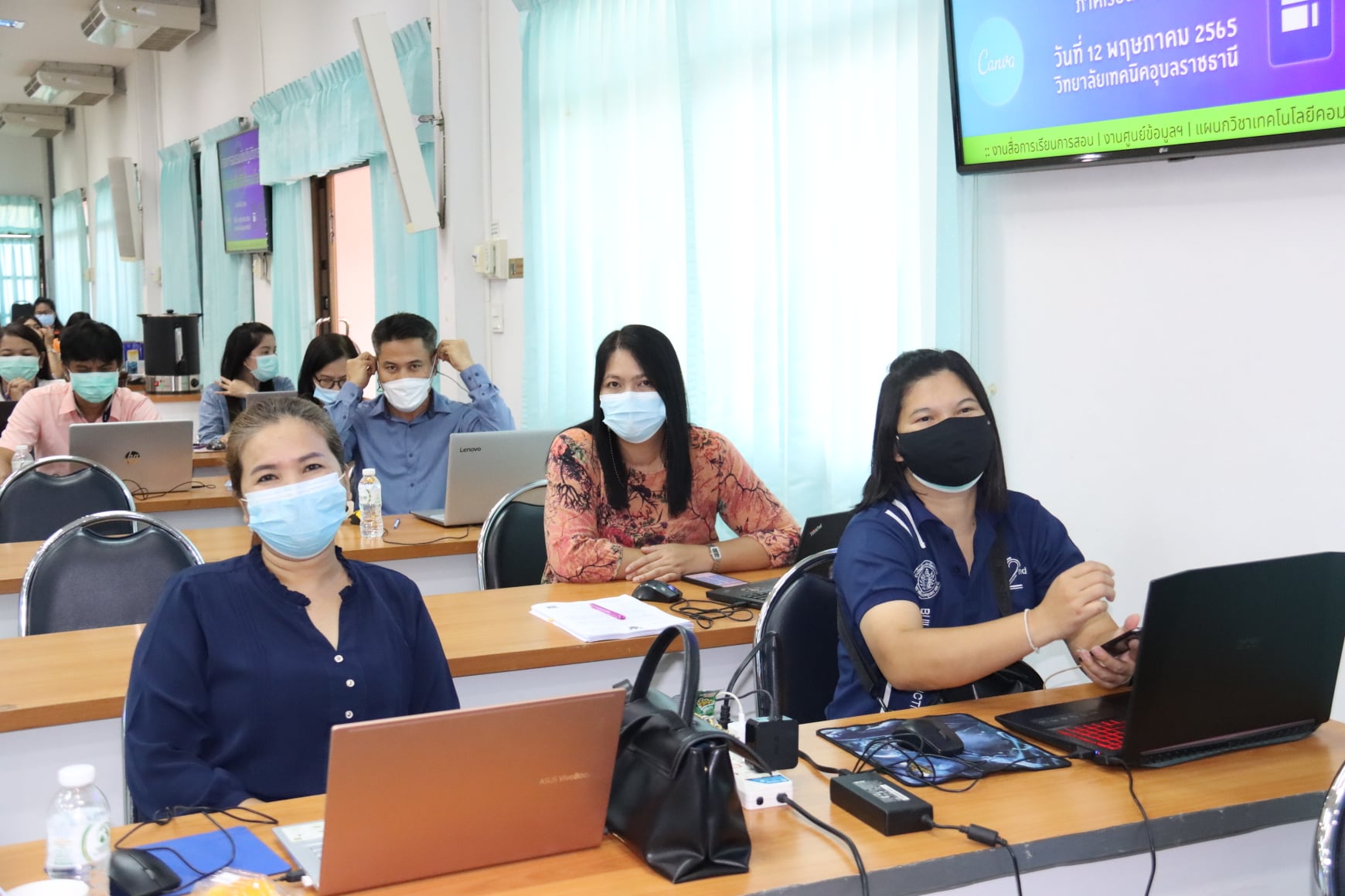 วันที่ ๑๒ พฤษภาคม ๒๕๖๕ นายธาตรี พิบูลมณฑาผู้อำนวยการวิทยาลัยเทคนิคอุบลราชธานี ให้เกียรติเป็นประธานในพิธีเปิดโครงการอบรมเชิงปฏิบัติการการสร้างสื่อดิจิทัลออนไลน์ ภาคเรียนที่ ๑/๒๕๖๕ ดำเนินการจัดอบรมโดยงานสื่อการเรียนการสอนและงานศูนย์ข้อมูลสารสนเทศ ได้อบรมให้ความรู้เกี่ยวกับการใช้งานโปรแกรม Canva Education Pro การสร้าง Google Sites และการจัดการ Content WordPress สำหรับ Admin ผู้ดูแลเว็บไซต์แผนกวิชา เว็บไซต์งานภายในวิทยาลัยฯ ณ ห้องประชุมบัวแสด วิทยาลัยเทคนิคอุบลราชธานี โดยมี นางราตรี สะดีวงษ์ รองผู้อำนวยการฝ่ายแผนงานและความร่วมมือคณะครู บุคลากรที่เกี่ยว เข้าร่วมโครงการอบรมดังกล่าวกันอย่างพร้อมเพรียง ทั้งนี้เพื่อให้นำความรู้ที่ได้ไปใช้ในการจัดการเรียนการสอนต่อไป
