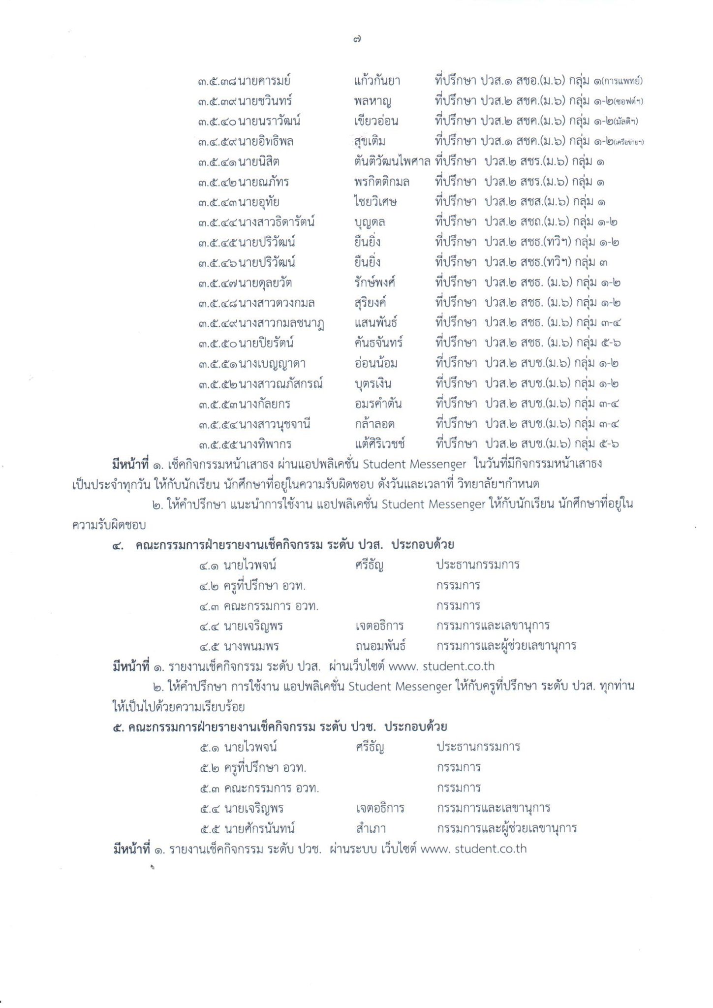 เรื่องแต่งตั้งครูที่ปรึกษาเช็คกิจกรรมหน้าเสาธงผ่านระบบออนไลน์